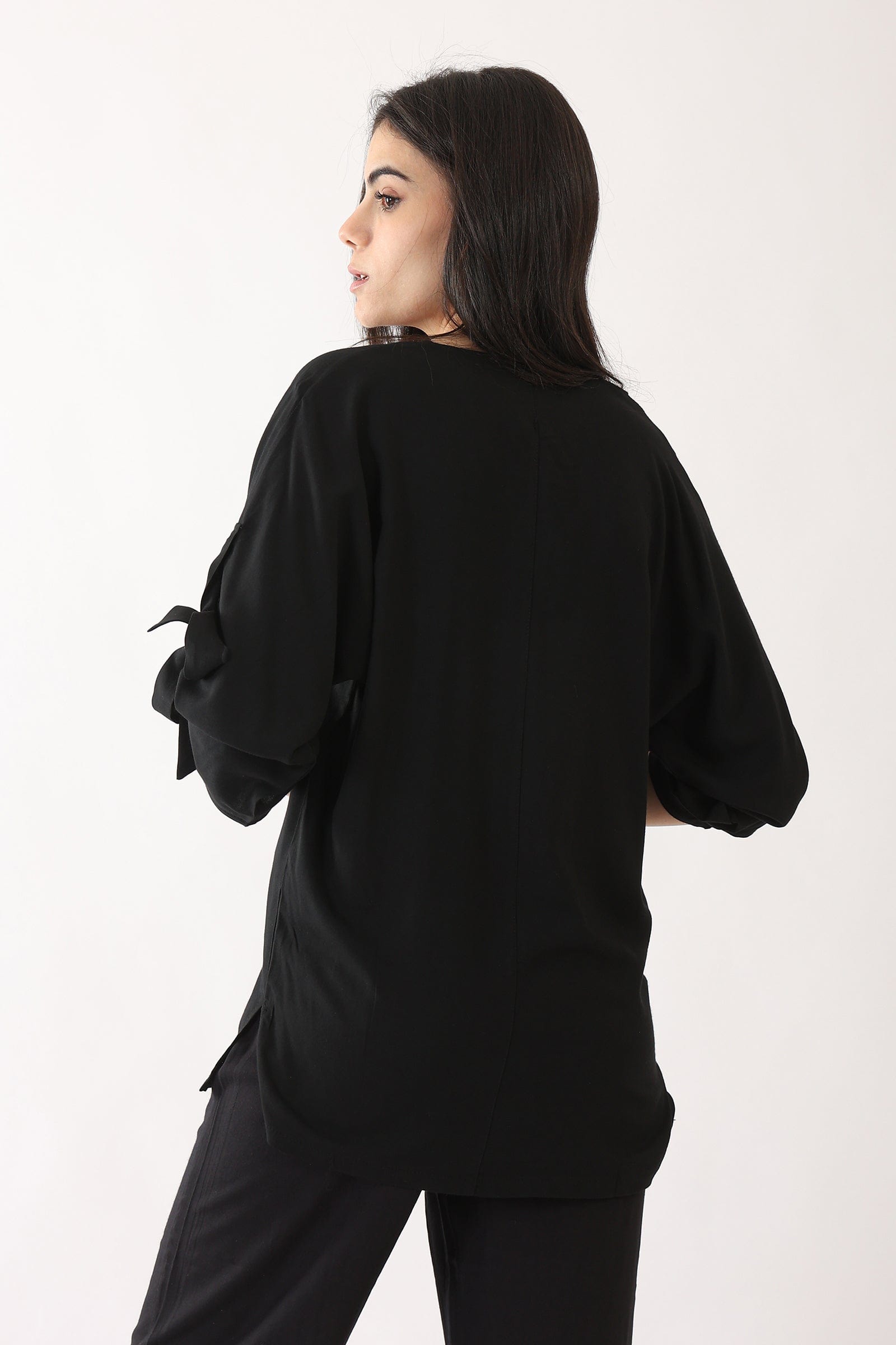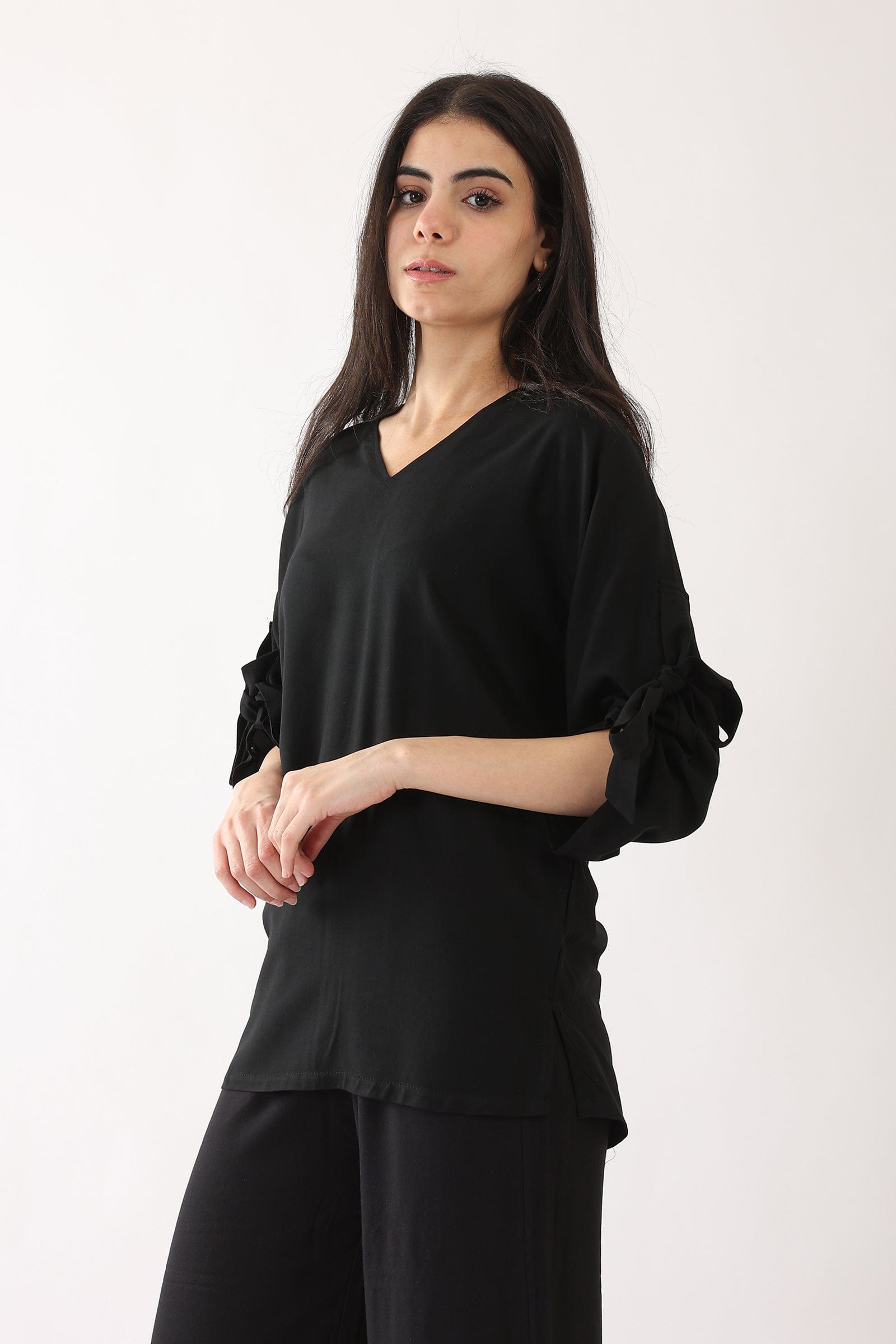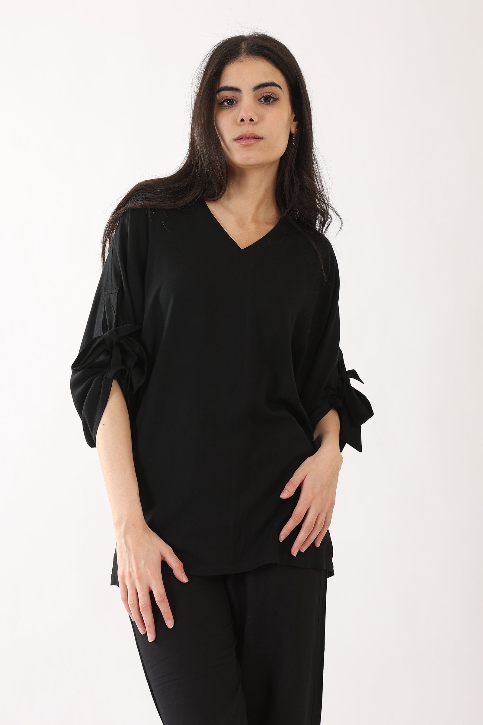 بلوزة سادة بأكمام طويلة بربطة عنق