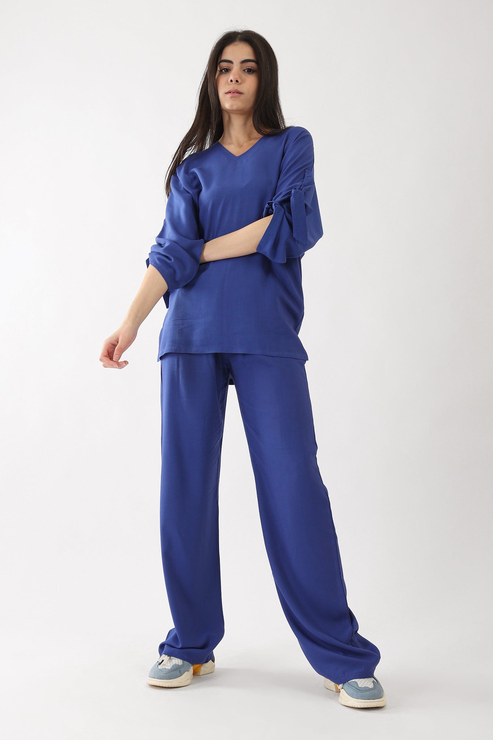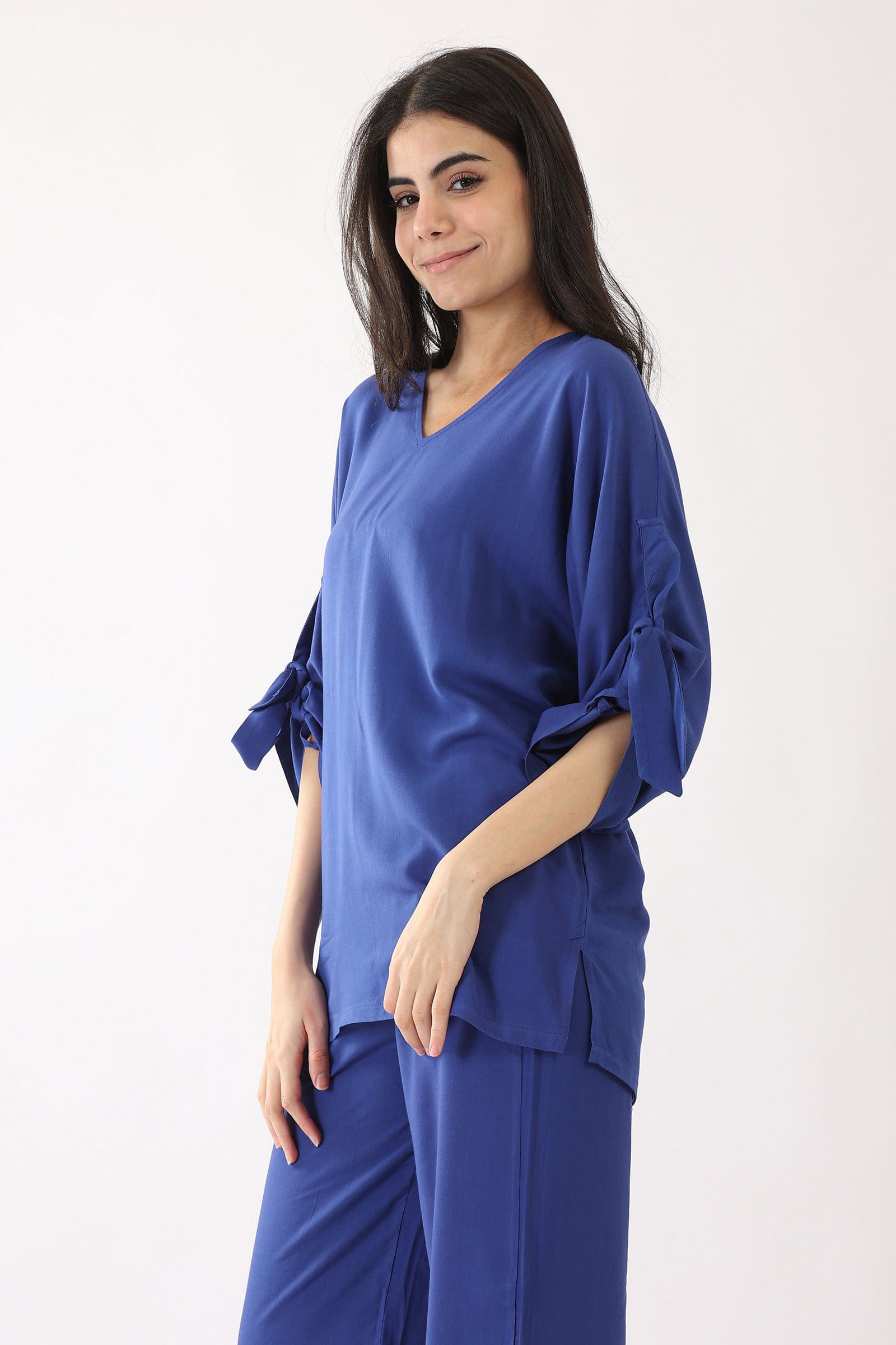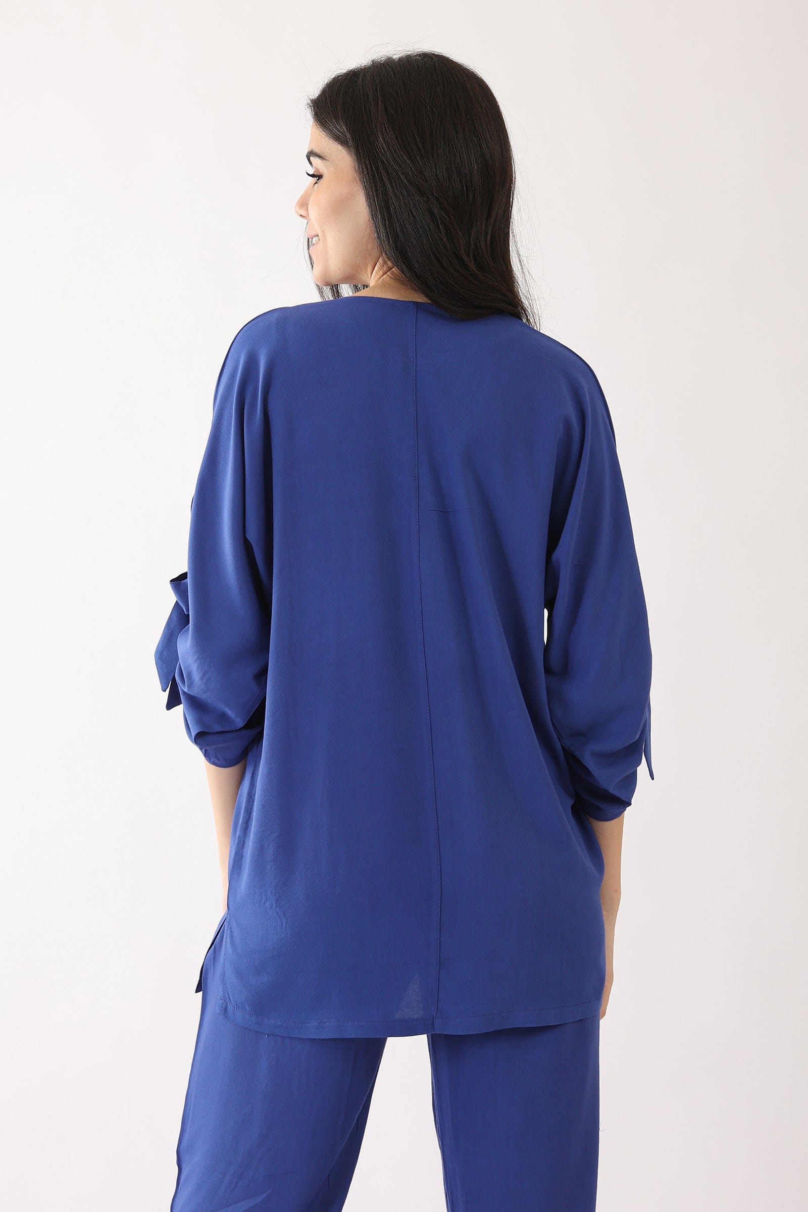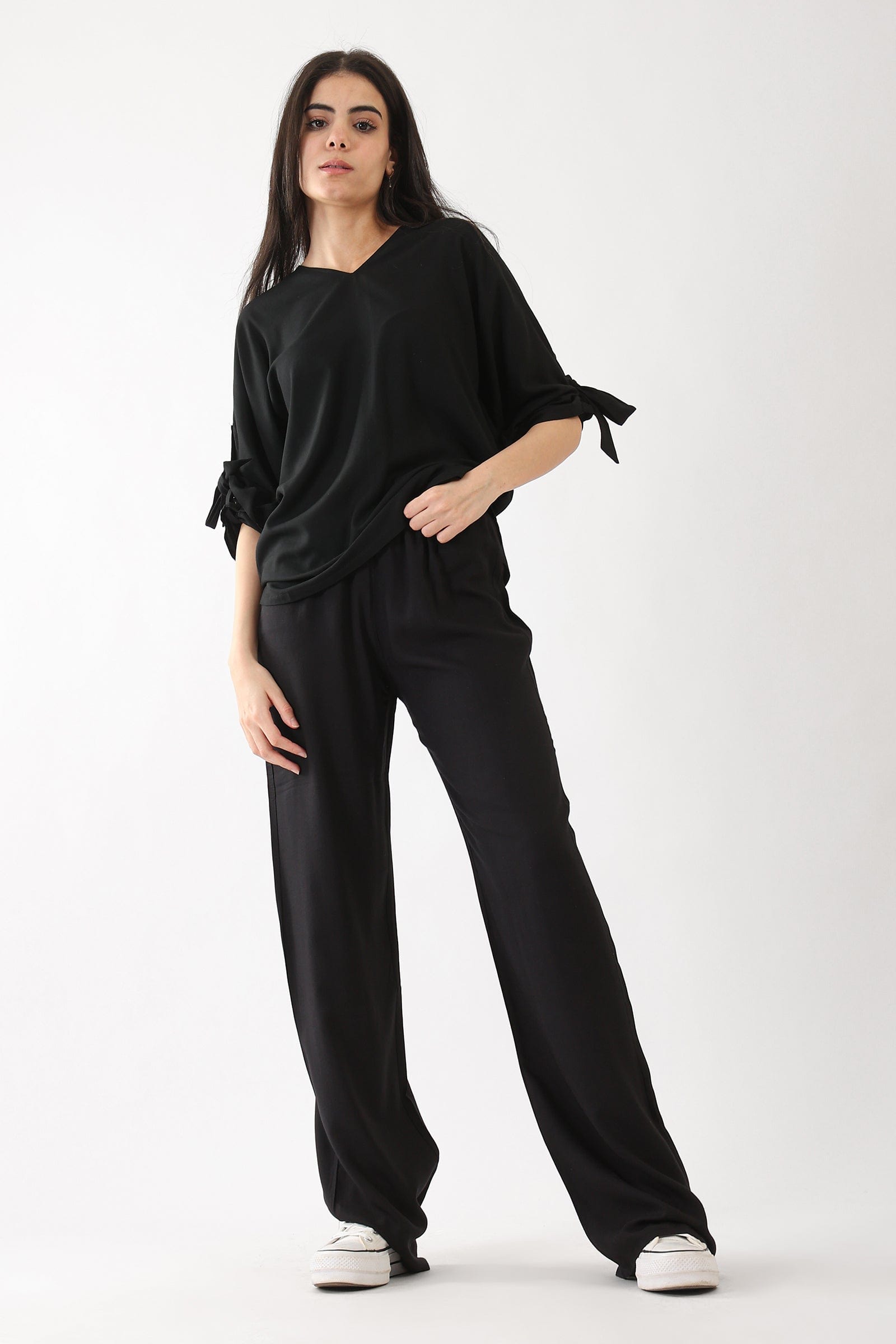 بلوزة سادة بأكمام طويلة بربطة عنق