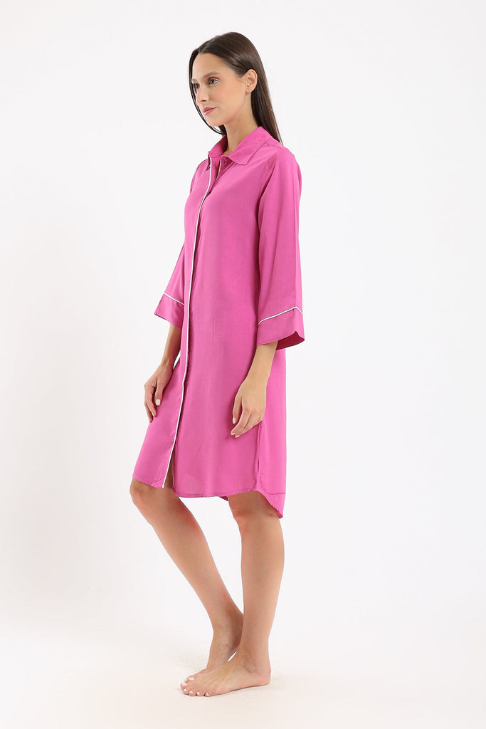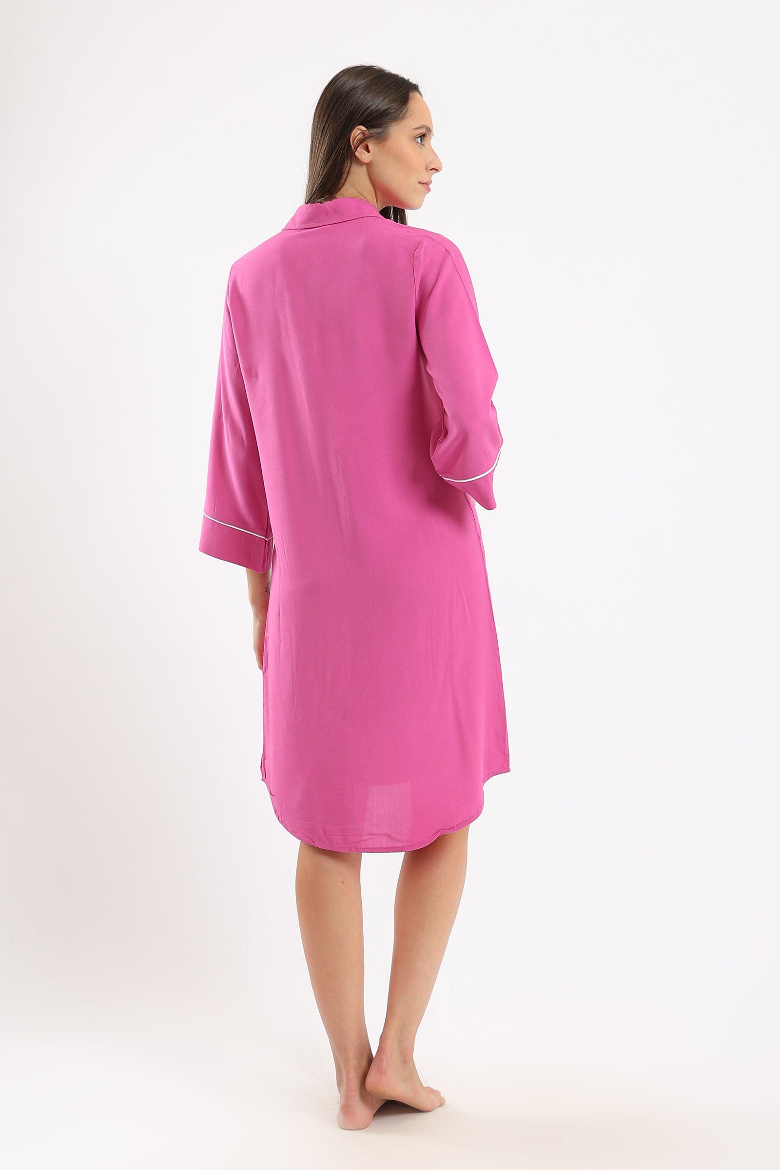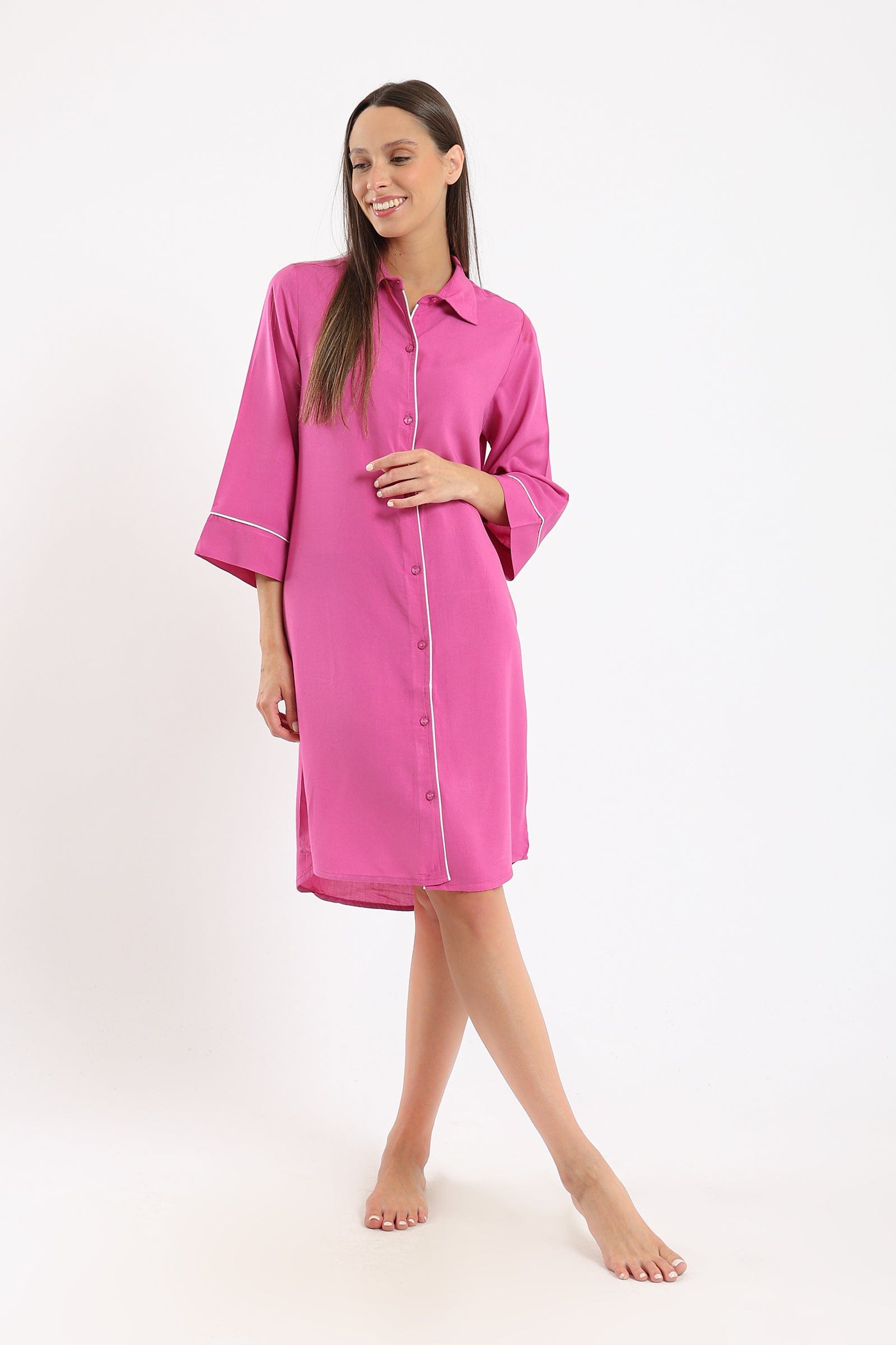 قميص نوم قصير بأكمام طويلة بأزرار من الأمام