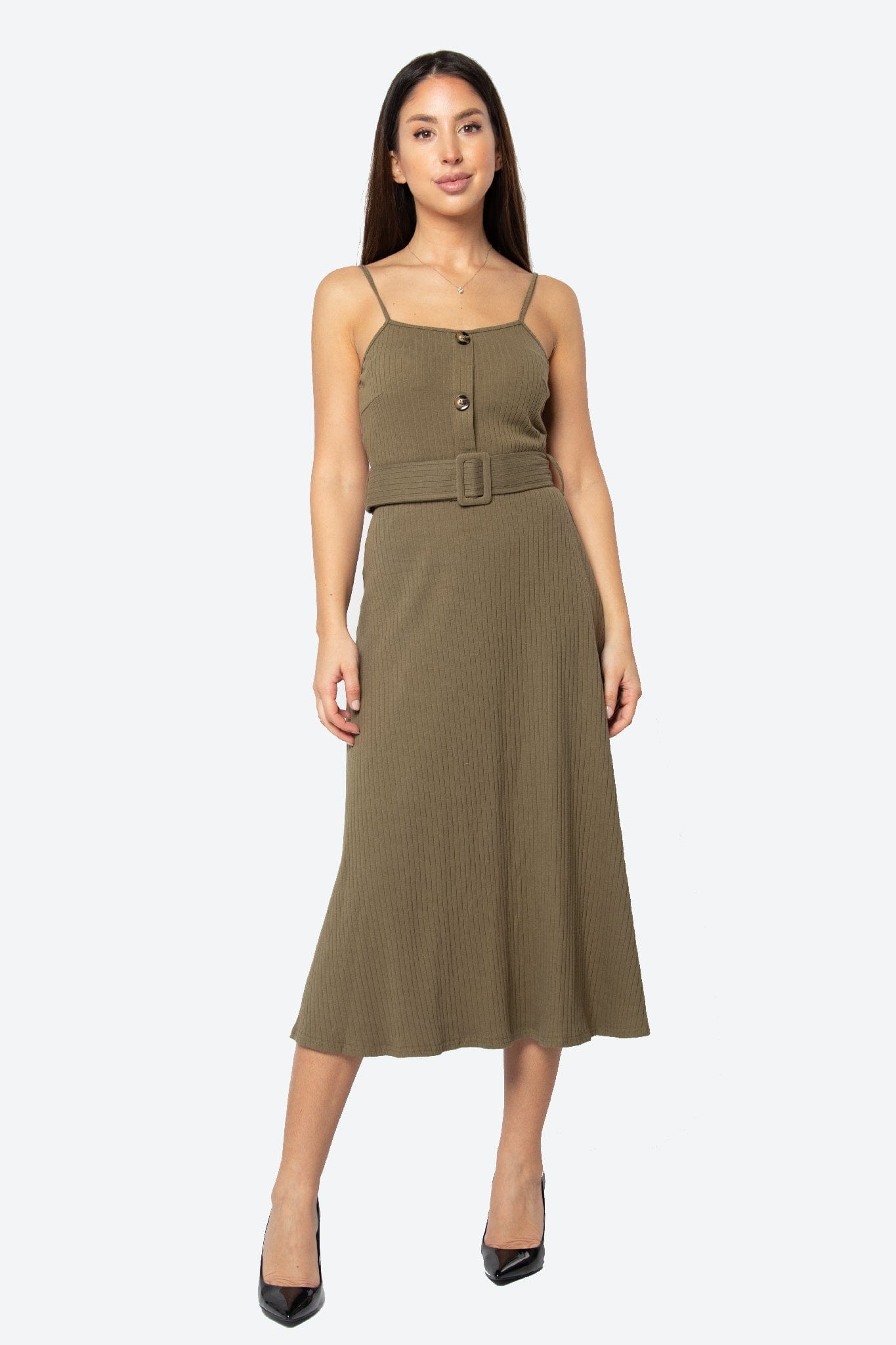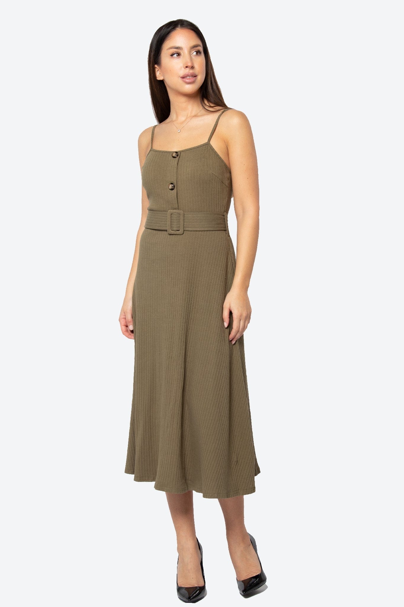 إذا كنتِ تبحثين عن فستان عملي وأنيق للخروجات اليومية، هذا الفستان رائع. قصته A مريحة وقصة عادية تجلس بشكل أنثوي على الجسم، وطوله ميدي يمنحك توازنًا بين الراحة والأناقة. التصميم سادة باللون كاكي مع حمالات رفيعة وبلا أكمام، مناسب لليالي الربيع والخريف بدرجة سمك متوسطة تناسب الطقس المعتدل. الغلق بزر يضيف لمسة تقليدية ويسهل اللبس، والحزام المرفق يحدد الخصر ويمنح الشكل مزيدًا من الحضور. لا يحتوي على جيوب، ما يجعله أنيقًا وبسيطًا. مثالي للخروجات الكاجوال، لقاءات القهوة أو نزهات نهاية الأسبوع، وستحبين كيف يمنحك مظهرًا أنثويًا مع لمسة يومية سهلة التنسيق. اعثري على مقاسك في فاشن السعودية وأضيفي هذه القطعة المتنوعة إلى خزانة ملابسك اليوم.
