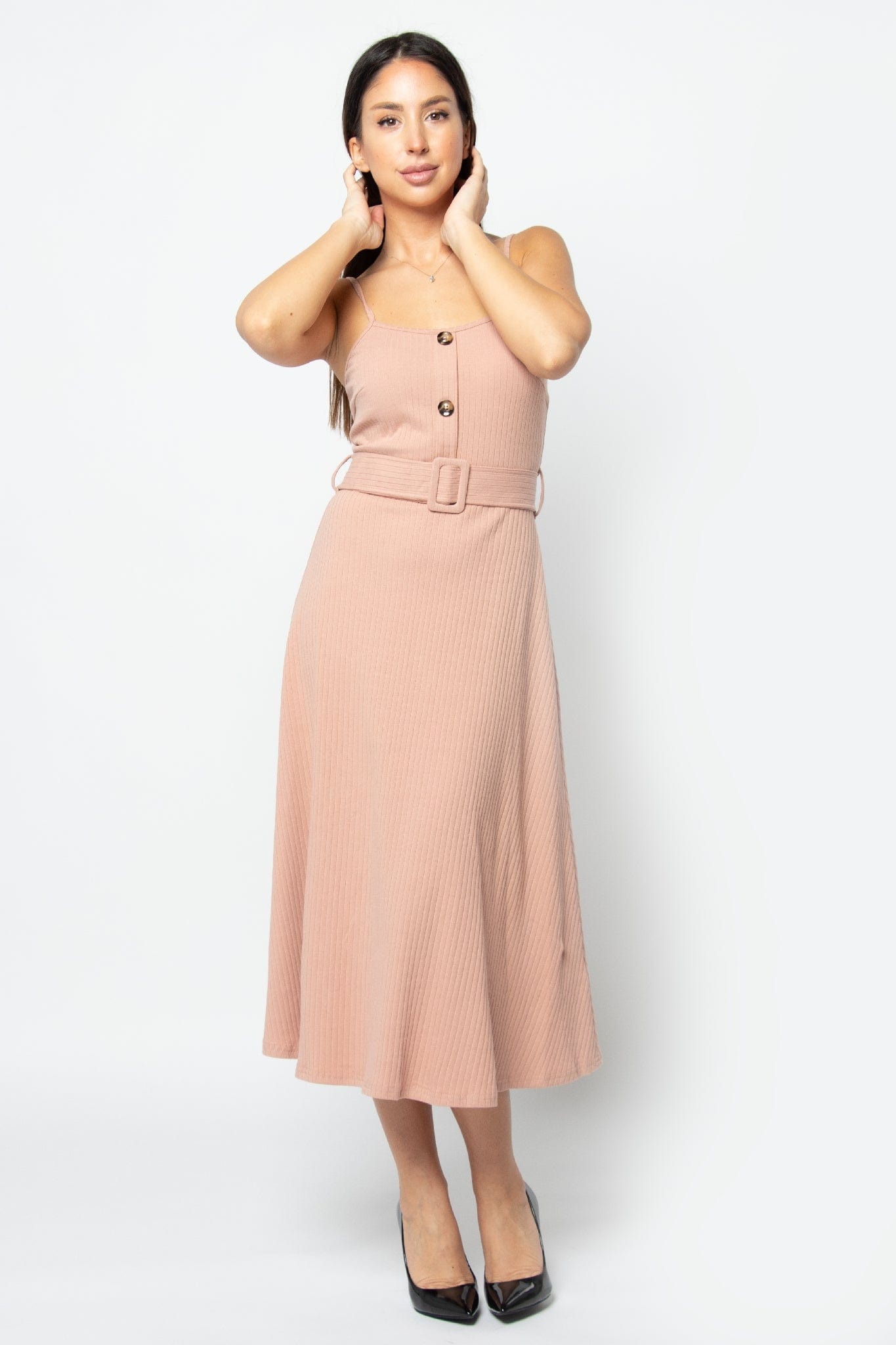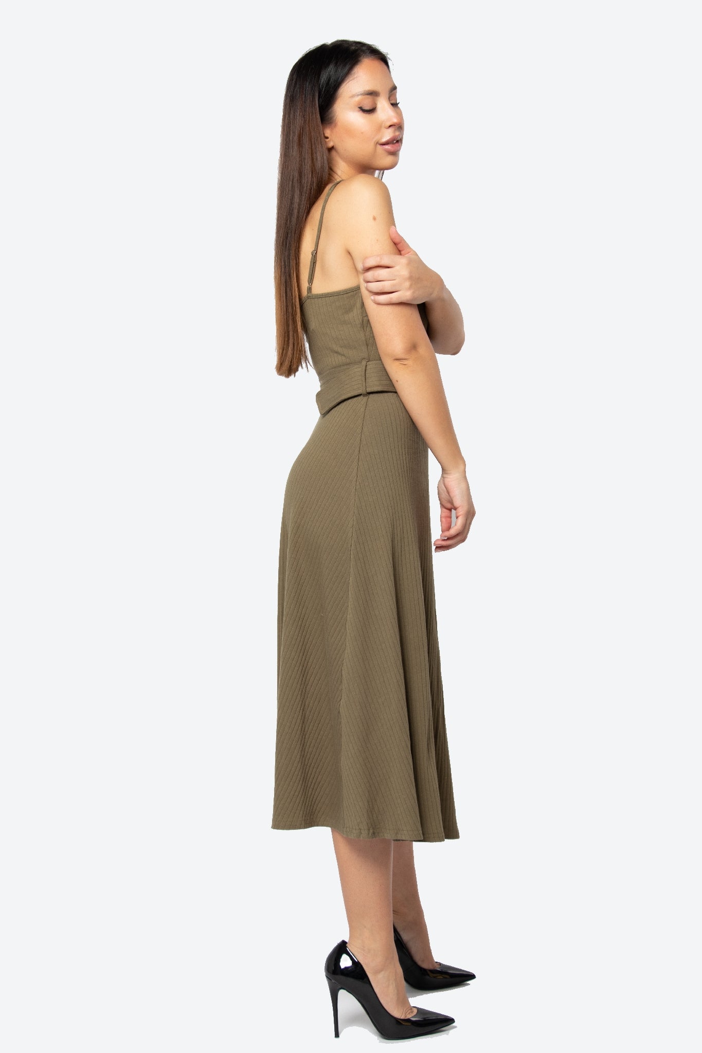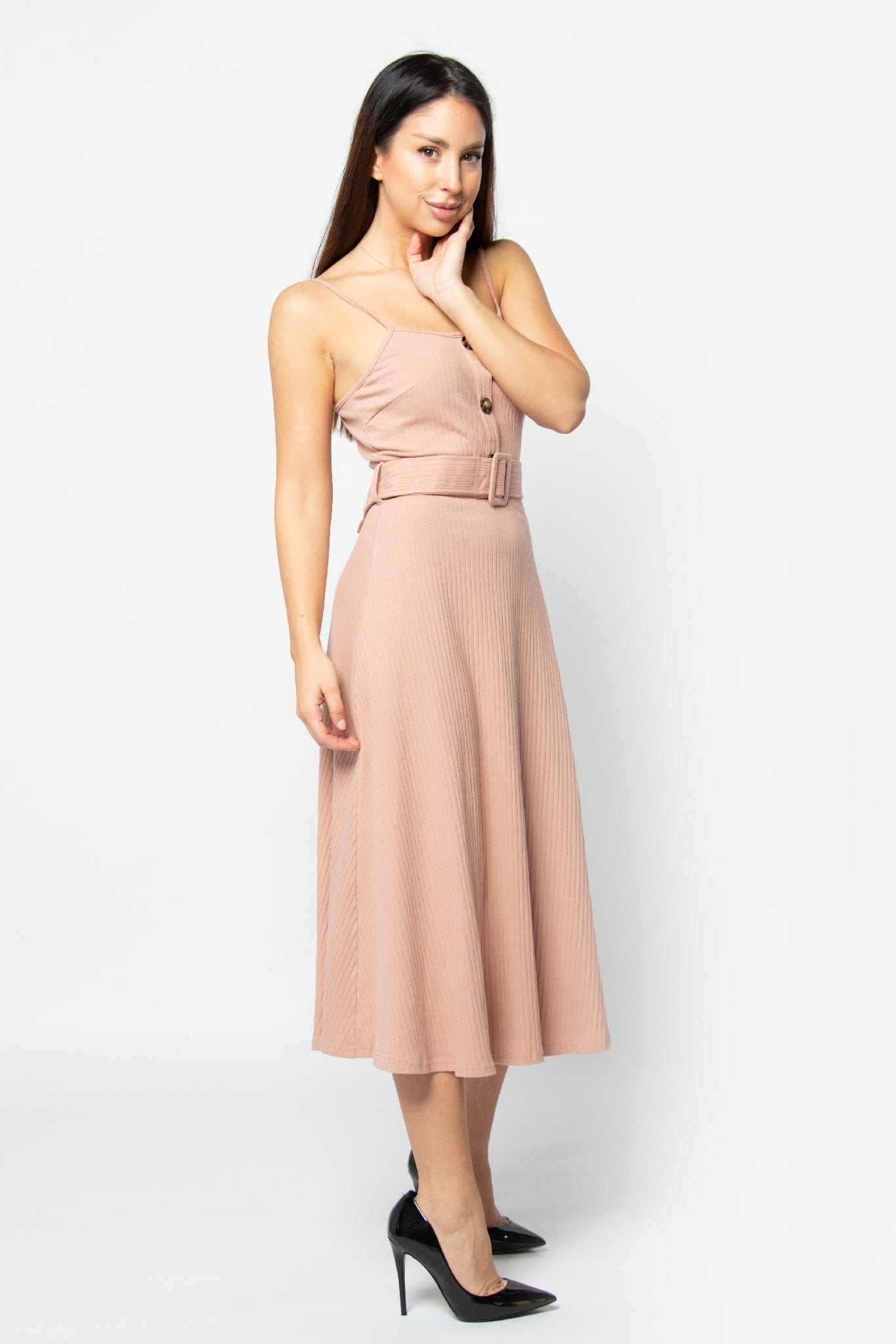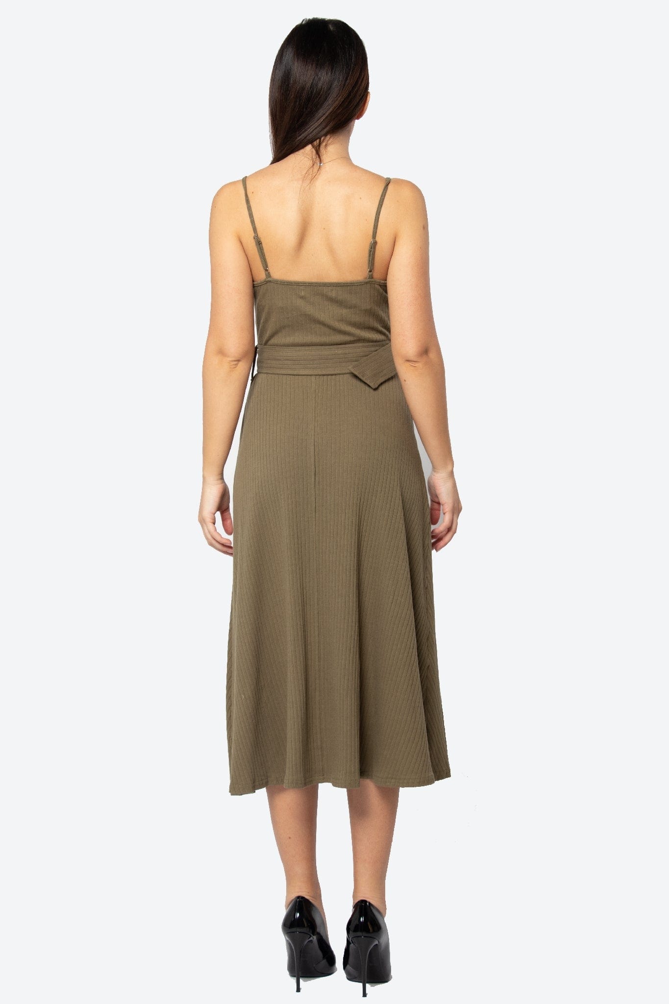 فستان ميدي بدون أكمام سادة برباط حمالات