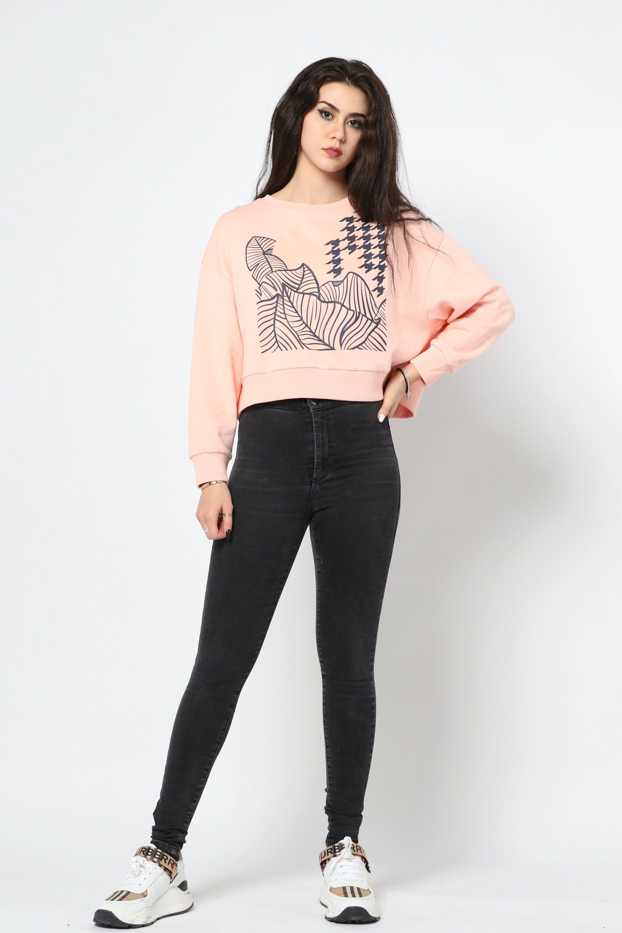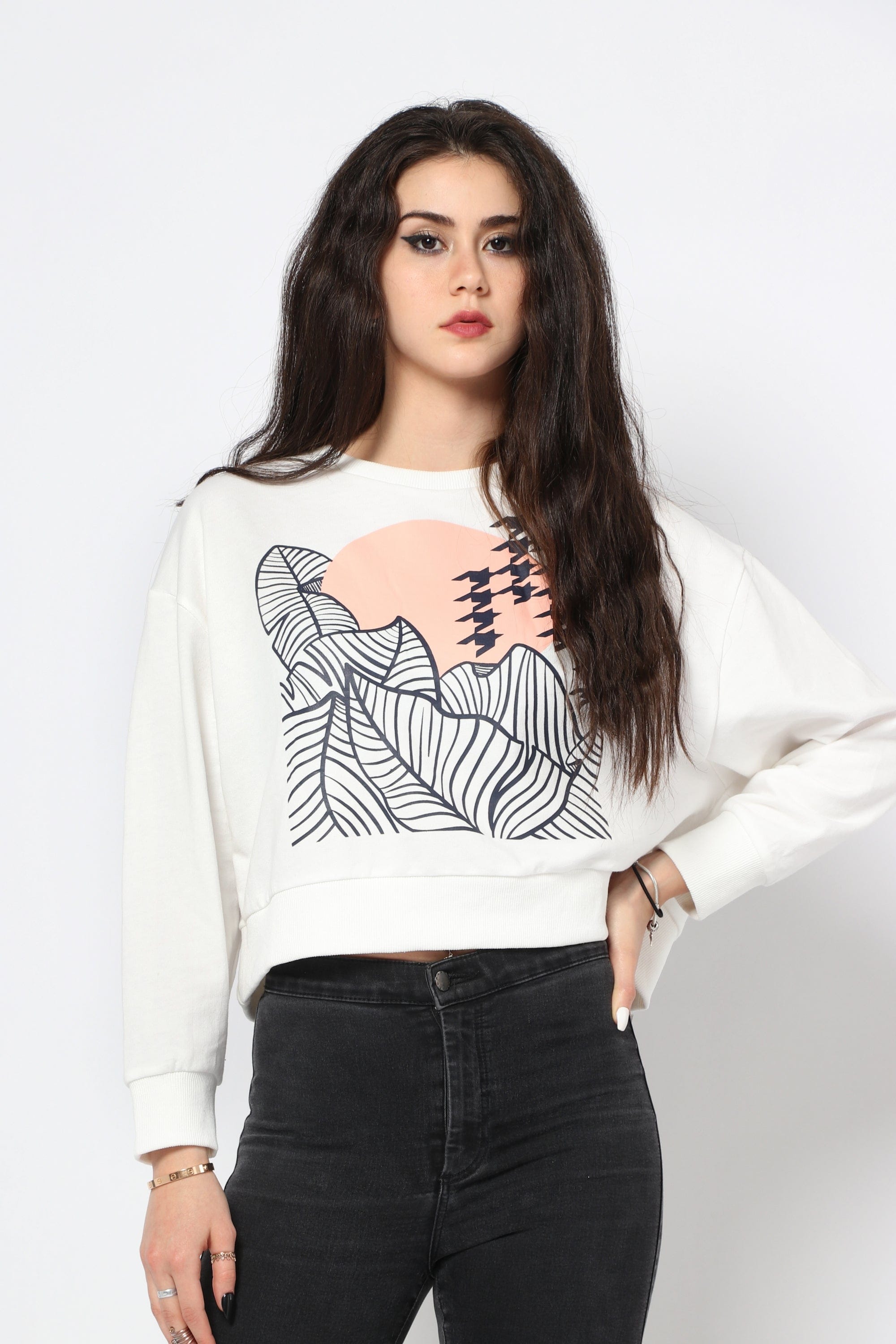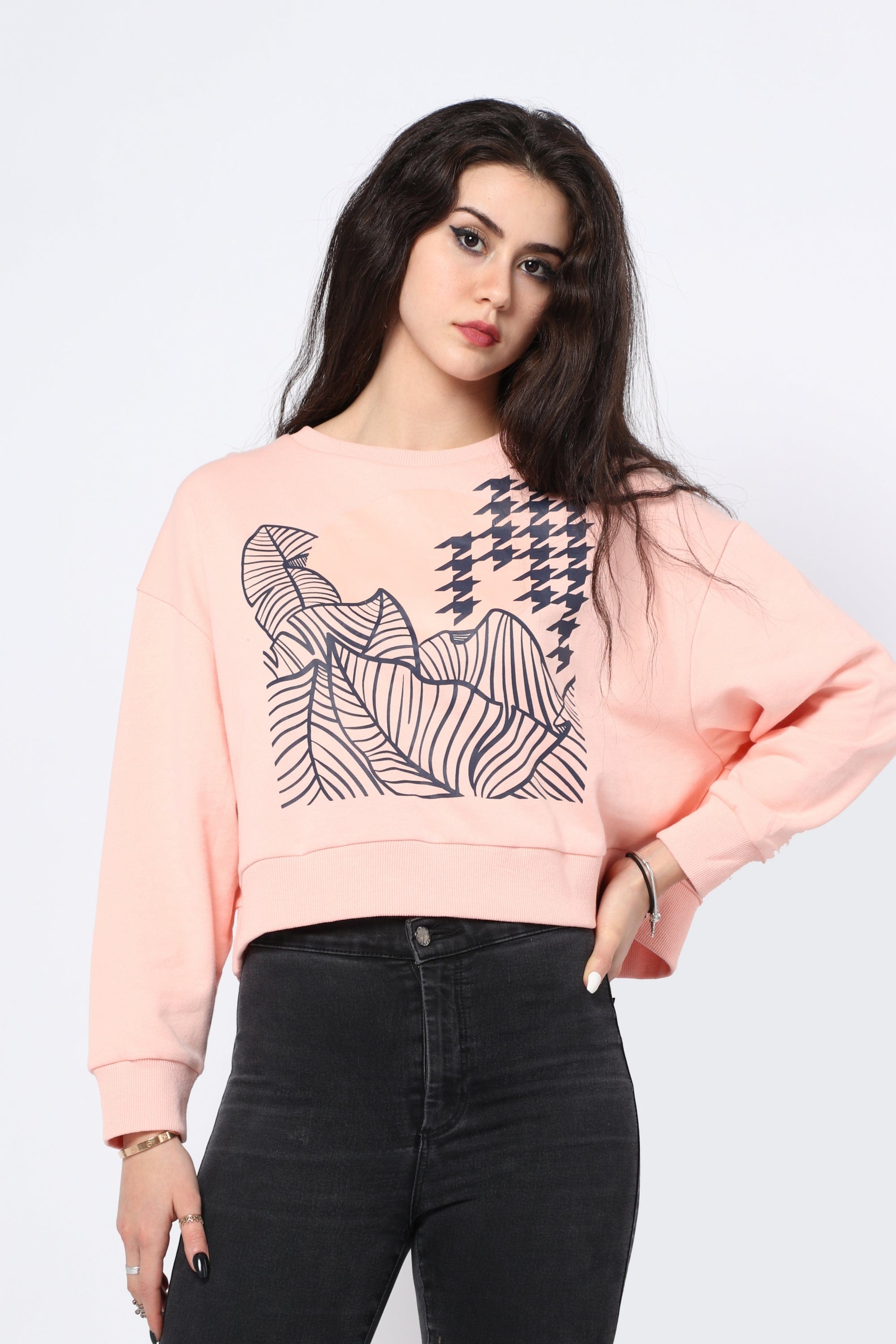 بلوزة قصيرة أوفر سايز مطبوعة بكم طويل نسائي