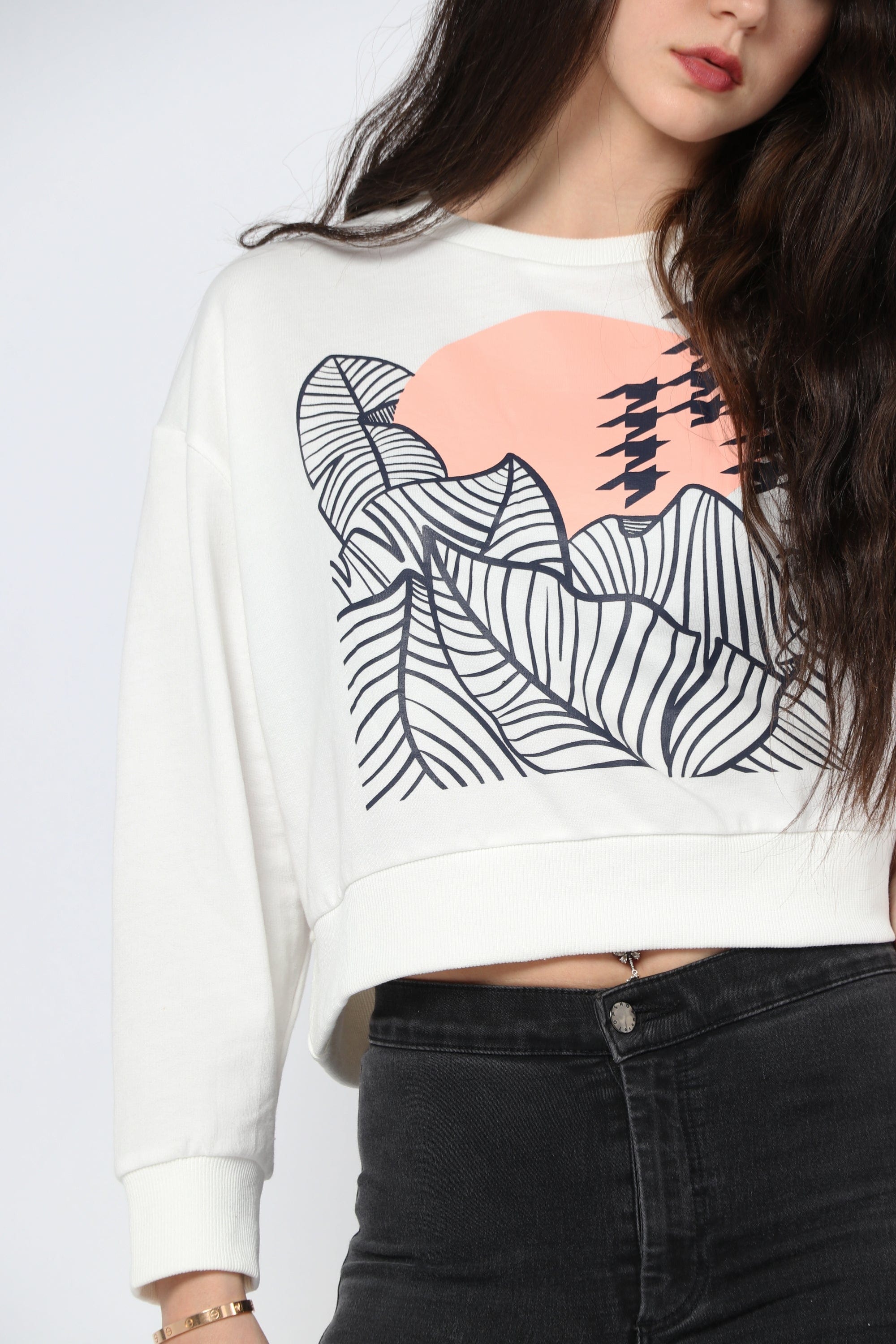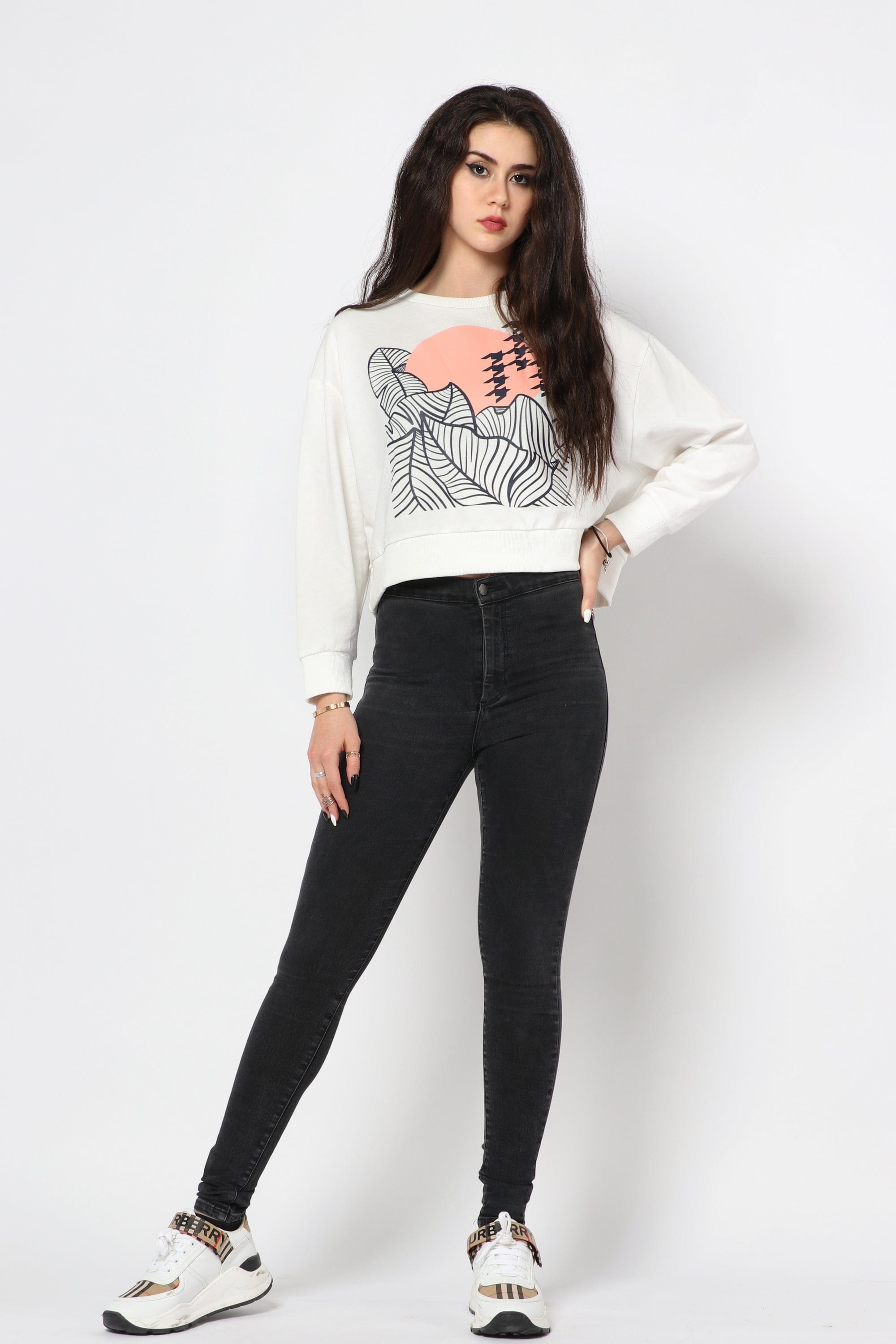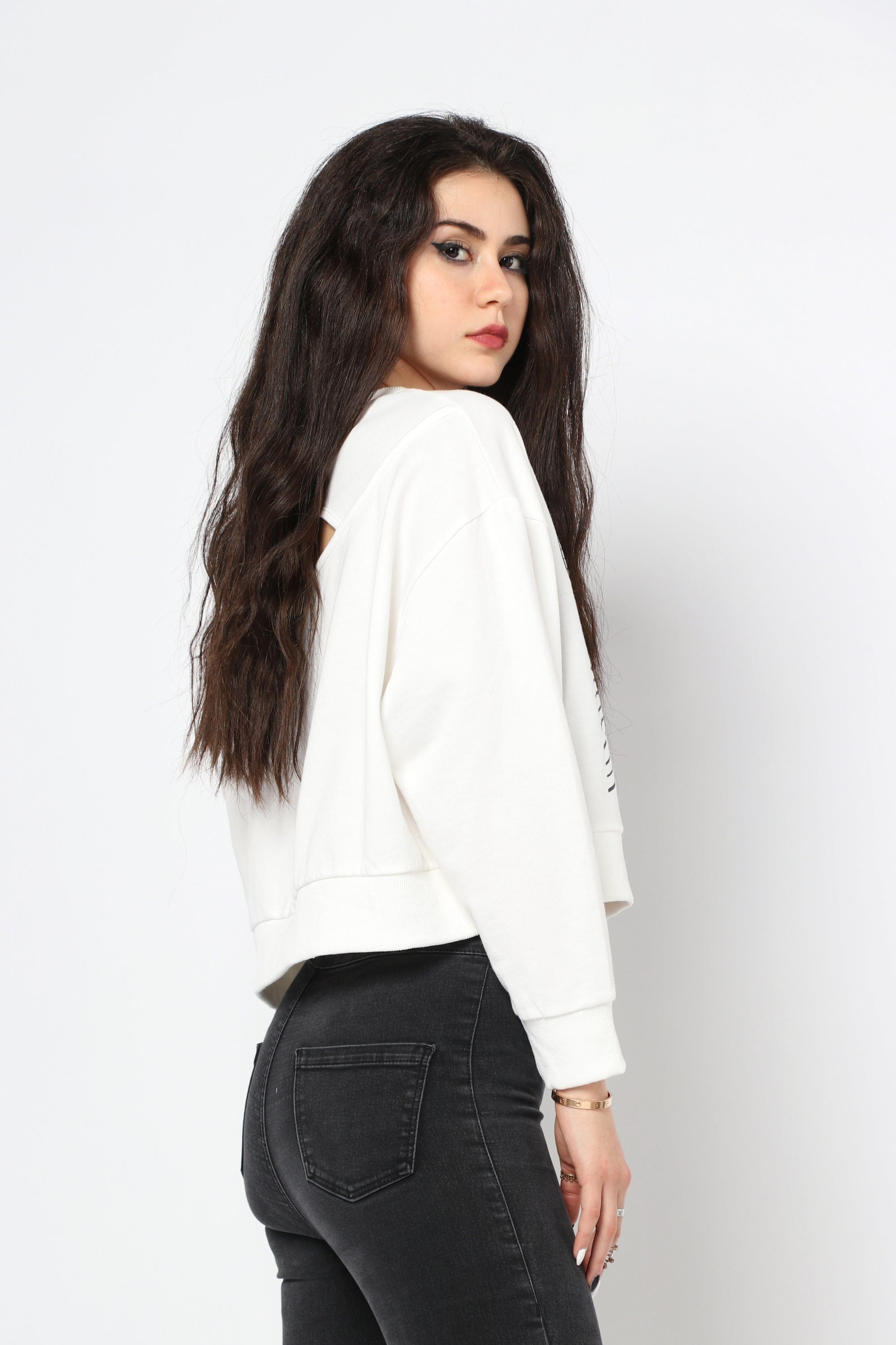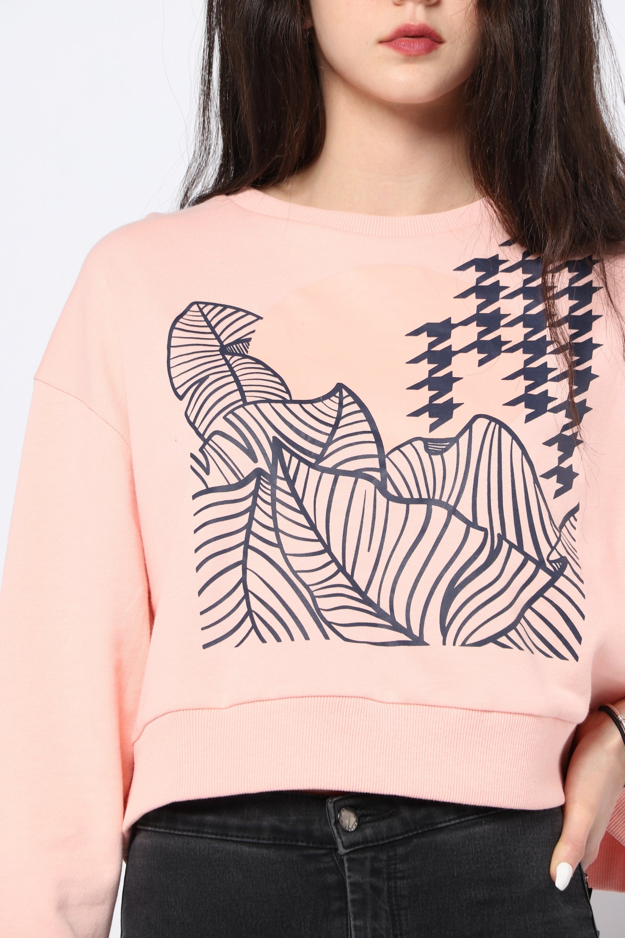 بلوزة قصيرة أوفر سايز مطبوعة بكم طويل نسائي