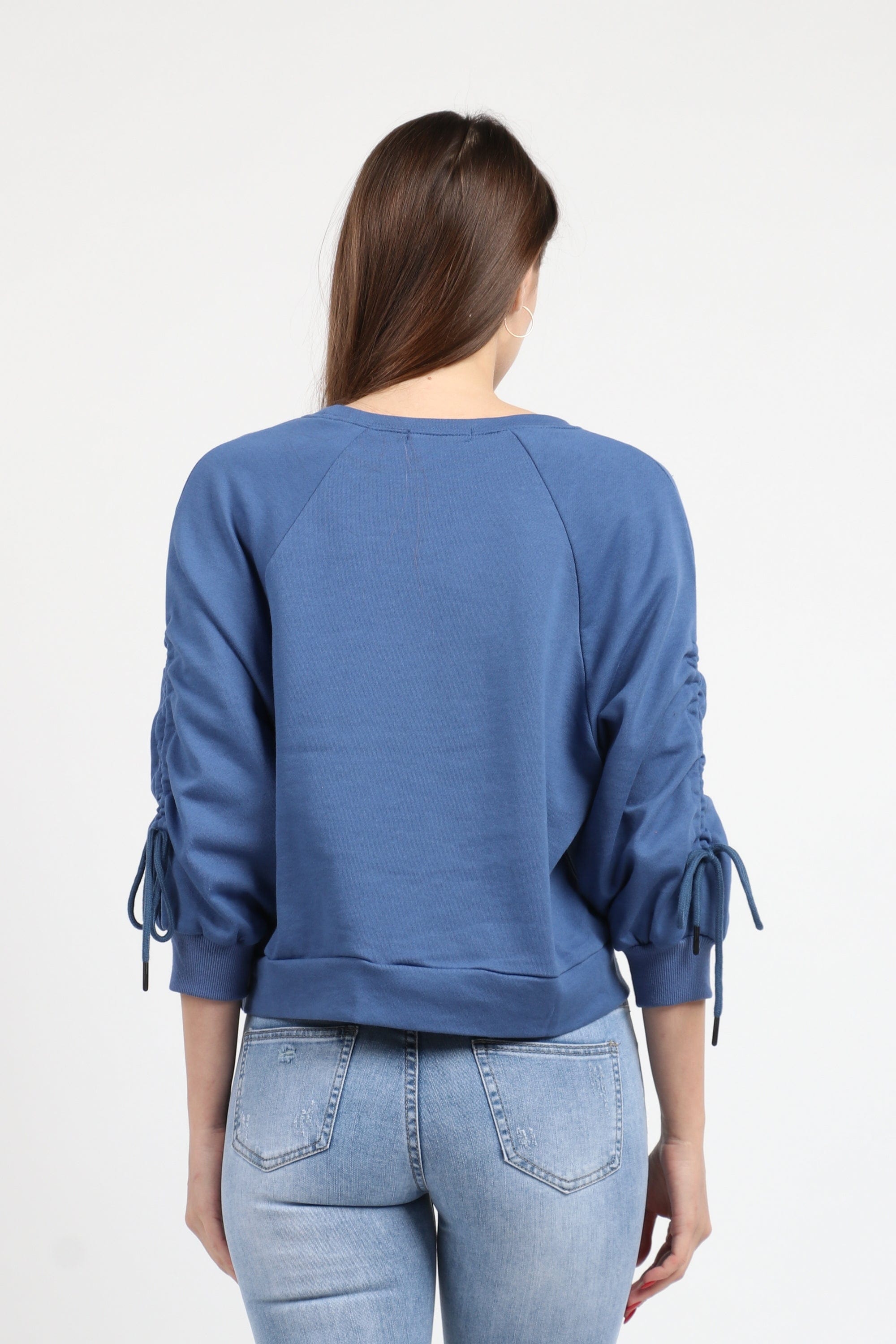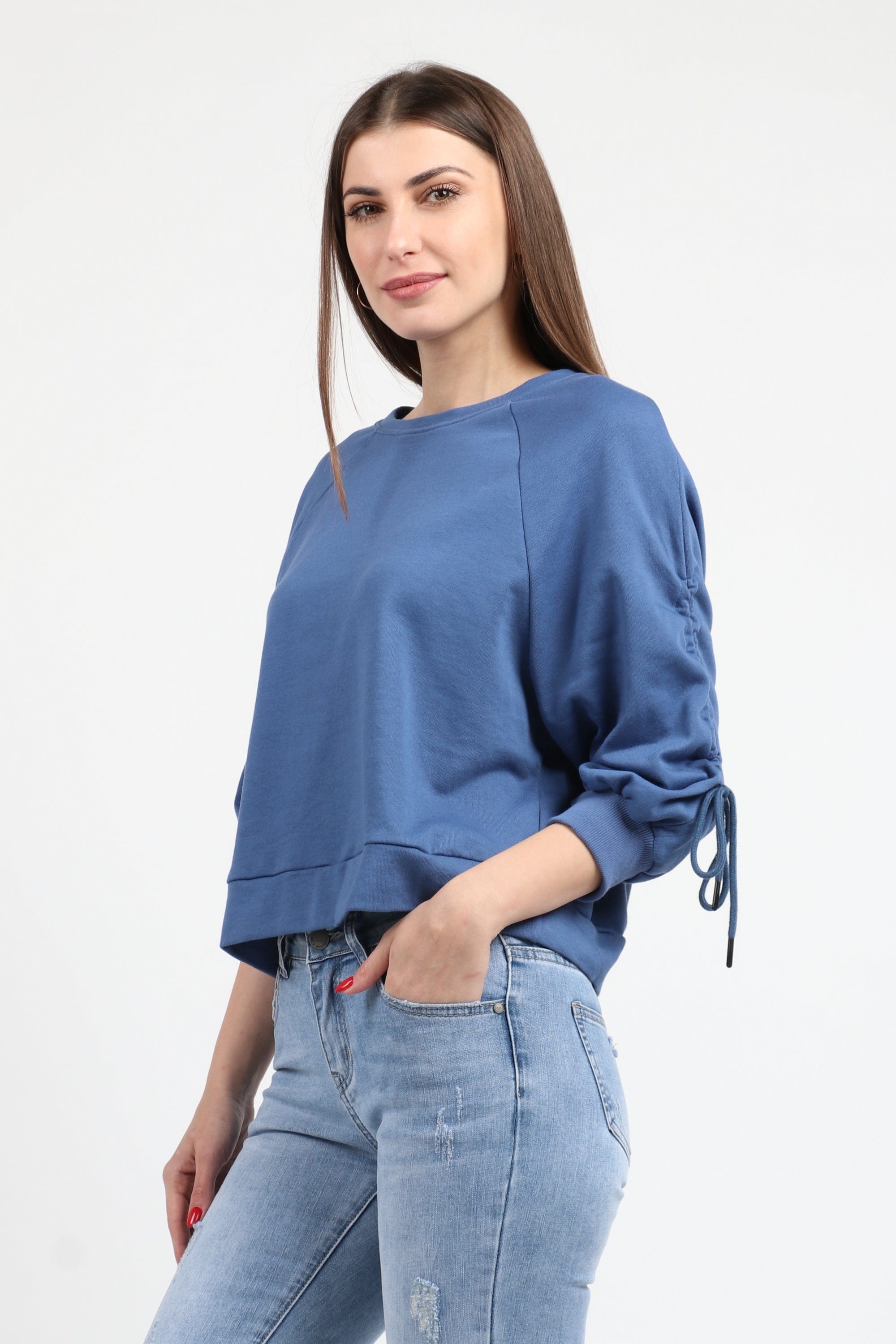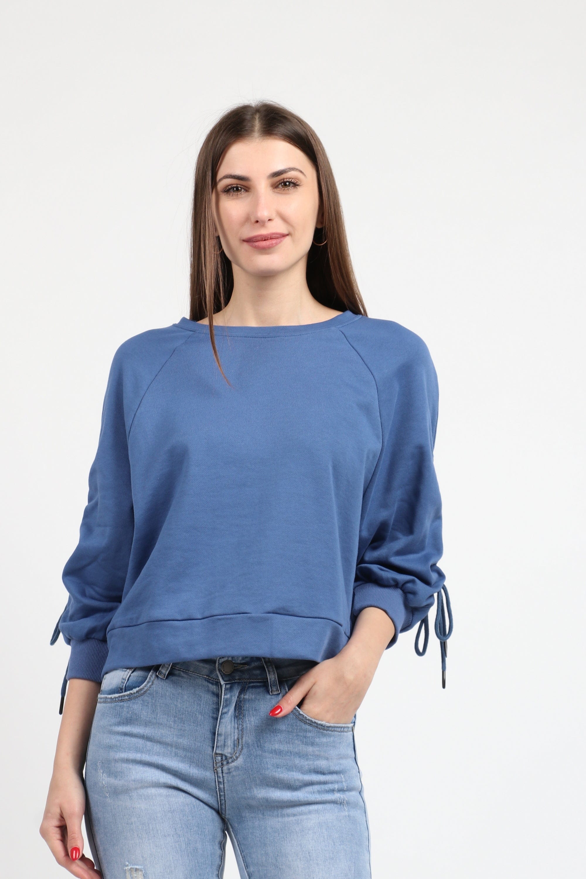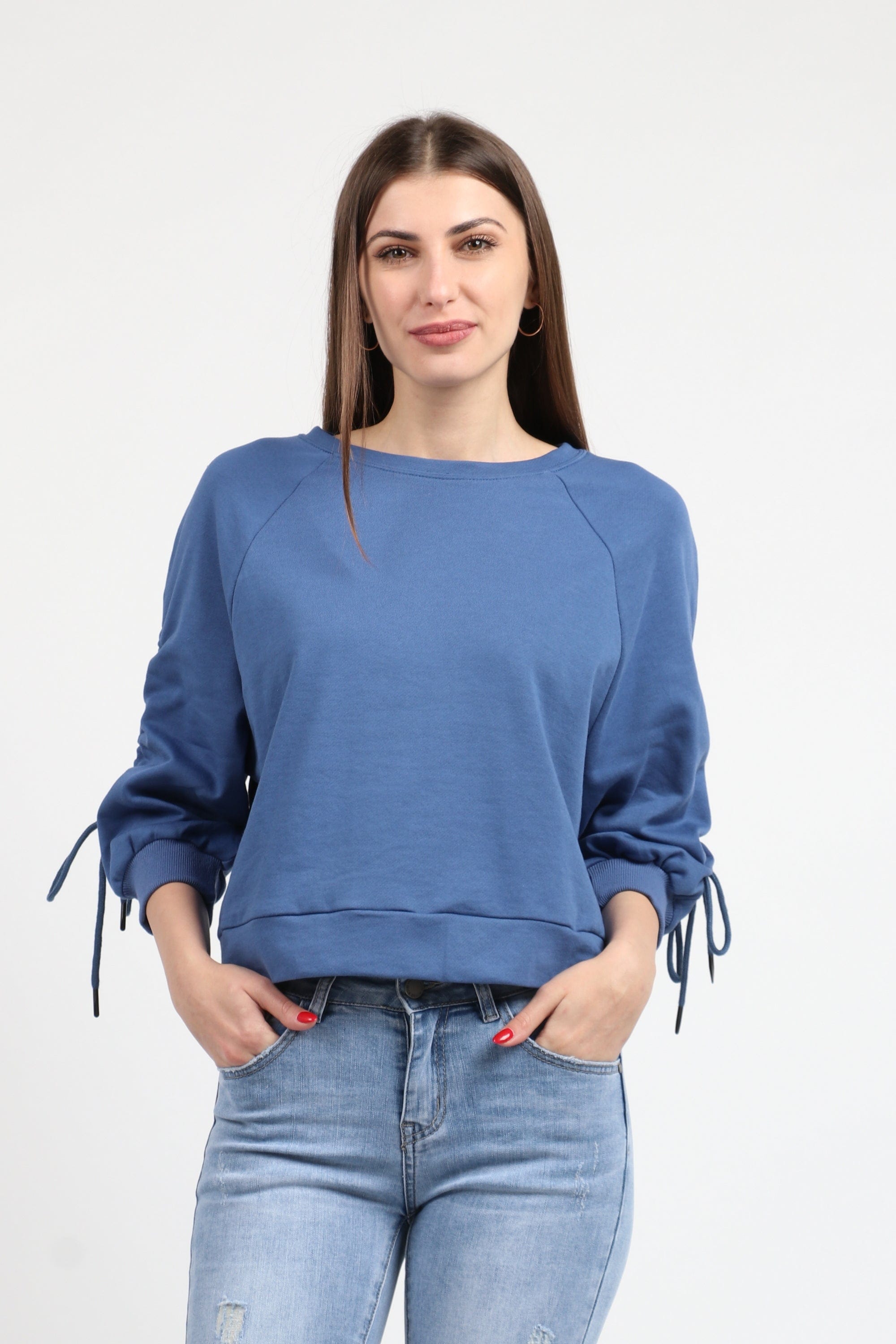 بلوزة قطنية بكم طويل بربطات من الاكمام نسائي