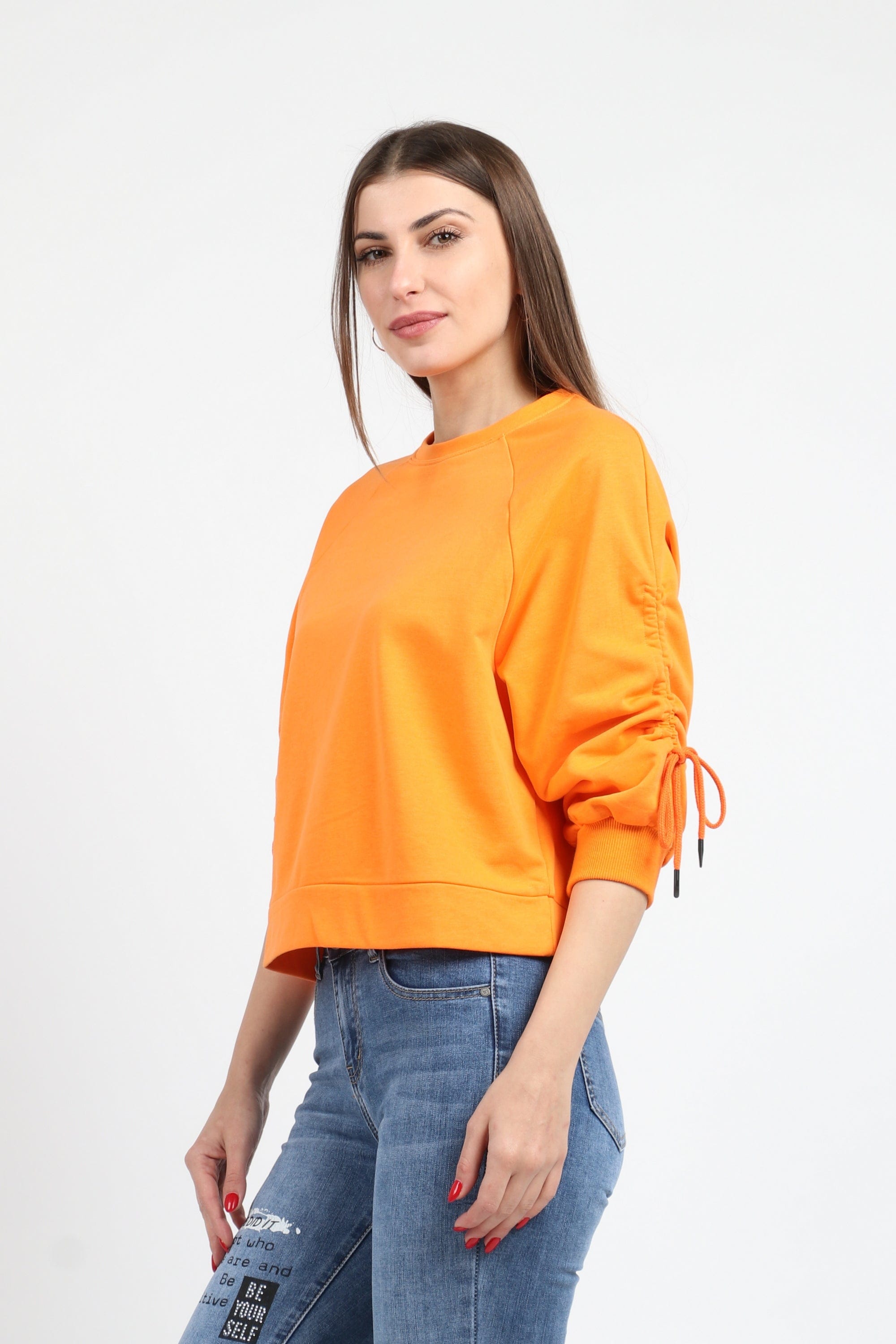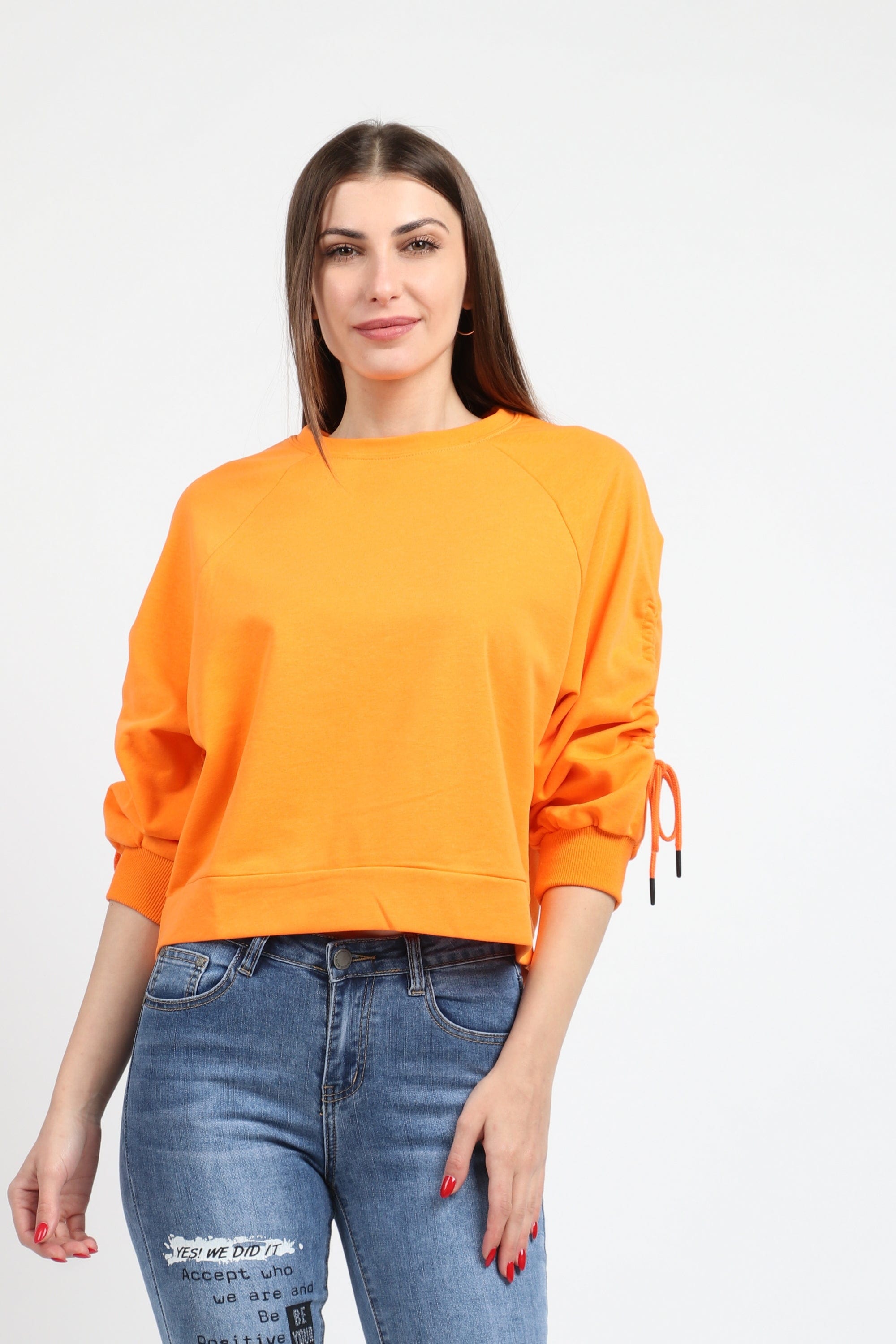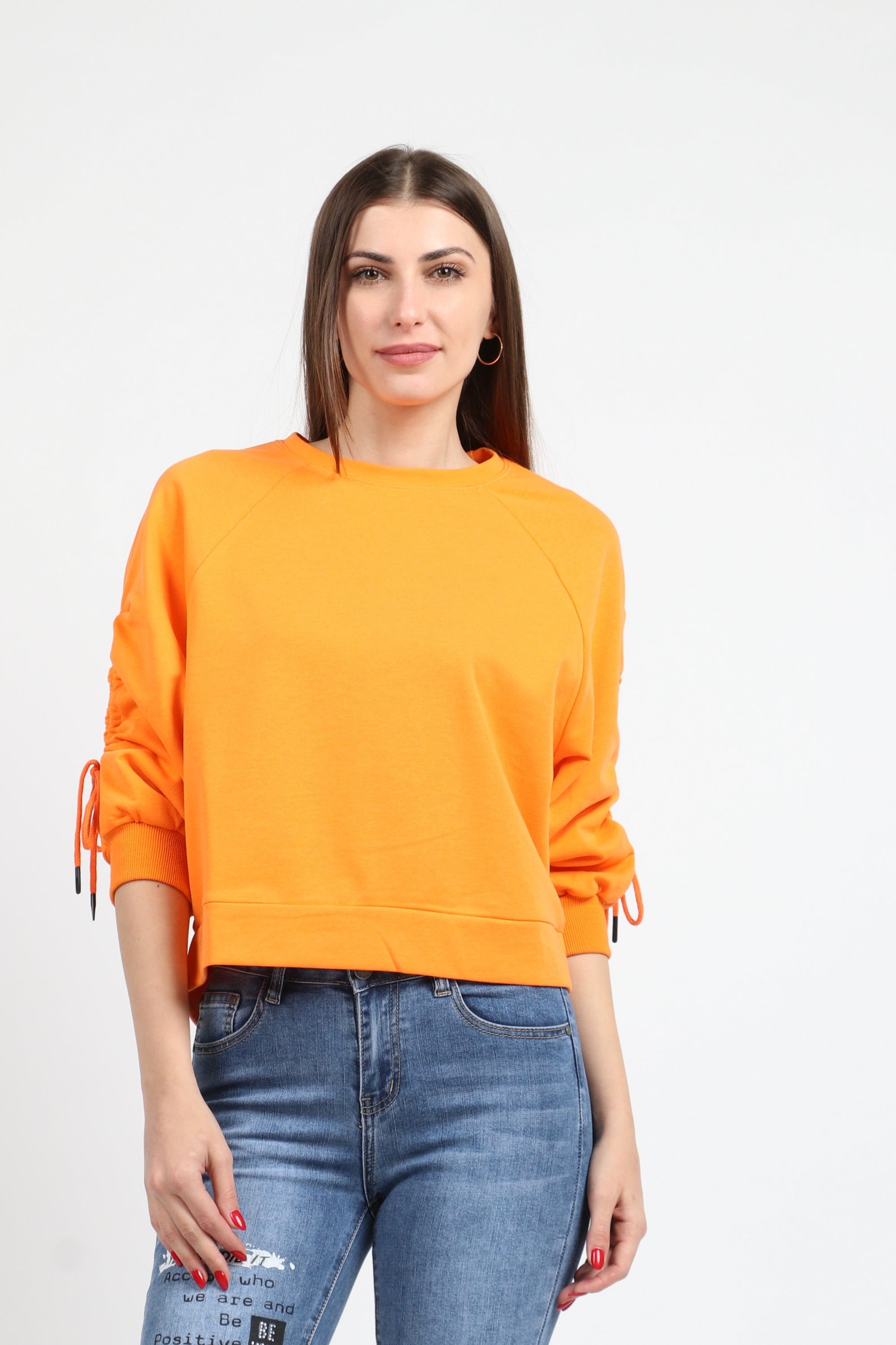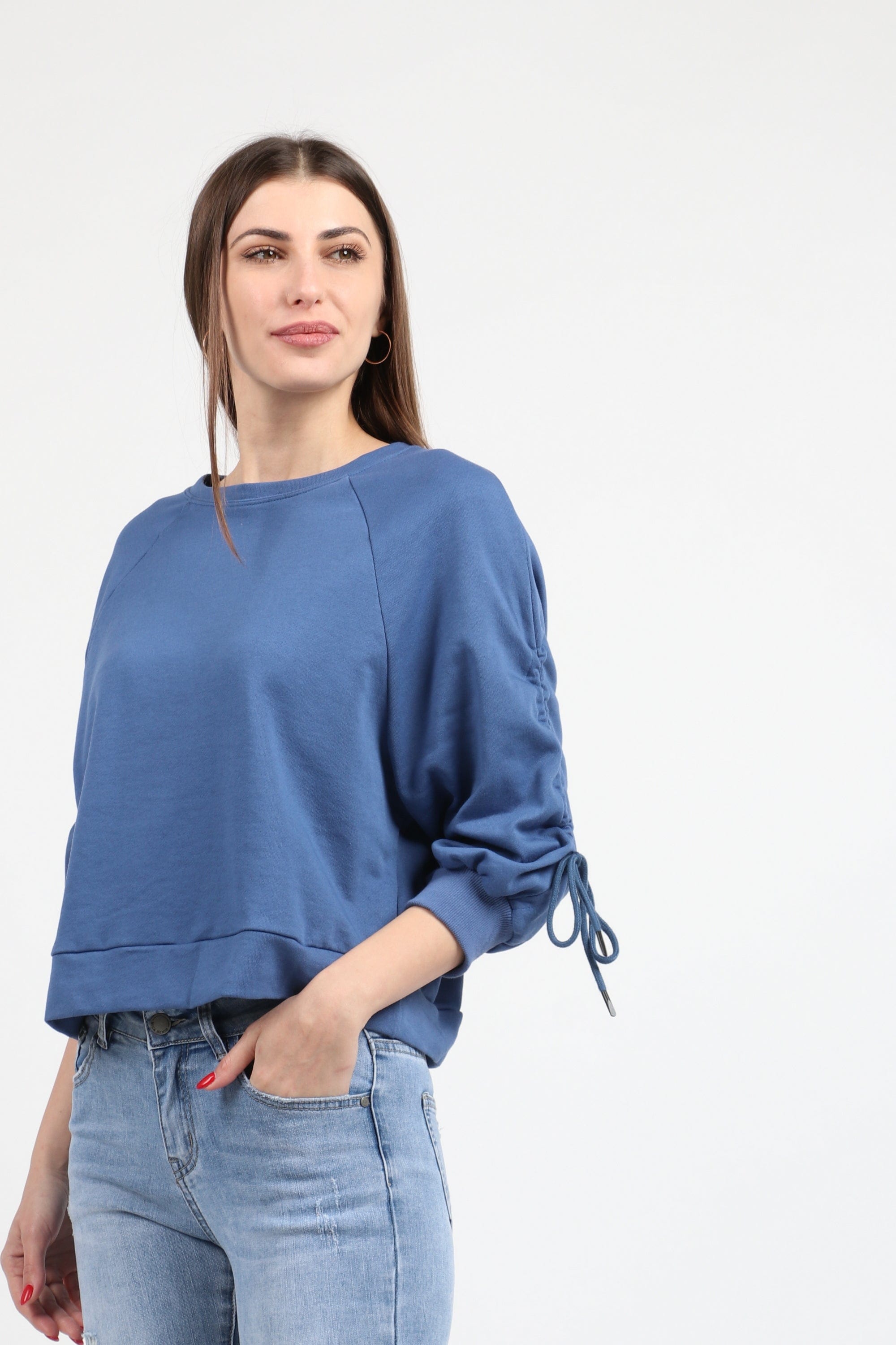 بلوزة قطنية بكم طويل بربطات من الاكمام نسائي