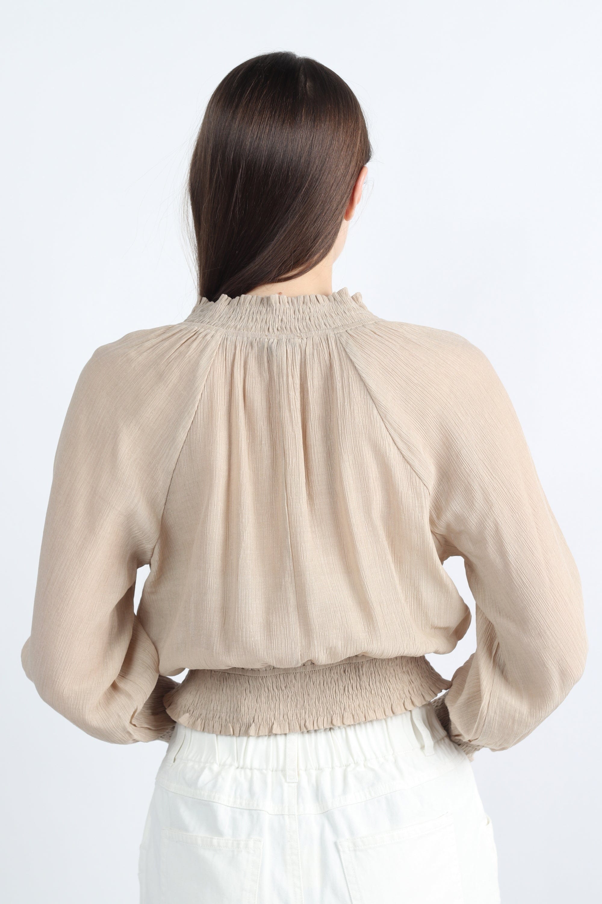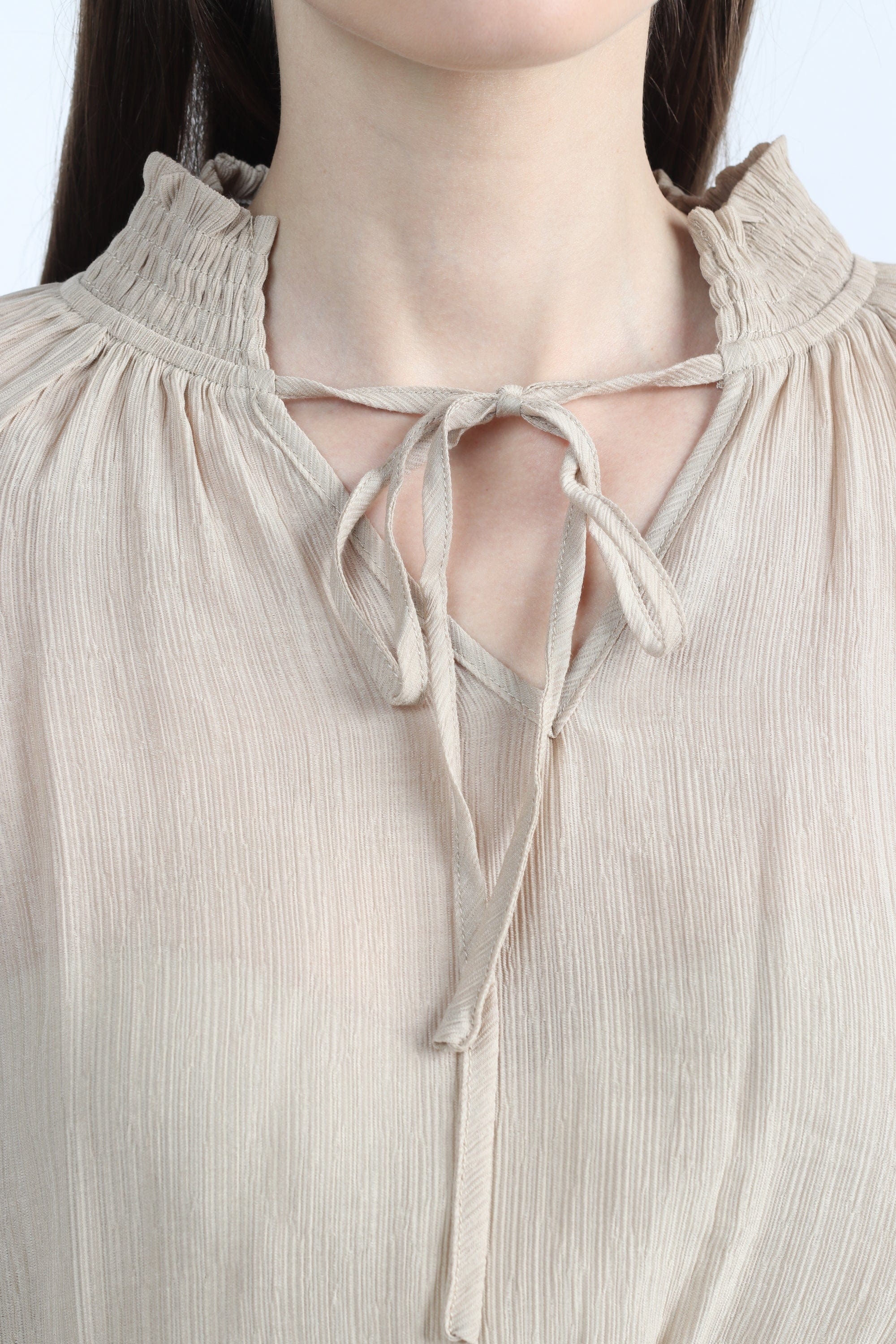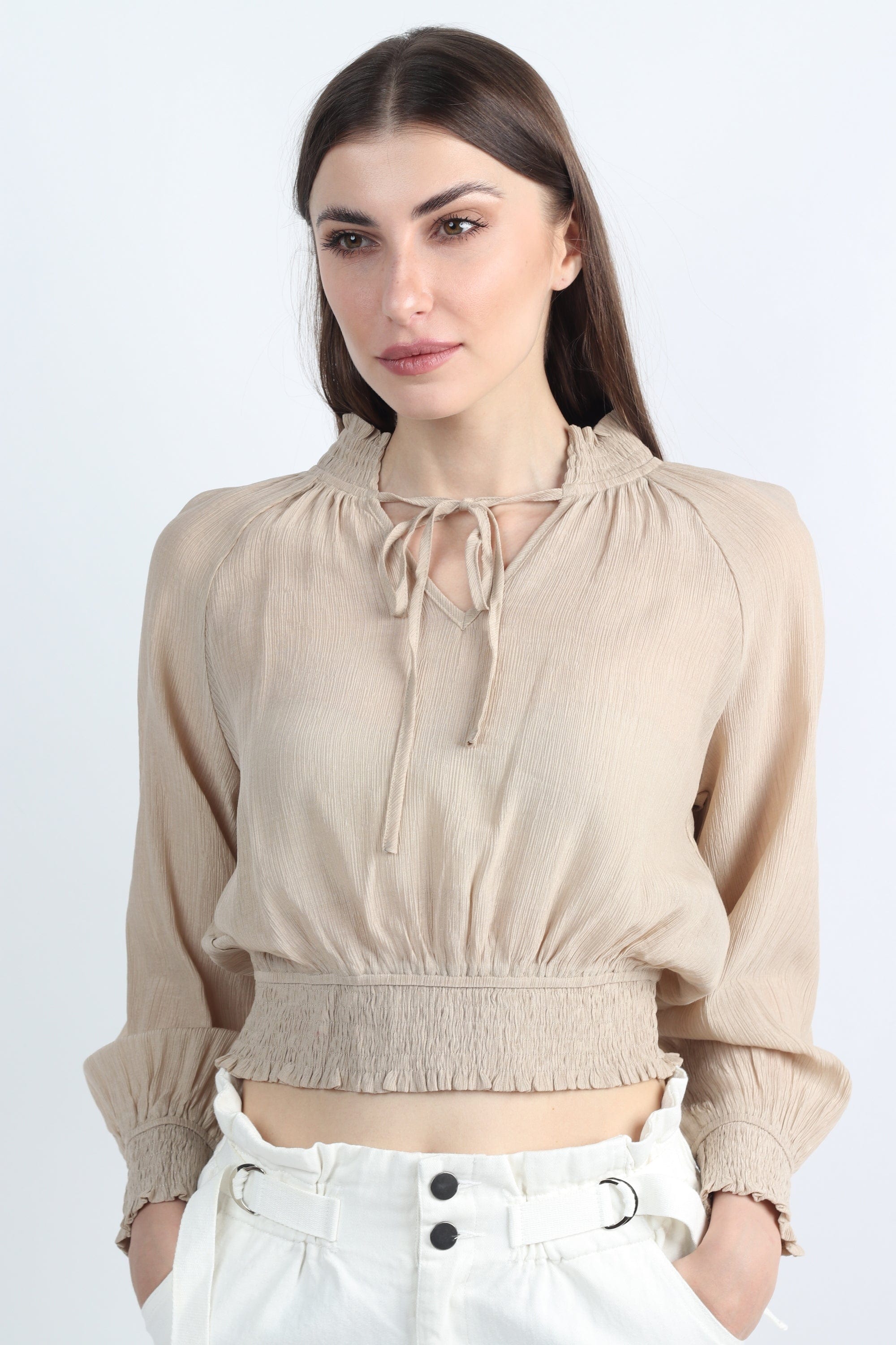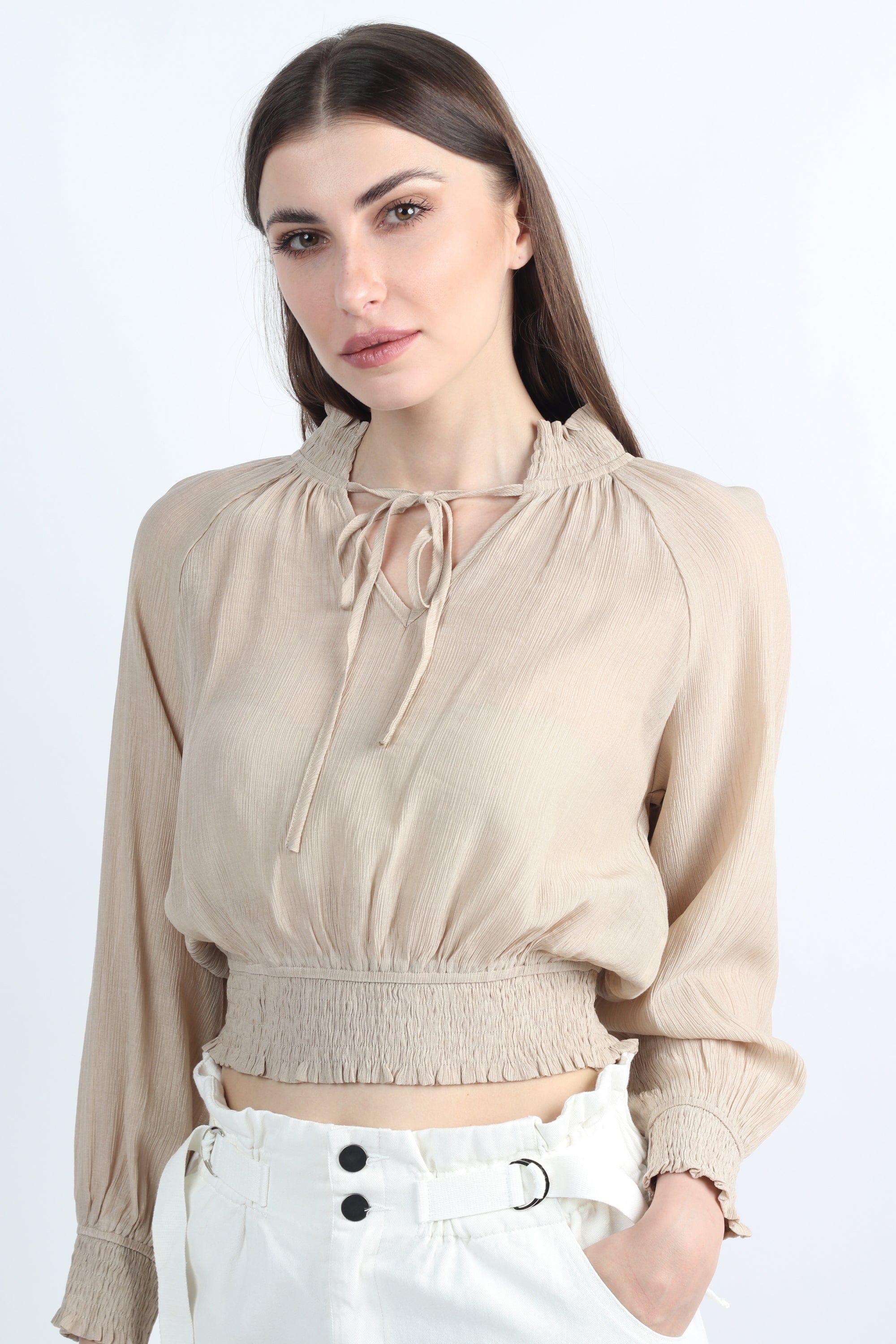 بلوزة بأكمام طويلة نص بطن برباط على الرقبة