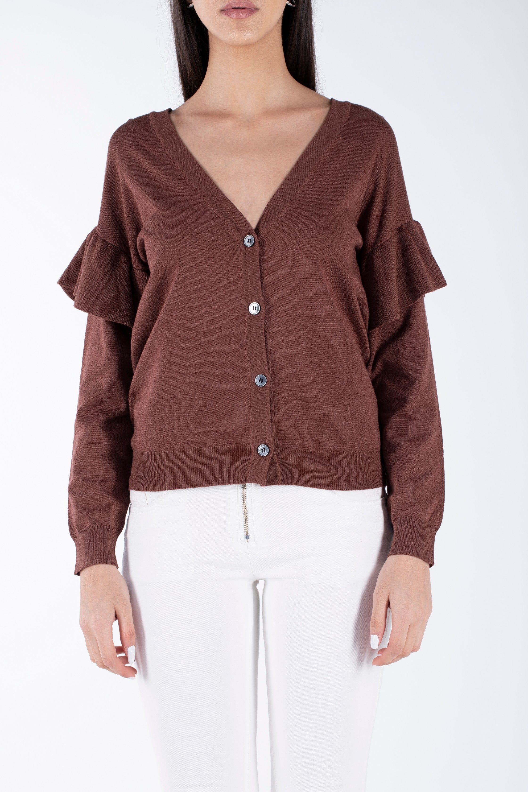 كارديجان سادة بأزرار أمامية بأكمام طويلة مكشكش