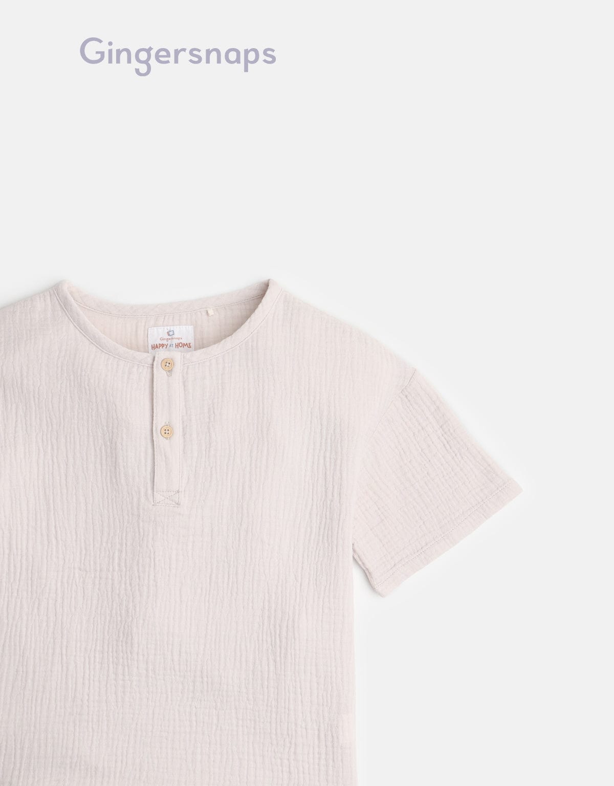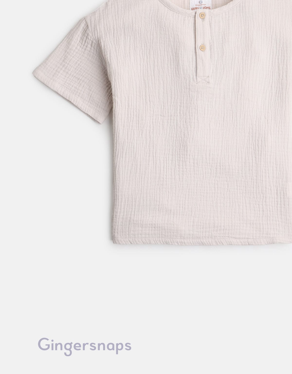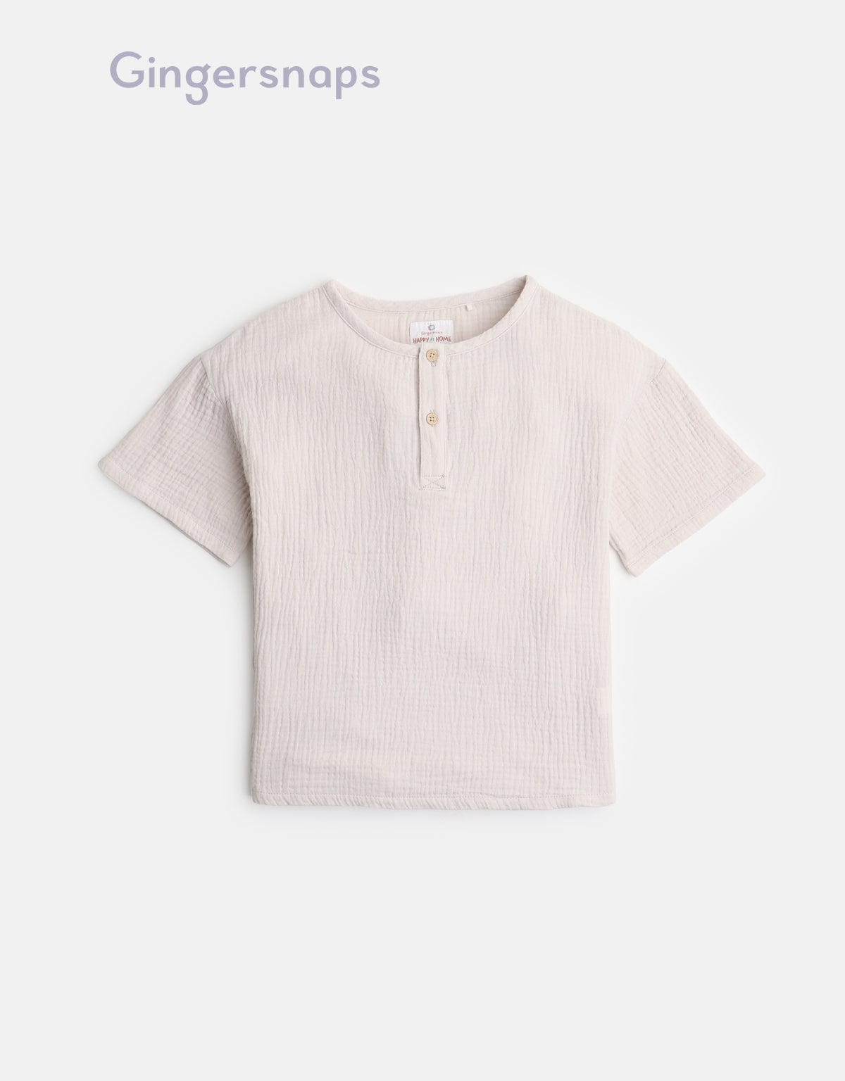 احصلي على قميص نص كم أولادي بكسرات من جينجرسنابس وأضيفي لمسة من الأناقة لإطلالة صغيرك. يتميز هذا القميص بأكمامه القصيرة والكسرات الجميلة التي تضفي لمسة عصرية على التصميم. مصنوع من مواد ذات جودة عالية لضمان الراحة والمتانة طوال اليوم. متوفر باللون البيج الأنيق. يمكنك تنسيقه مع بنطال جينز أو شورت لإطلالة كاجوال مثالية. احصلي عليه الآن واجعلي صغيرك يتألق بأسلوبه الخاص. اطلبي قميص نص كم أولادي بكسرات من جينجرسنابس عبر فاشن السعودية واستعدي لإضافة لمسة من الأناقة إلى ملابس صغيرك. رقم المنتج: bws0479