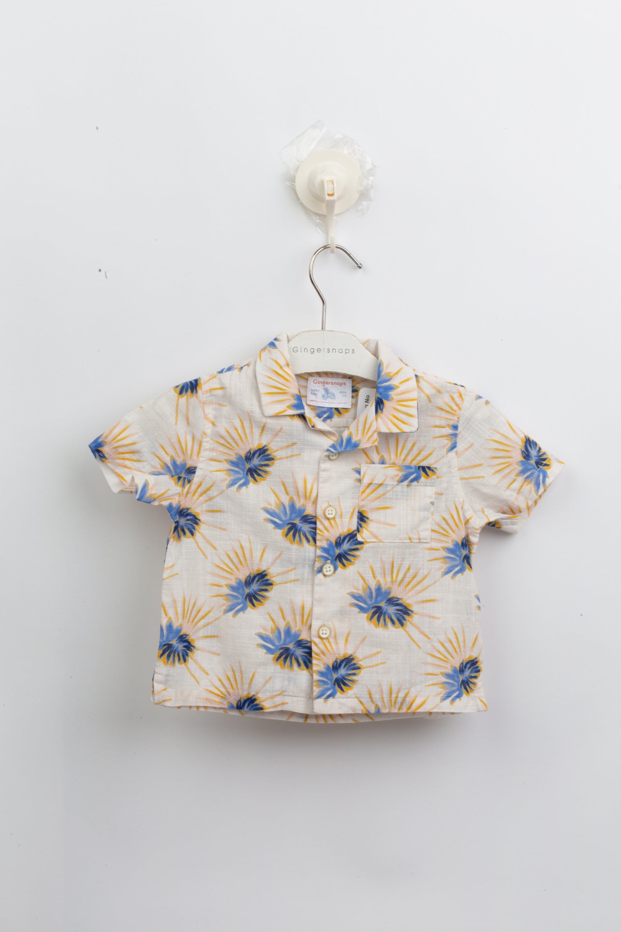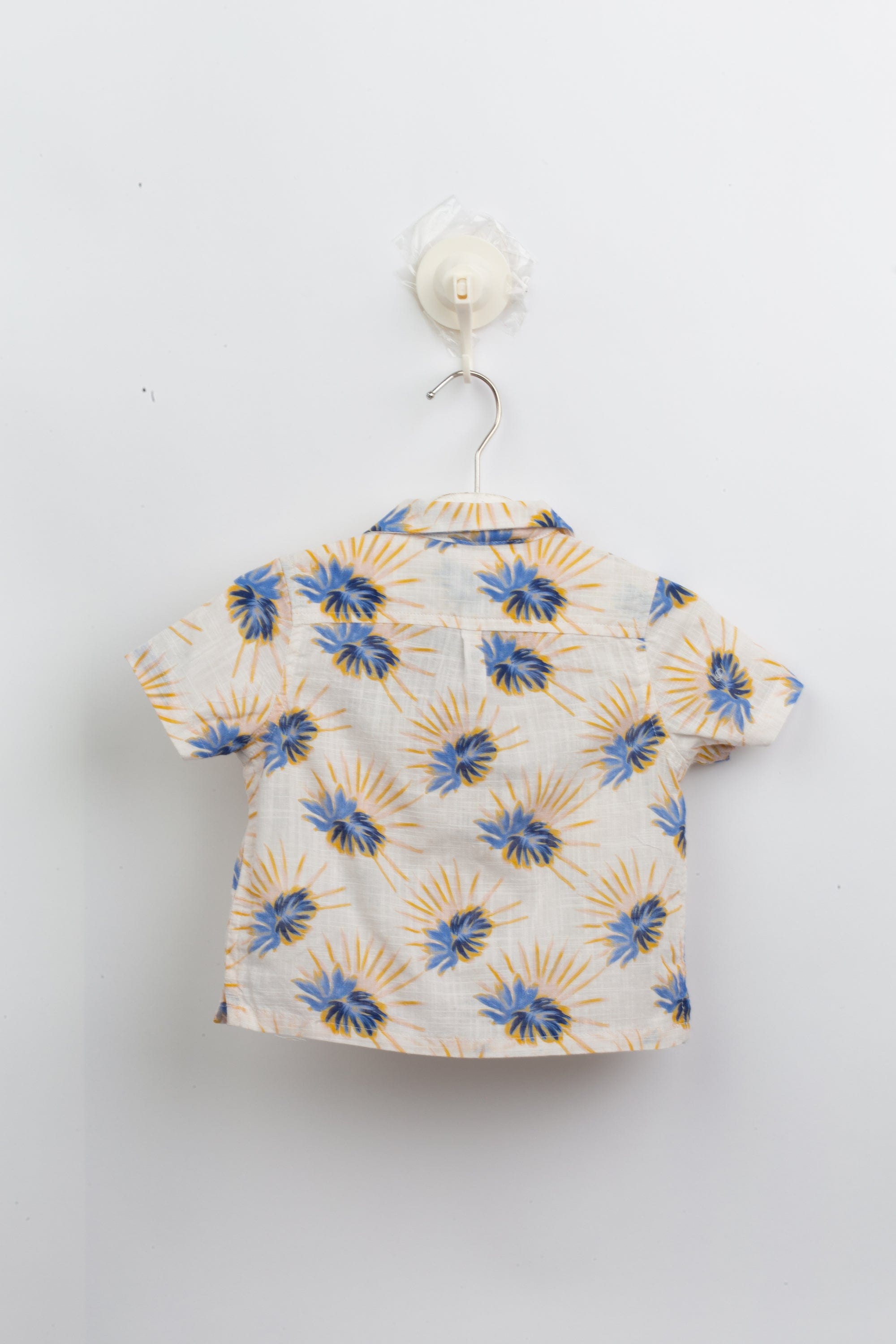 قميص بولو منسوج للأولاد مشجرة بأزرار أمامية نص كم