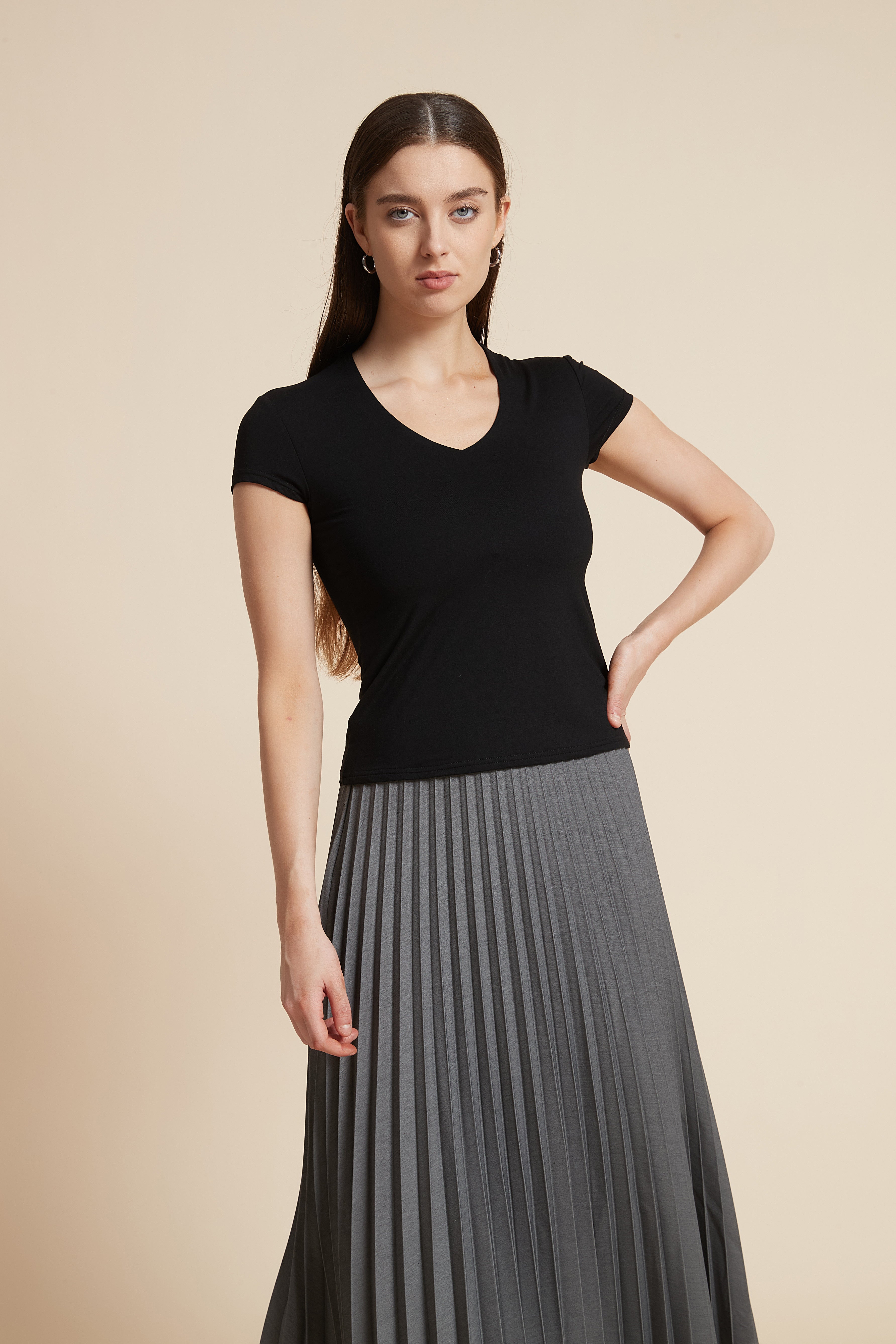 انغمسي في روعة الموضة مع بلوزة أكمام قصيرة سادة ضيقة من نتشي. تتوفر هذه البلوزة في مجموعة من الألوان الرائعة مثل الأسود والجملي والأوف وايت والوردي والأزرق المخضر. تمتاز هذه البلوزة بتصميمها الأنيق والمريح في آن واحد، مما يجعلها الخيار المثالي للنساء اللواتي يبحثن عن إطلالة جذابة وعصرية. احصلي على بلوزة أكمام قصيرة سادة ضيقة الآن واستمتعي بالأناقة في كل وقت. اطلبيها الآن من فاشن السعودية. رقم المنتج: bzx006