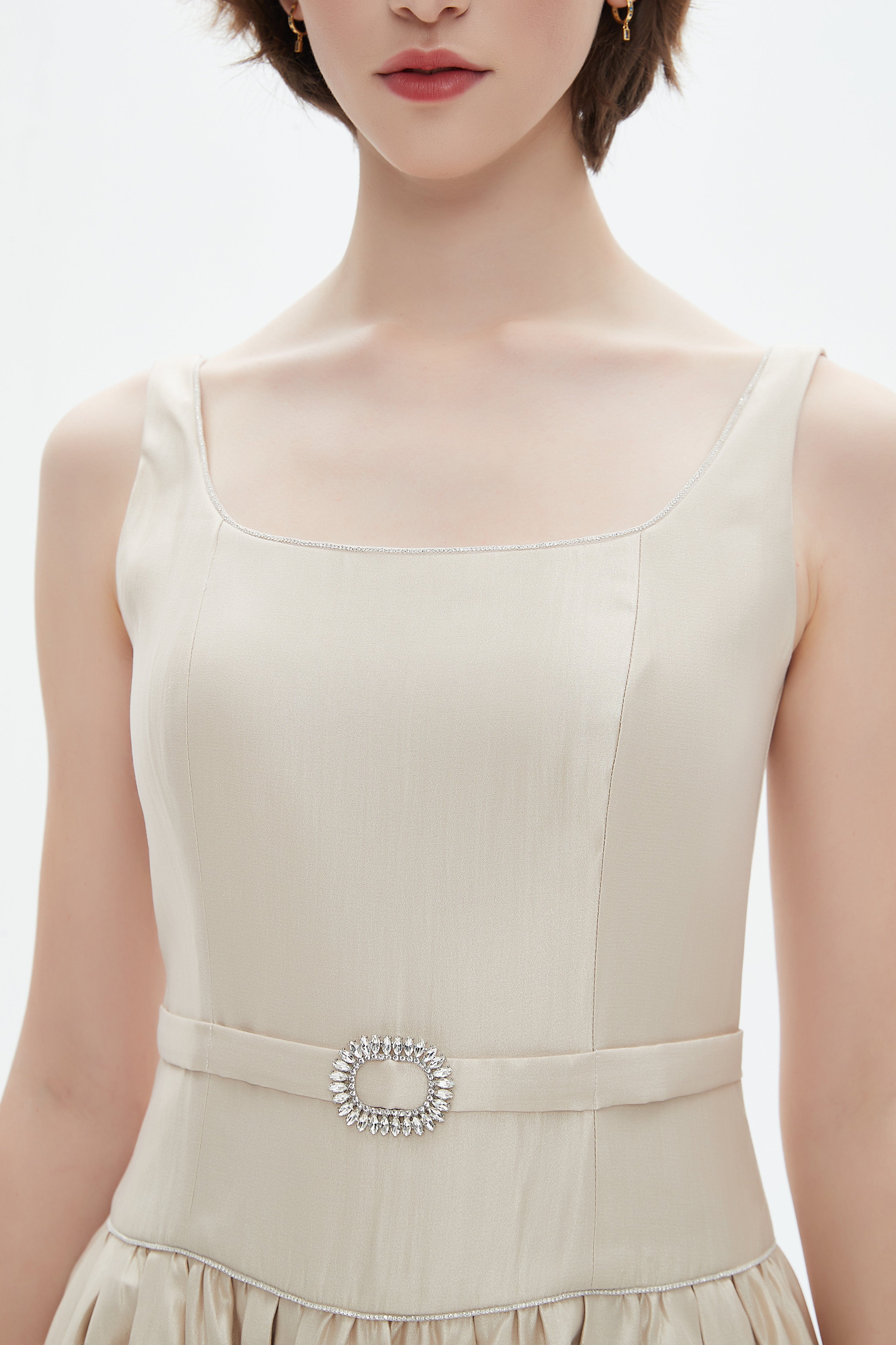 - ياقة مربعة وتصميم بلا أكمام لمظهر أنيق