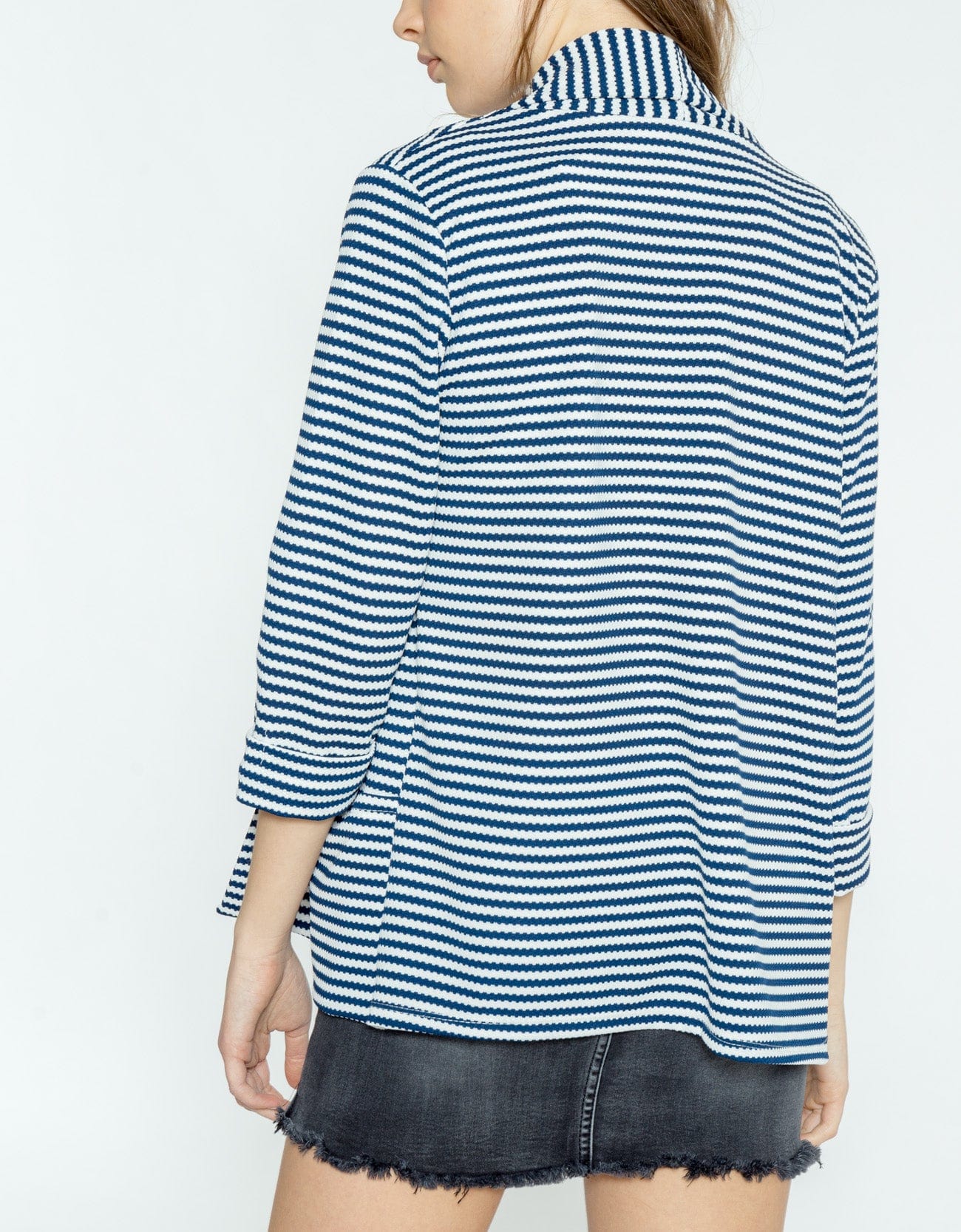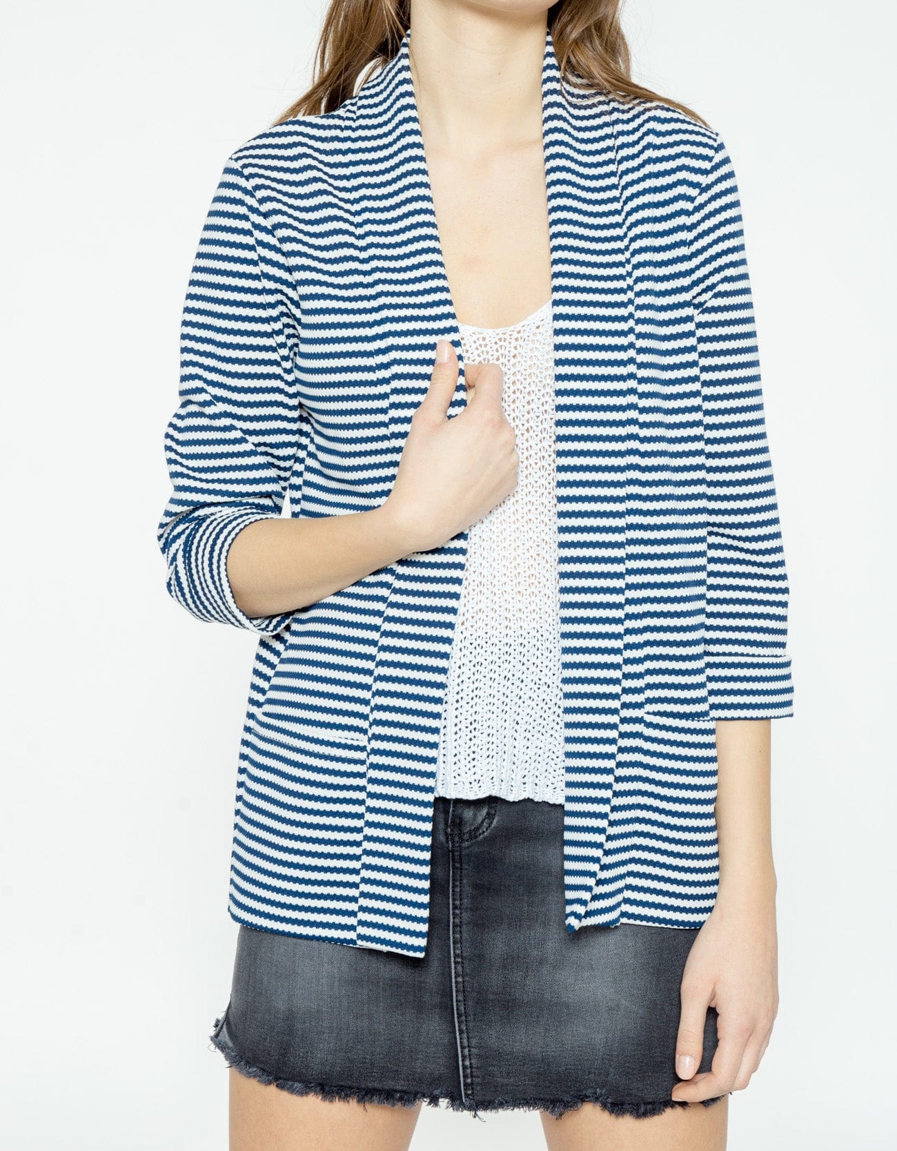 جاكيت مخطط بالعرض 3/4 بأكمام طويلة نسائي
