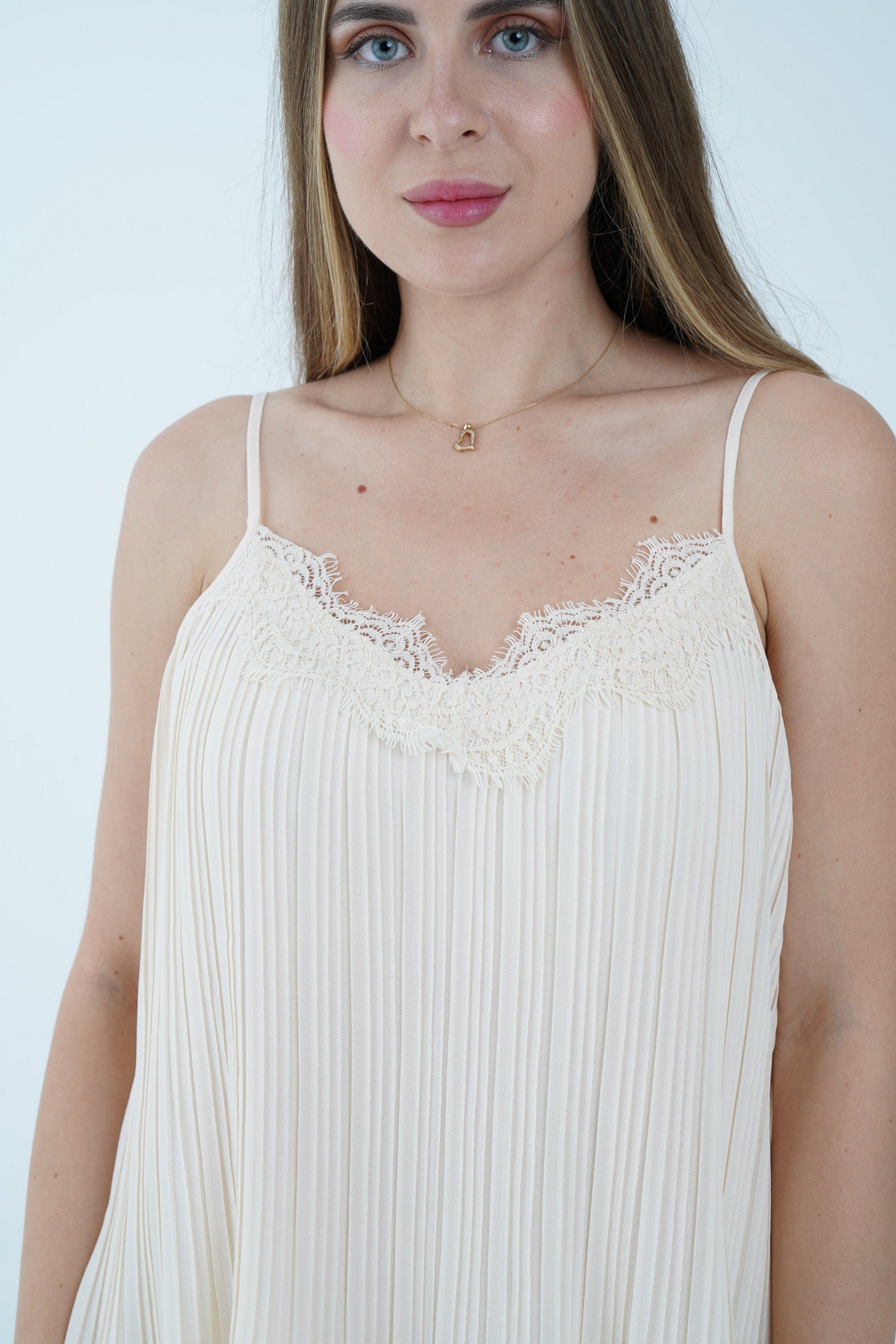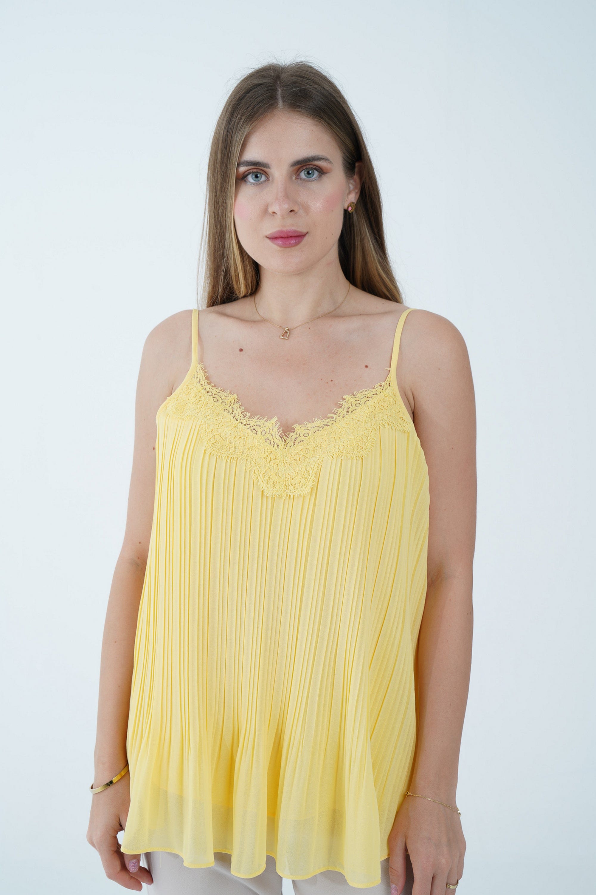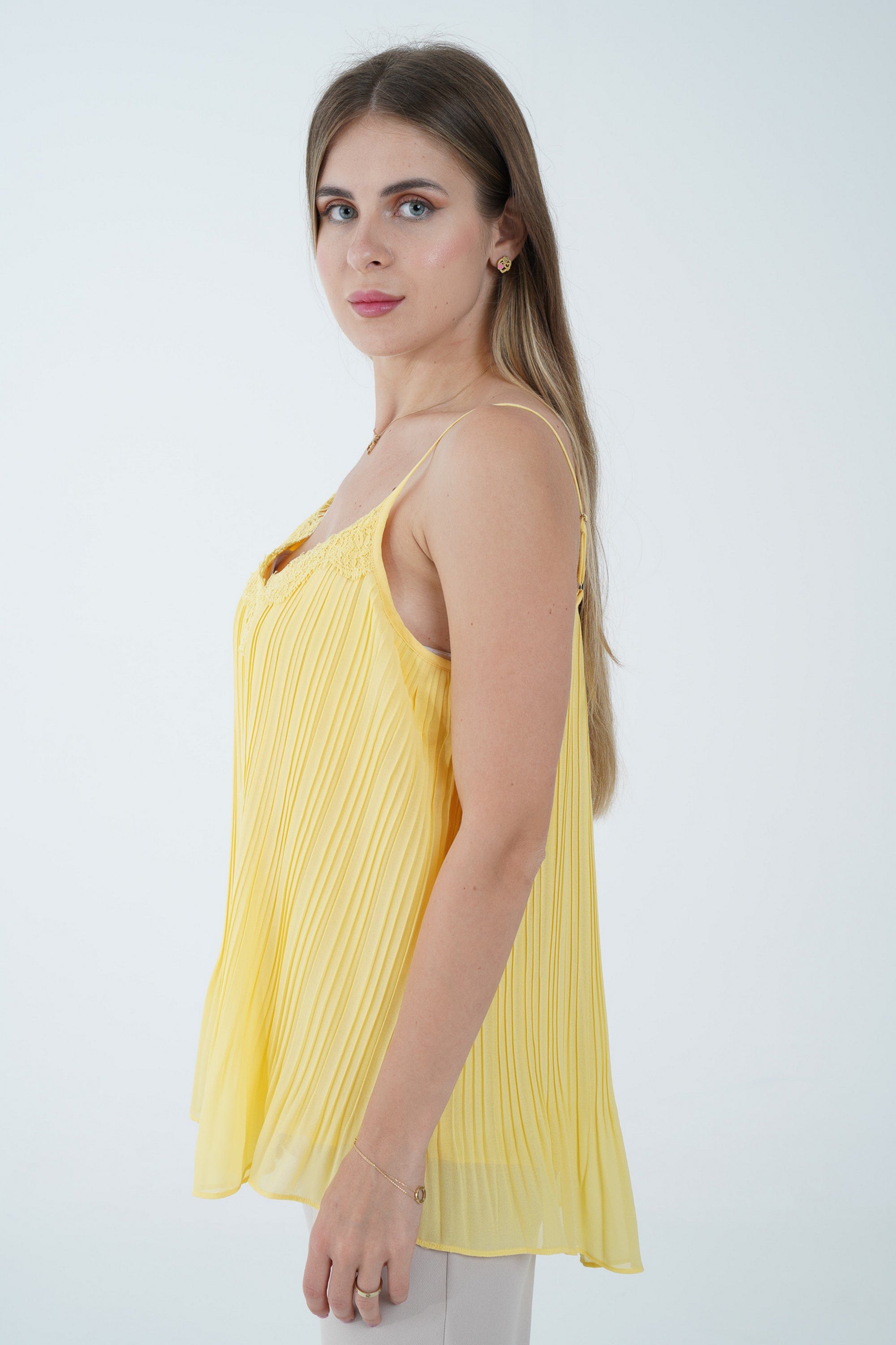 امنحي إطلالتك لمسة رقي وأنوثة مع تانك توب بليسية مزين بدانتيل من نتشي. يأتي هذا التانك توب بتصميم أنيق ومريح، مصنوع من الدانتيل الفاخر والناعم، مع تفاصيل رائعة تضفي لمسة مميزة على إطلالتك. يتوفر هذا التانك توب بأربعة ألوان جميلة لتناسب أذواقك المختلفة: البيج، الأسود، الأوف وايت، والأصفر. احصلي على هذا التانك توب الأنيق والمميز الذي سيجعلك تتألقي في كل مناسبة. اطلبيه الآن من فاشن السعودية وكني أنيقة ومميزة في كل وقت. احصلي الآن على تانك توب بليسية مزين بدانتيل من نتشي واستمتعي بالأناقة في كل وقت. رقم المنتج: ch02723q205