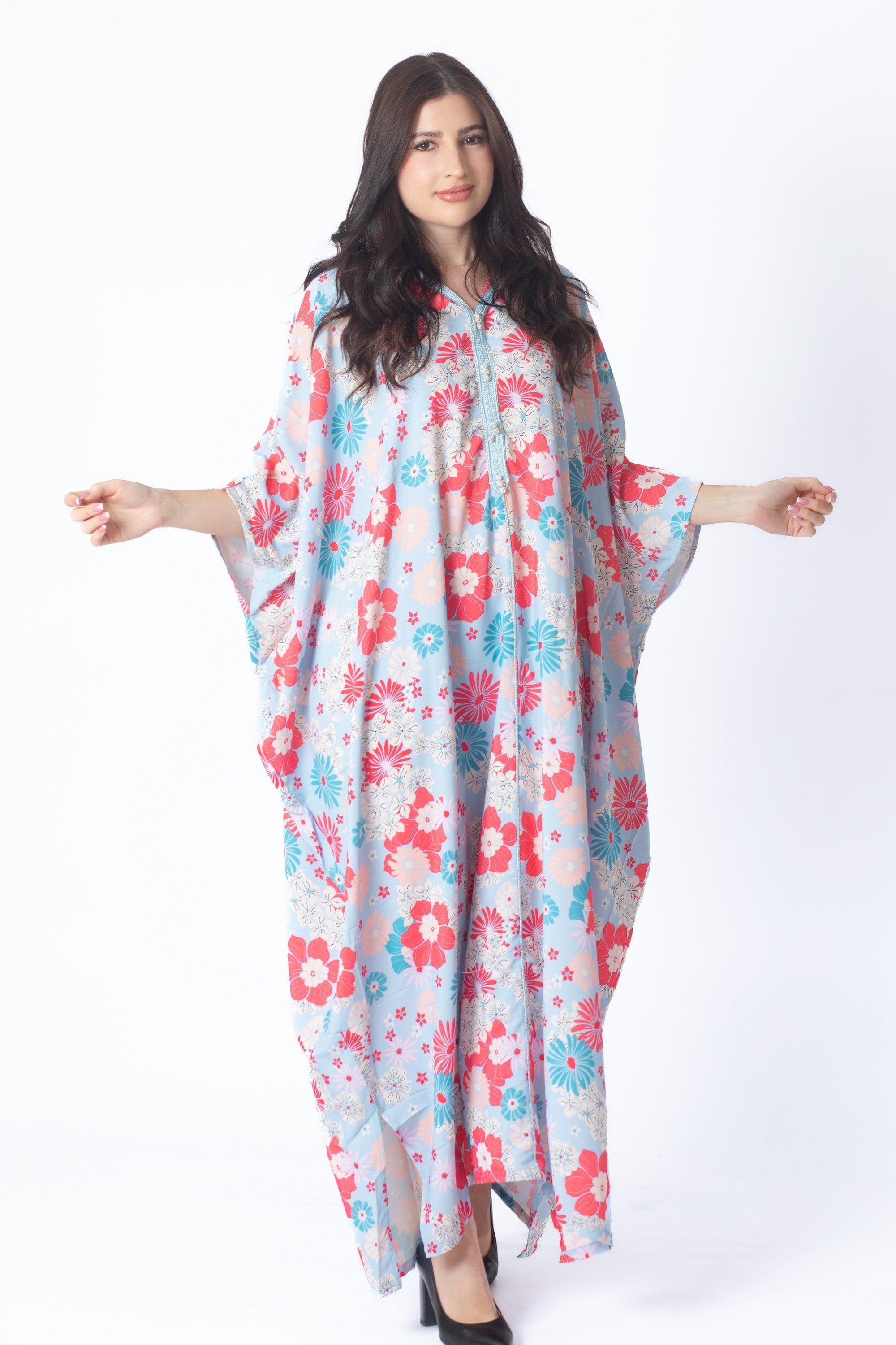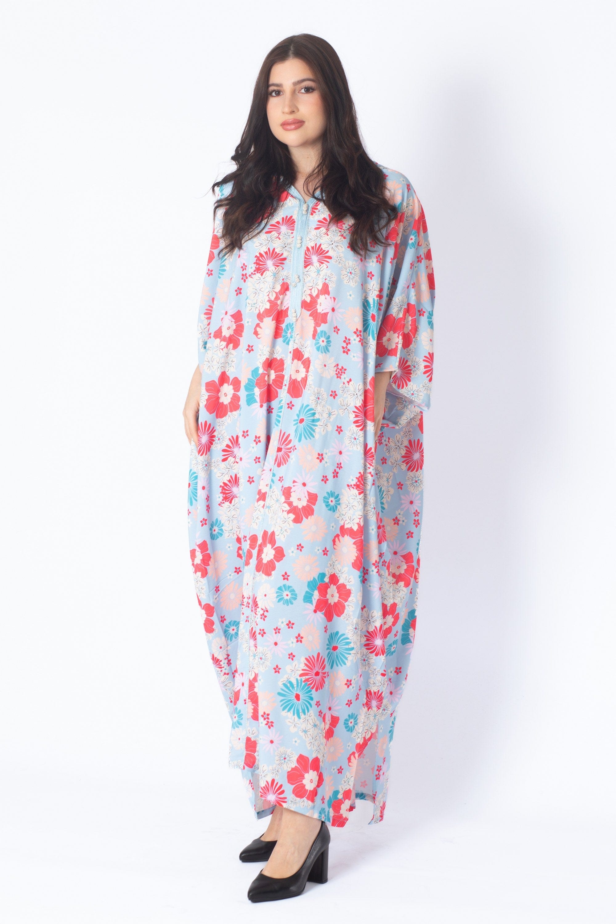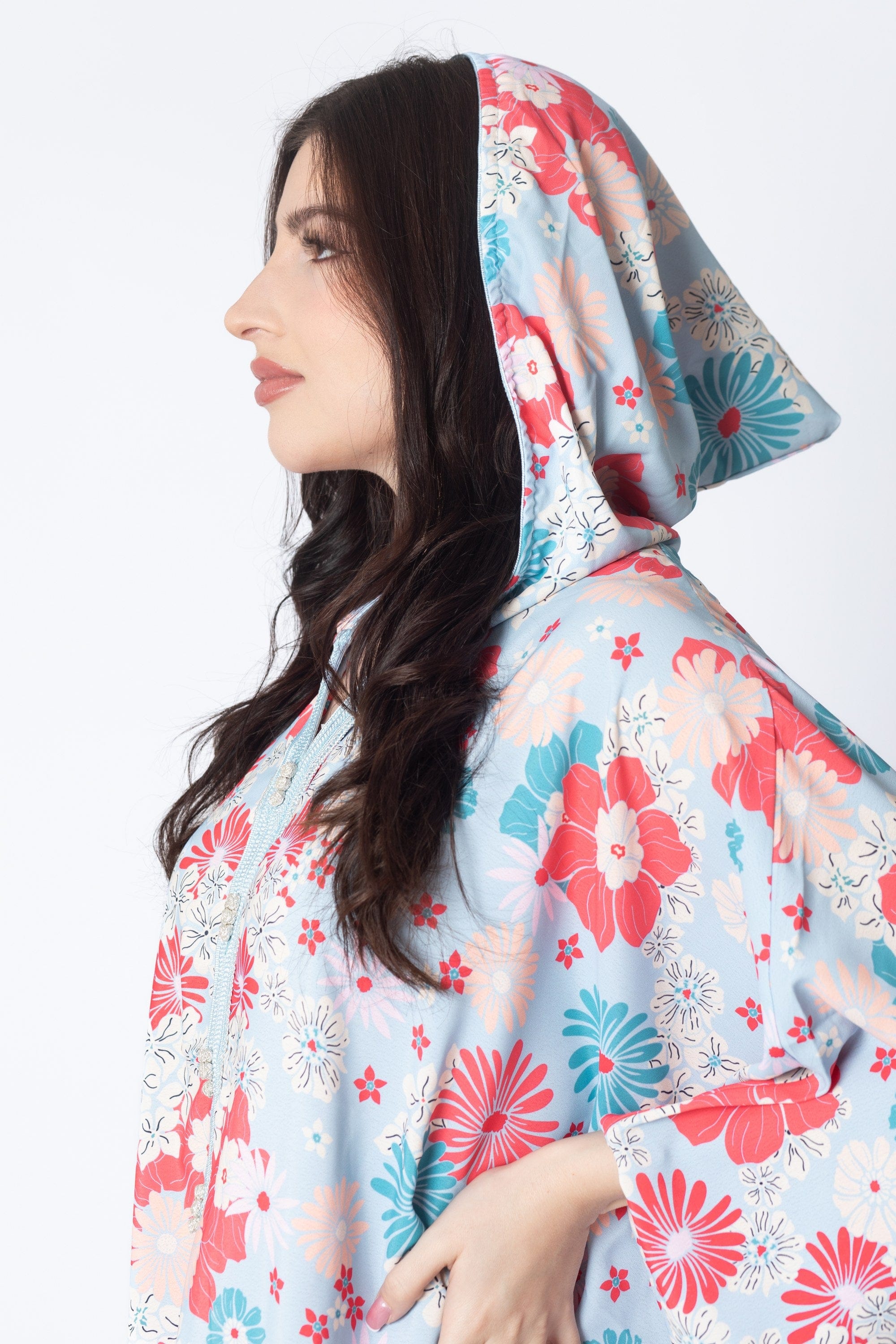 جلابة موردة بقبعة 3/4 كم واسع نسائي