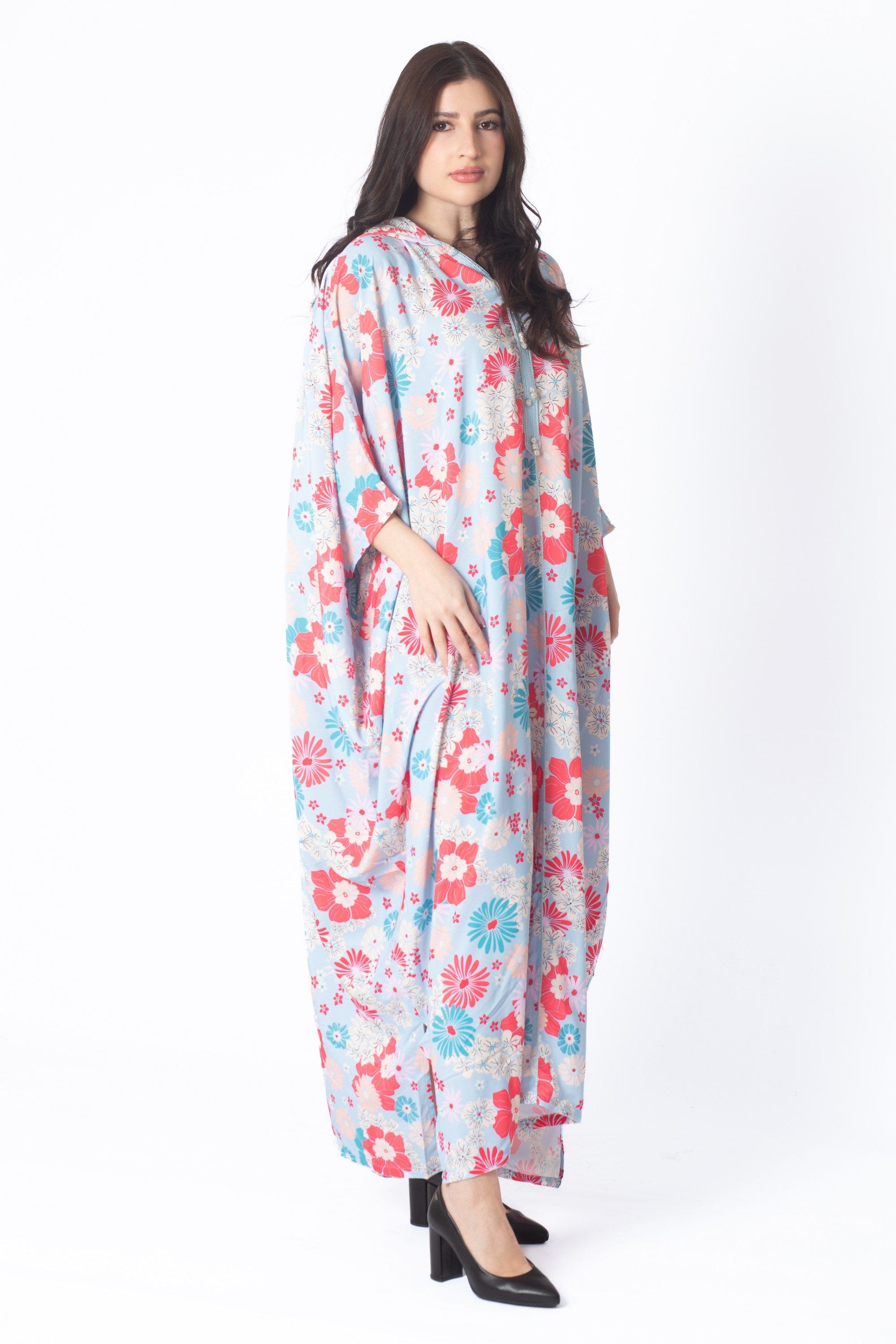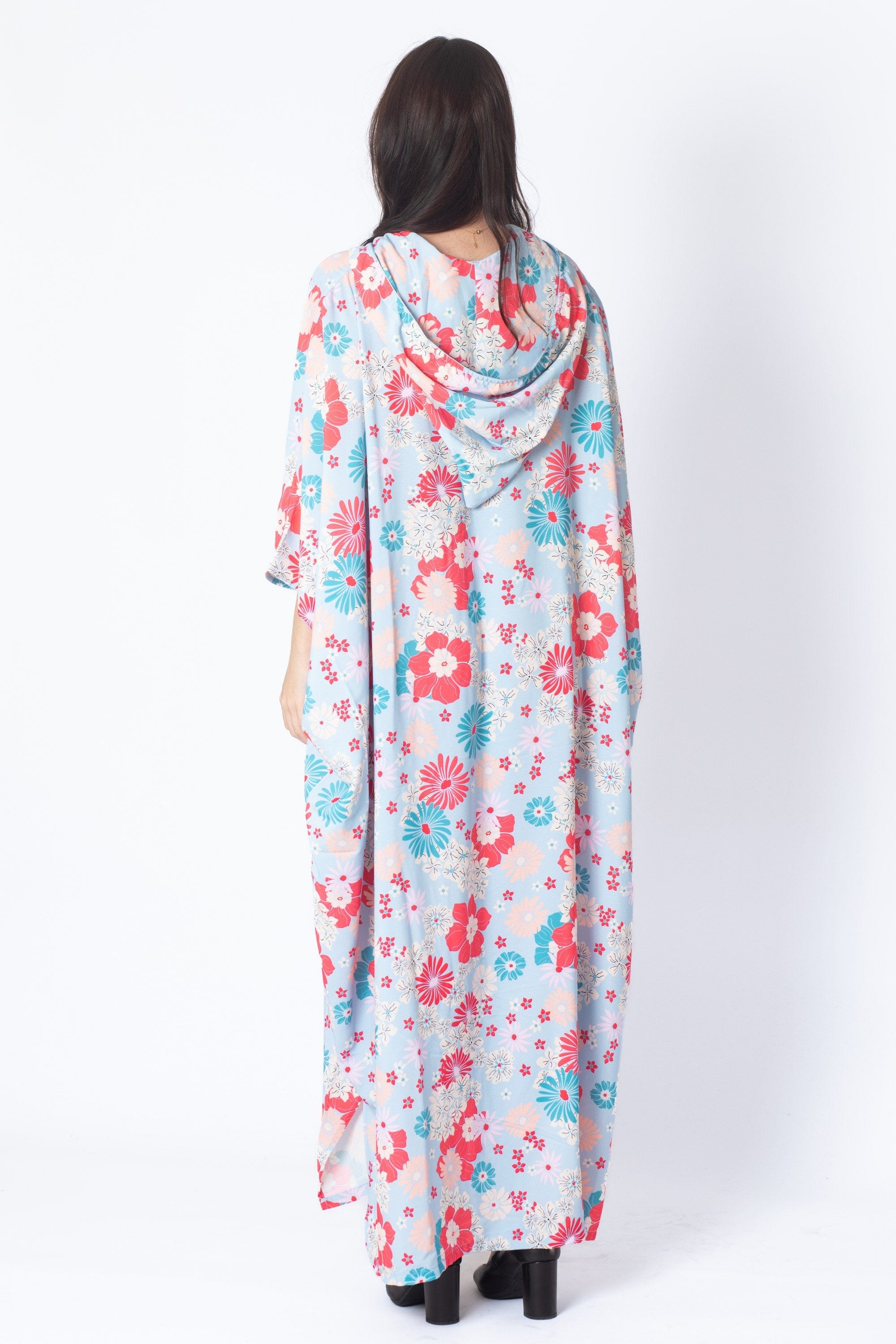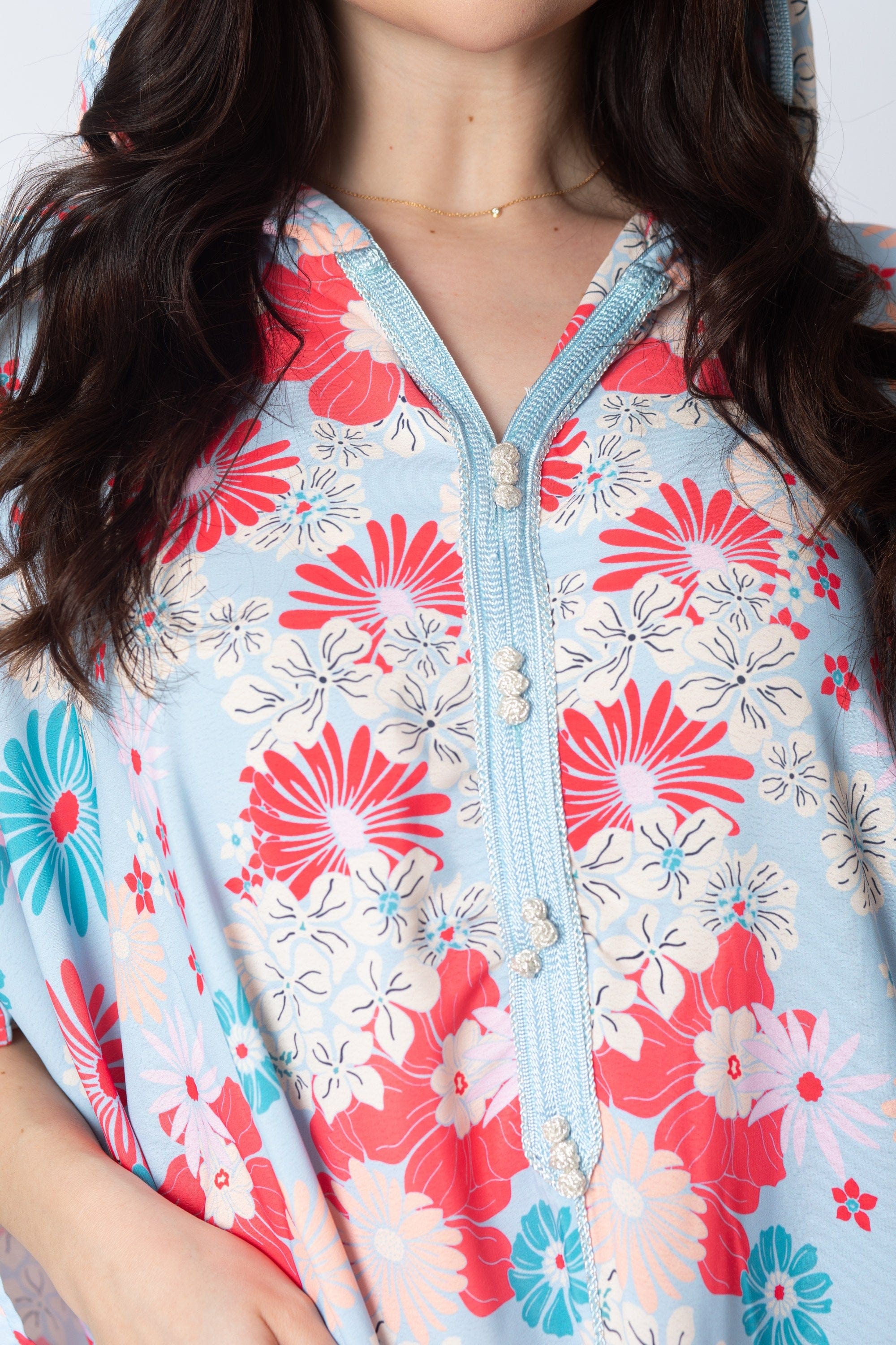 جلابة موردة بقبعة 3/4 كم واسع نسائي