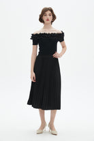 فستان نسائي ميدي أوف شولدر بليسيه سادة