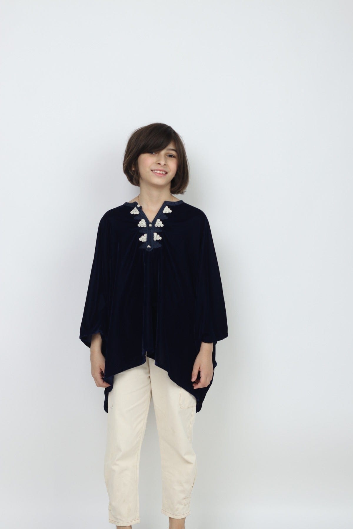 بلوزة مغربية بناتي مطرزة على الصدر كم طويل