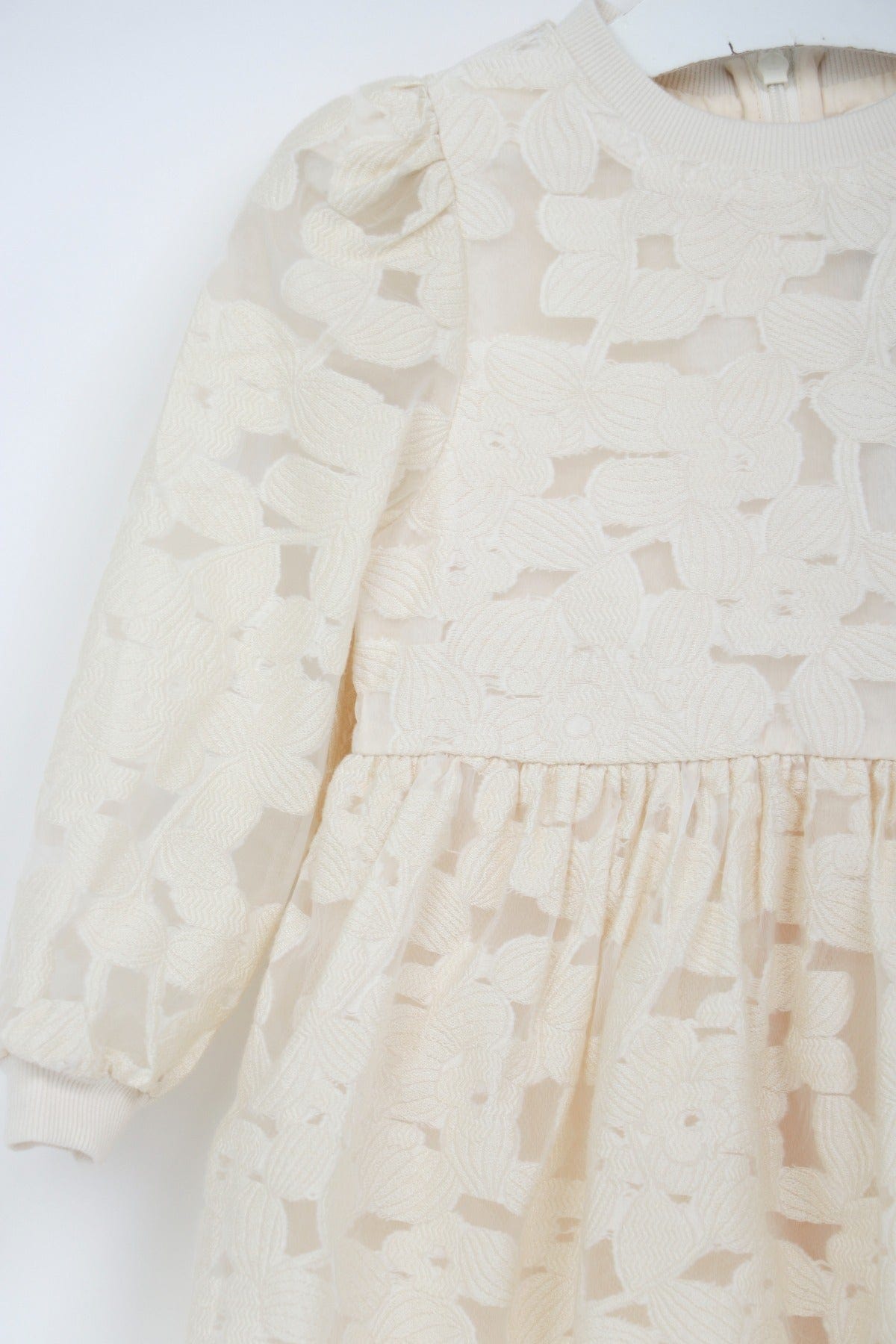 فستان بناتي منقوش شفاف كم طويل