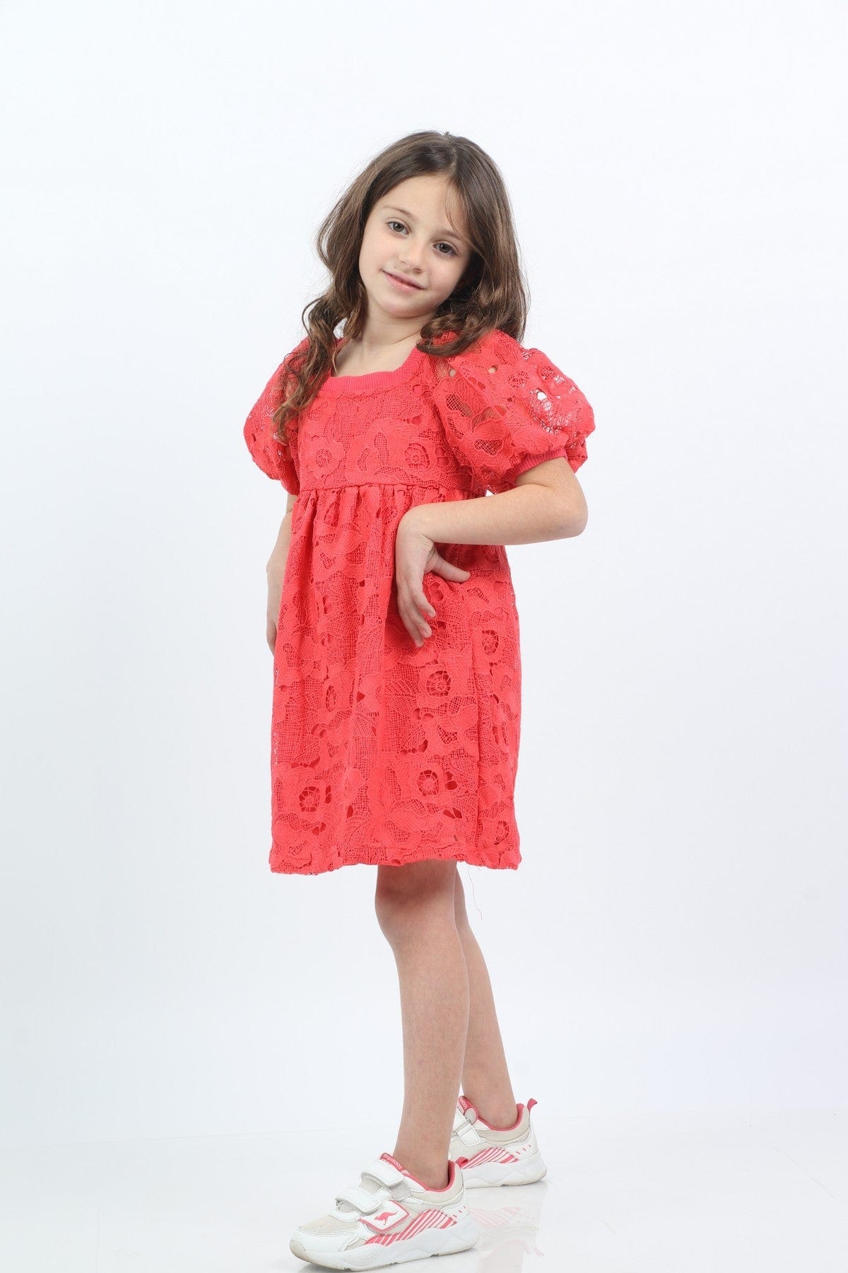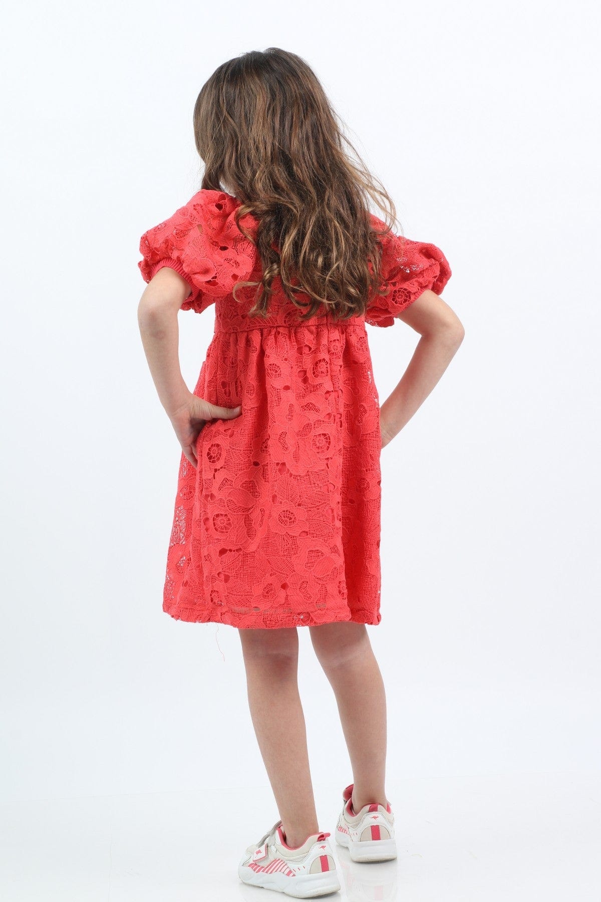 فستان دانتيل قصير منفوش نص كم بف بناتي