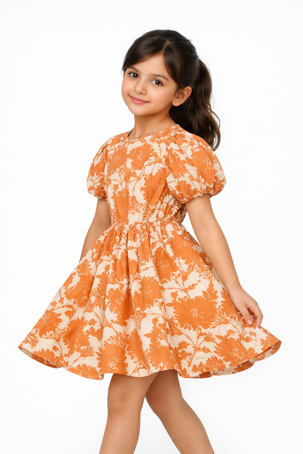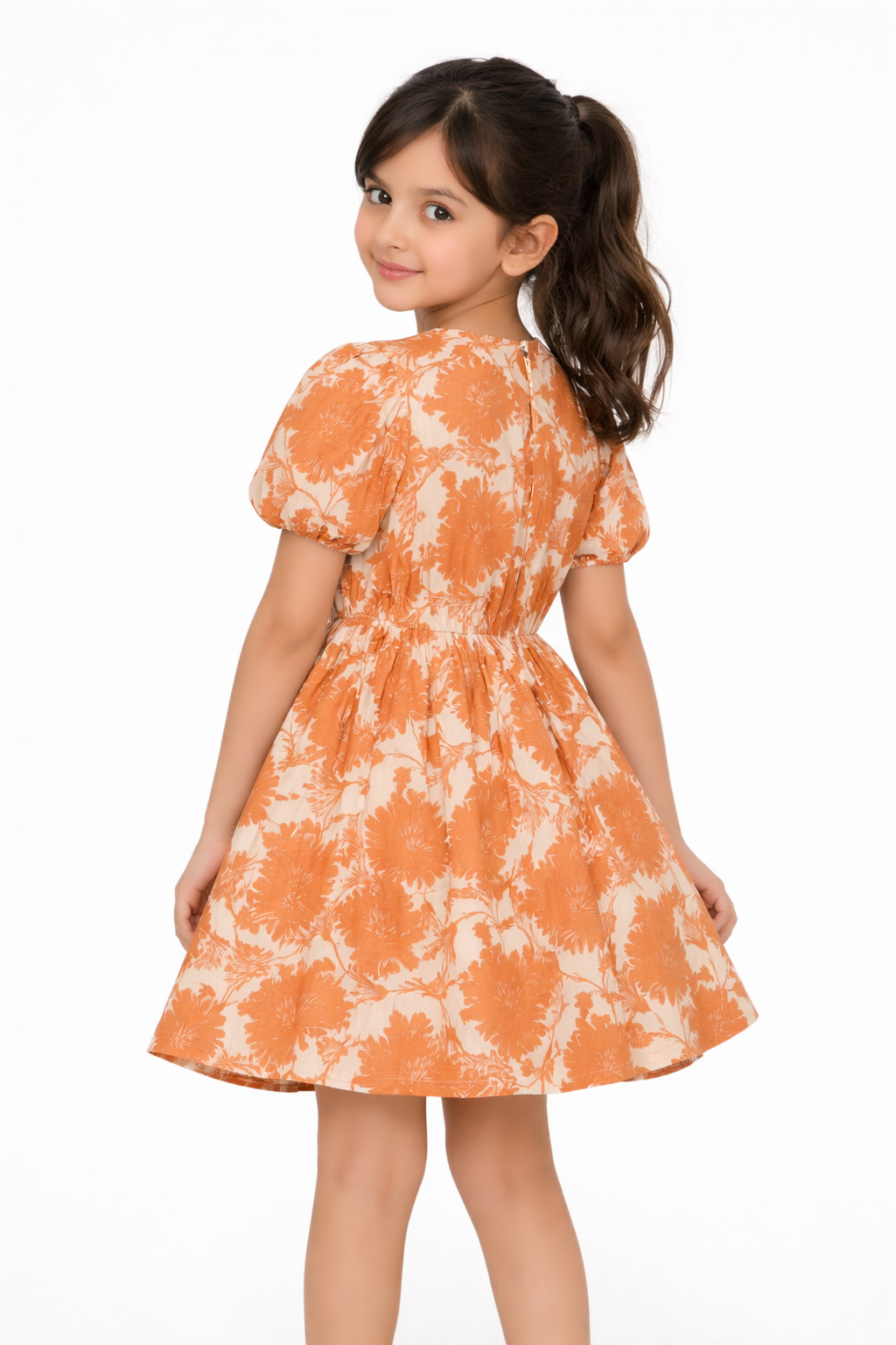 فستان بناتي منسوج منقوش نقشة ورد بفتحتين جانبيين