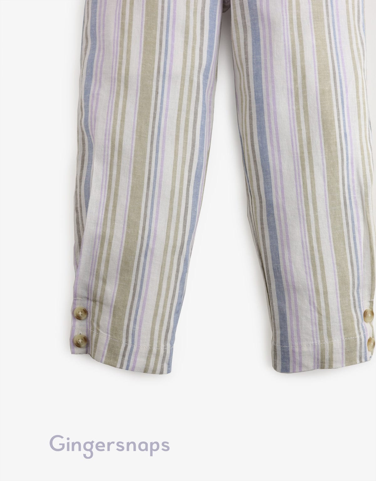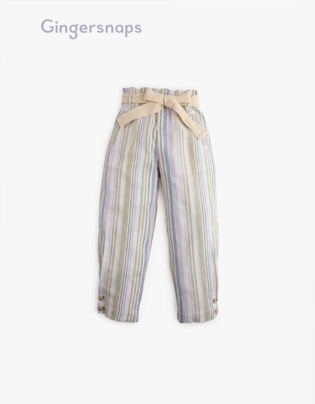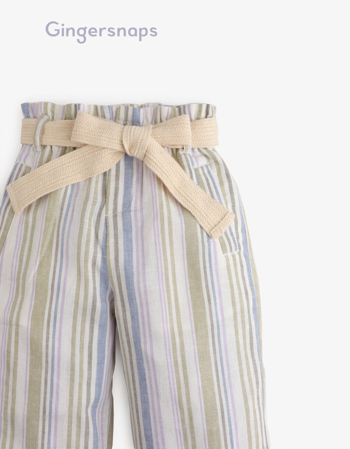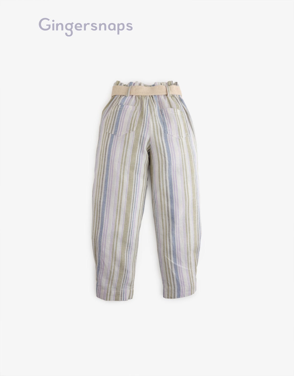 بنطلون بناتي مخطط بالطول بحزام على الخصر
