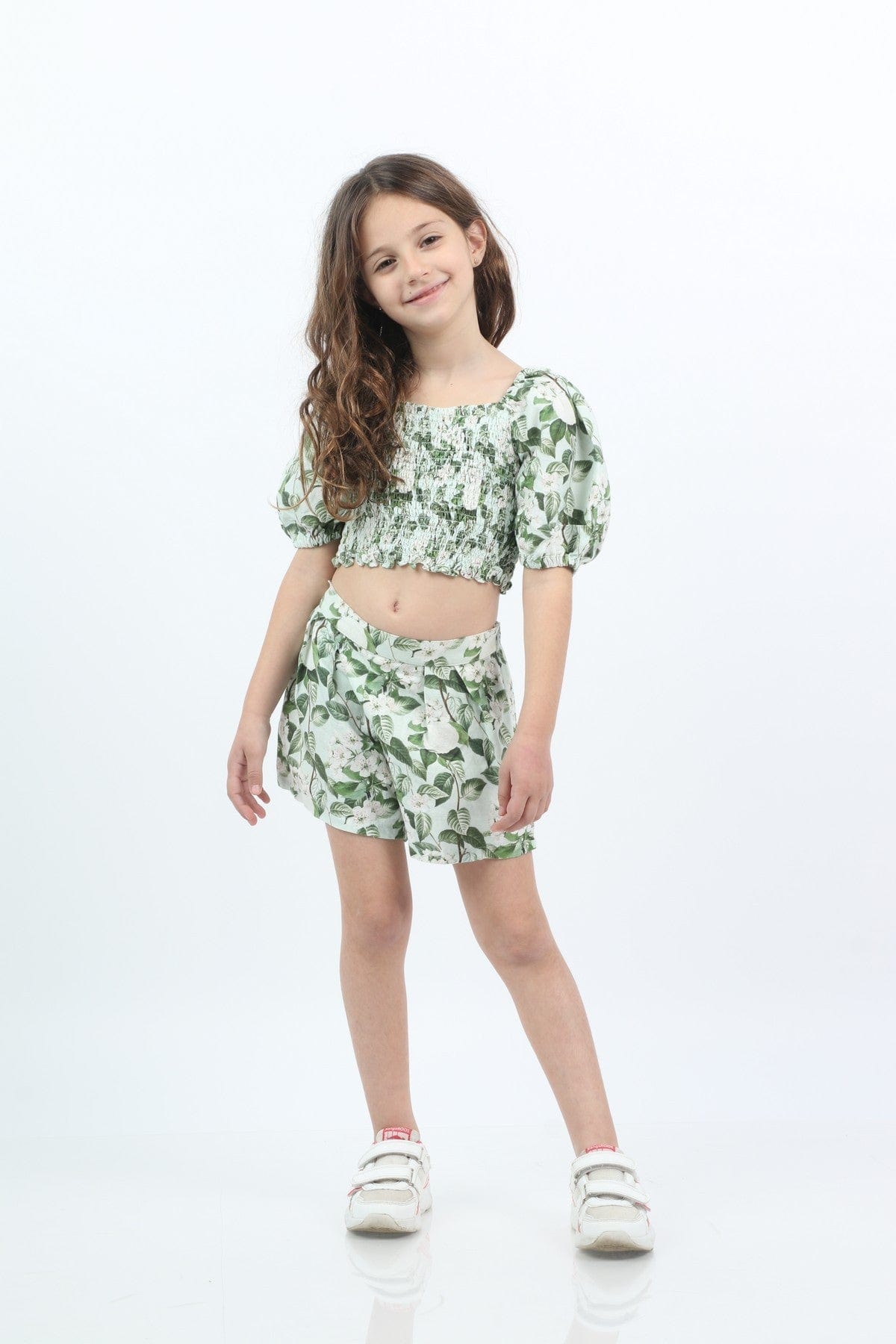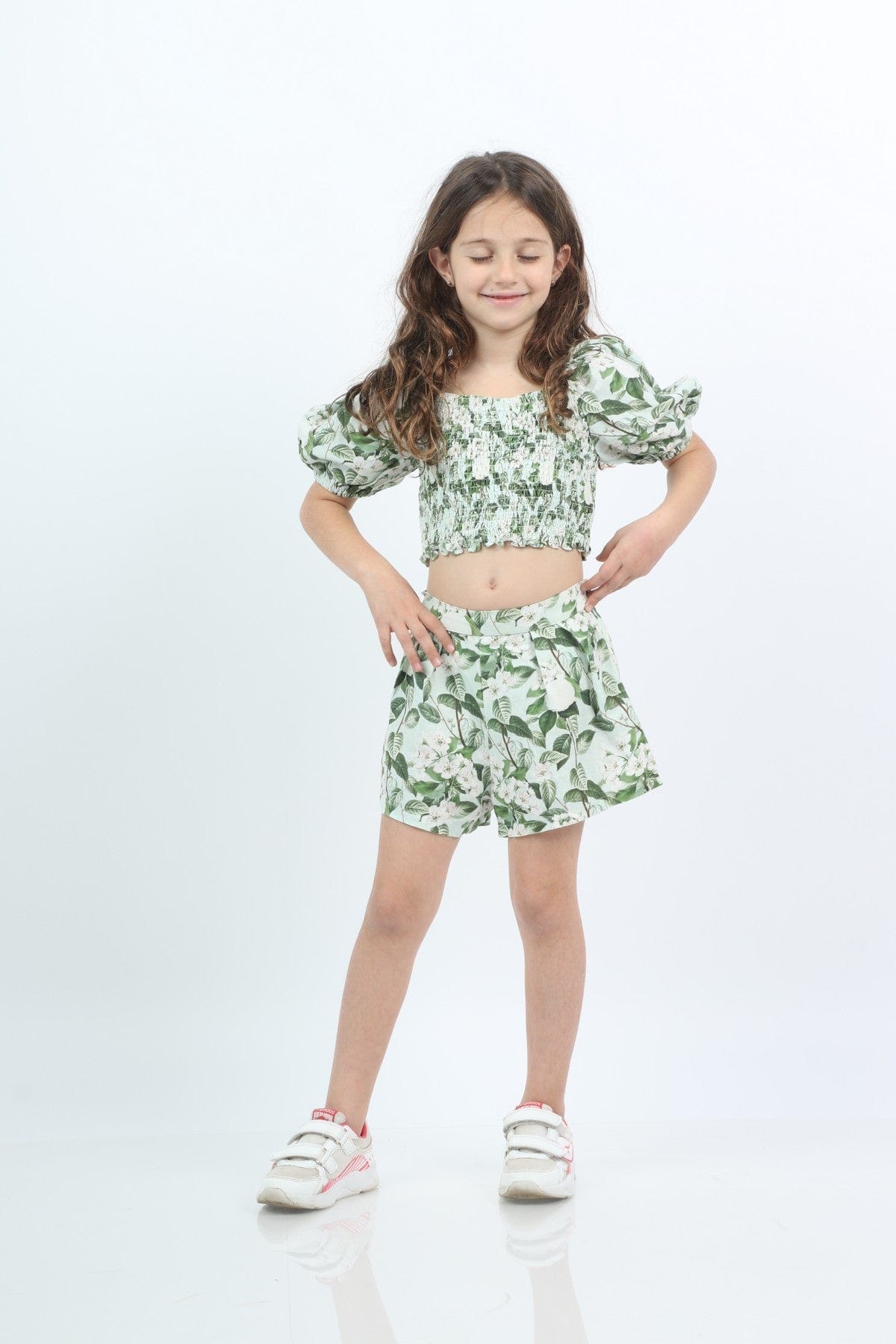 طقم شورت بناتي مشجرة وتانك توب مشجر