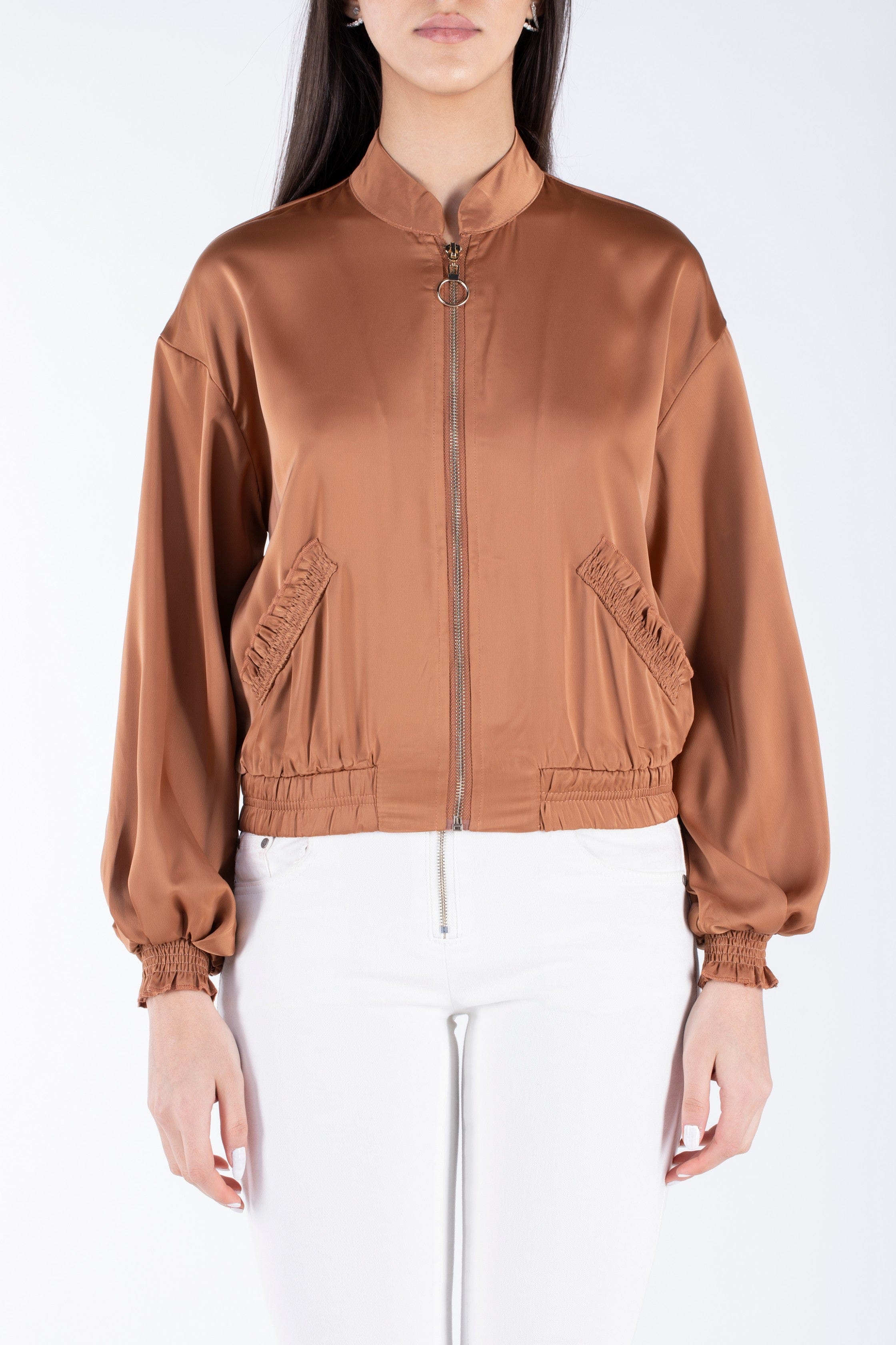سترة سادة بسحاب وجيوب بأكمام طويلة