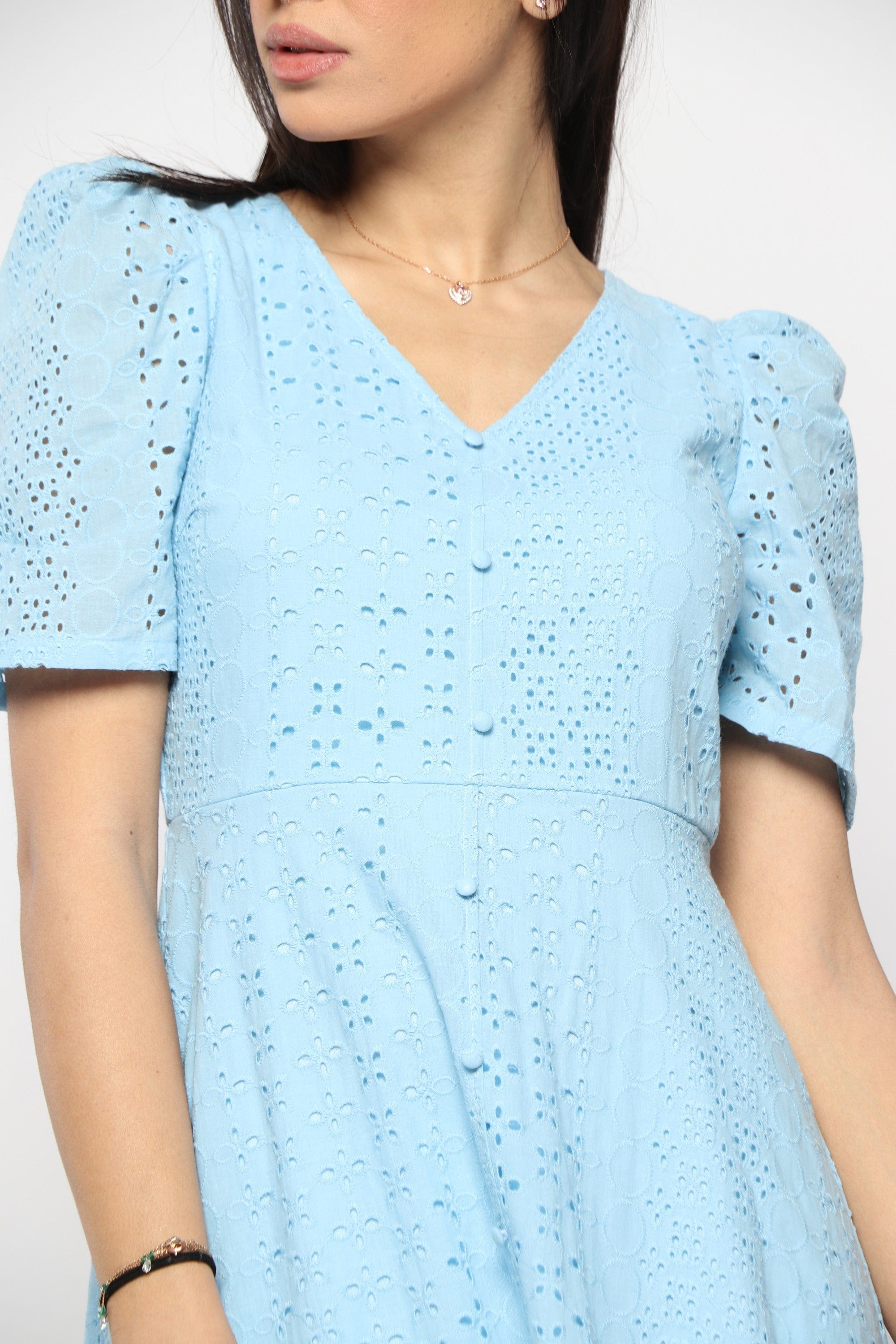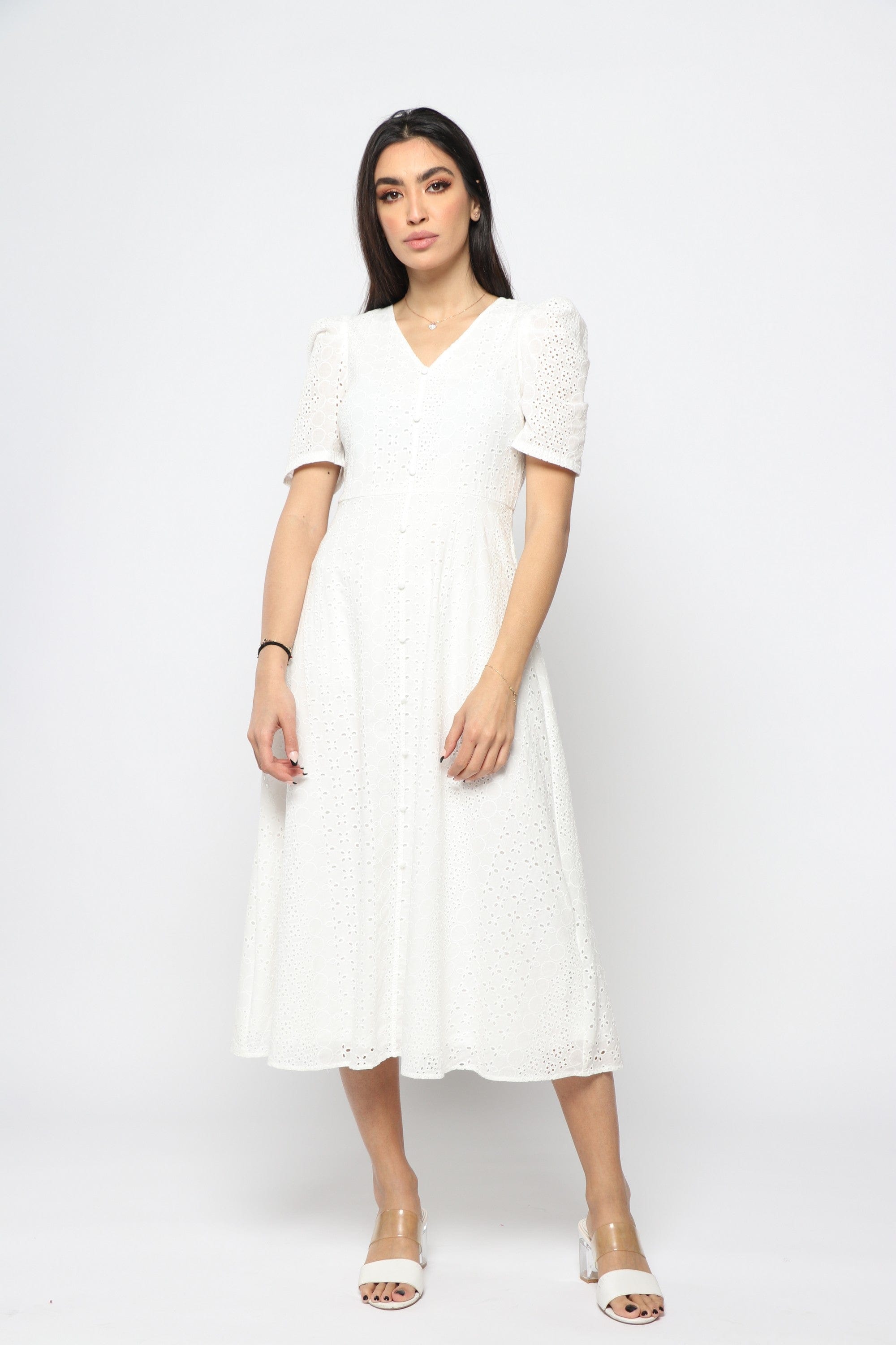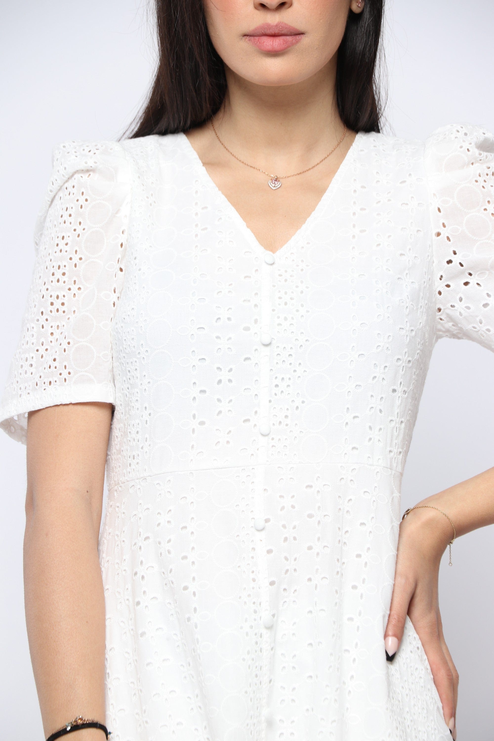 فستان ميدي بأكمام قصيرة من الدانتيل الشفاف