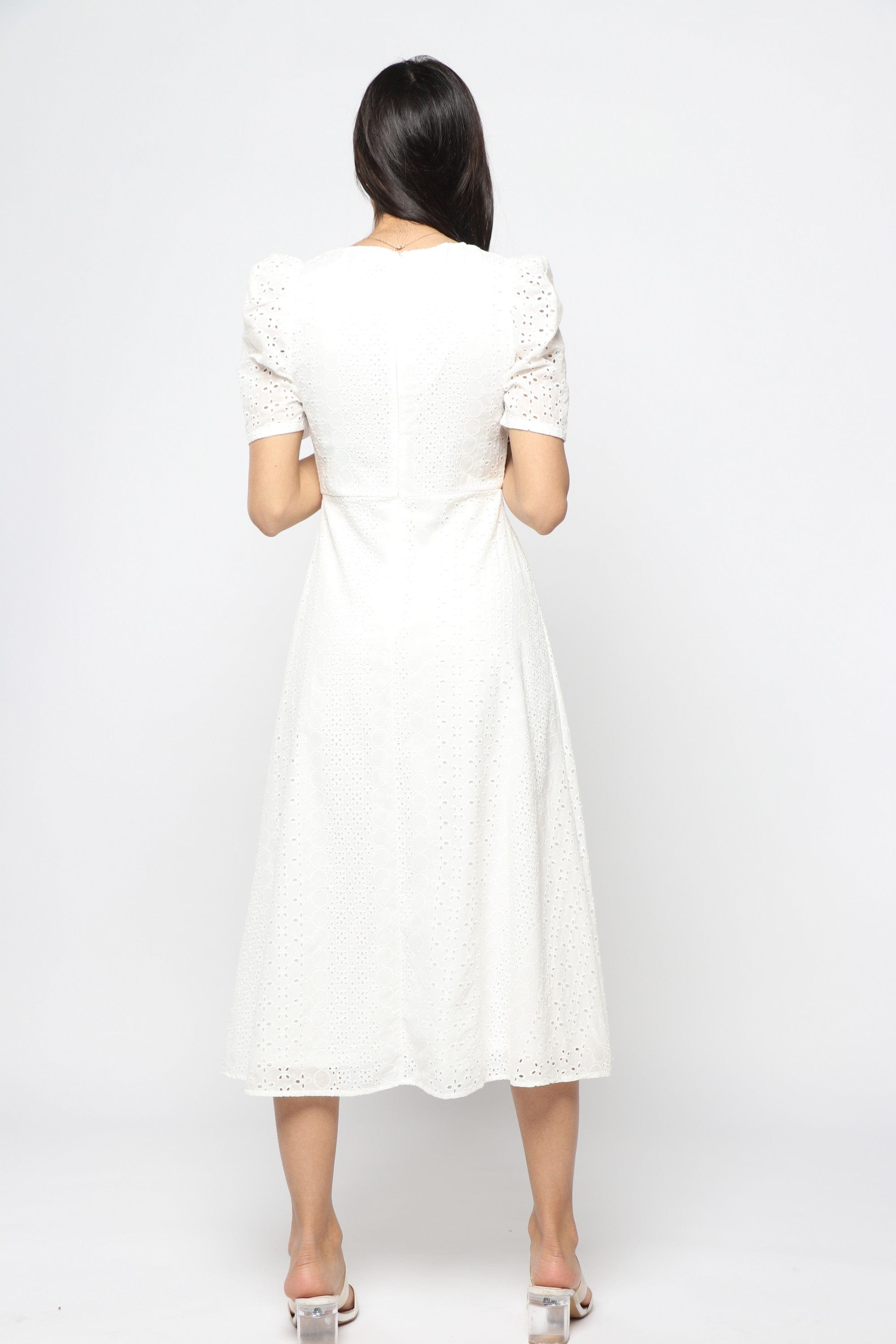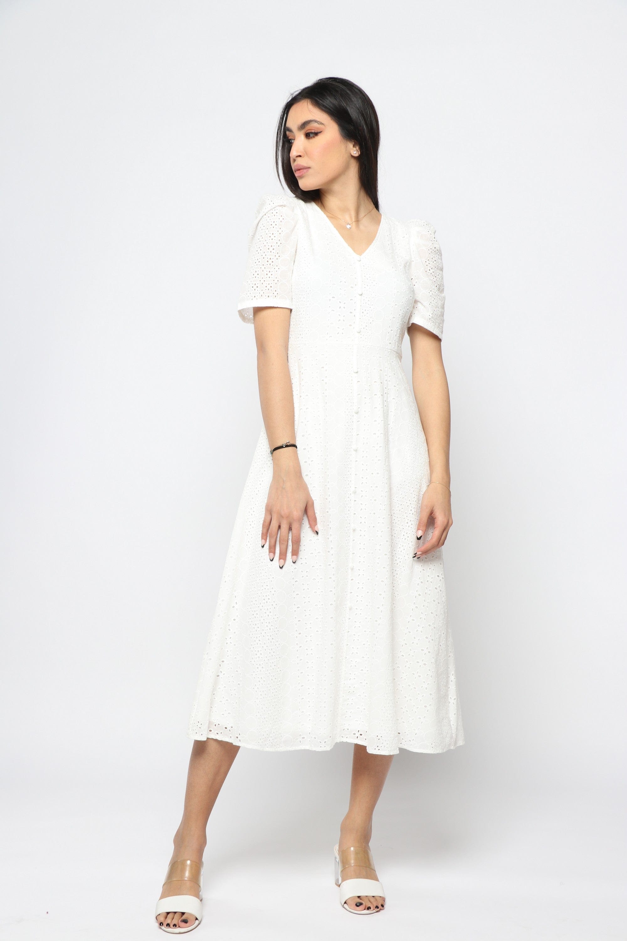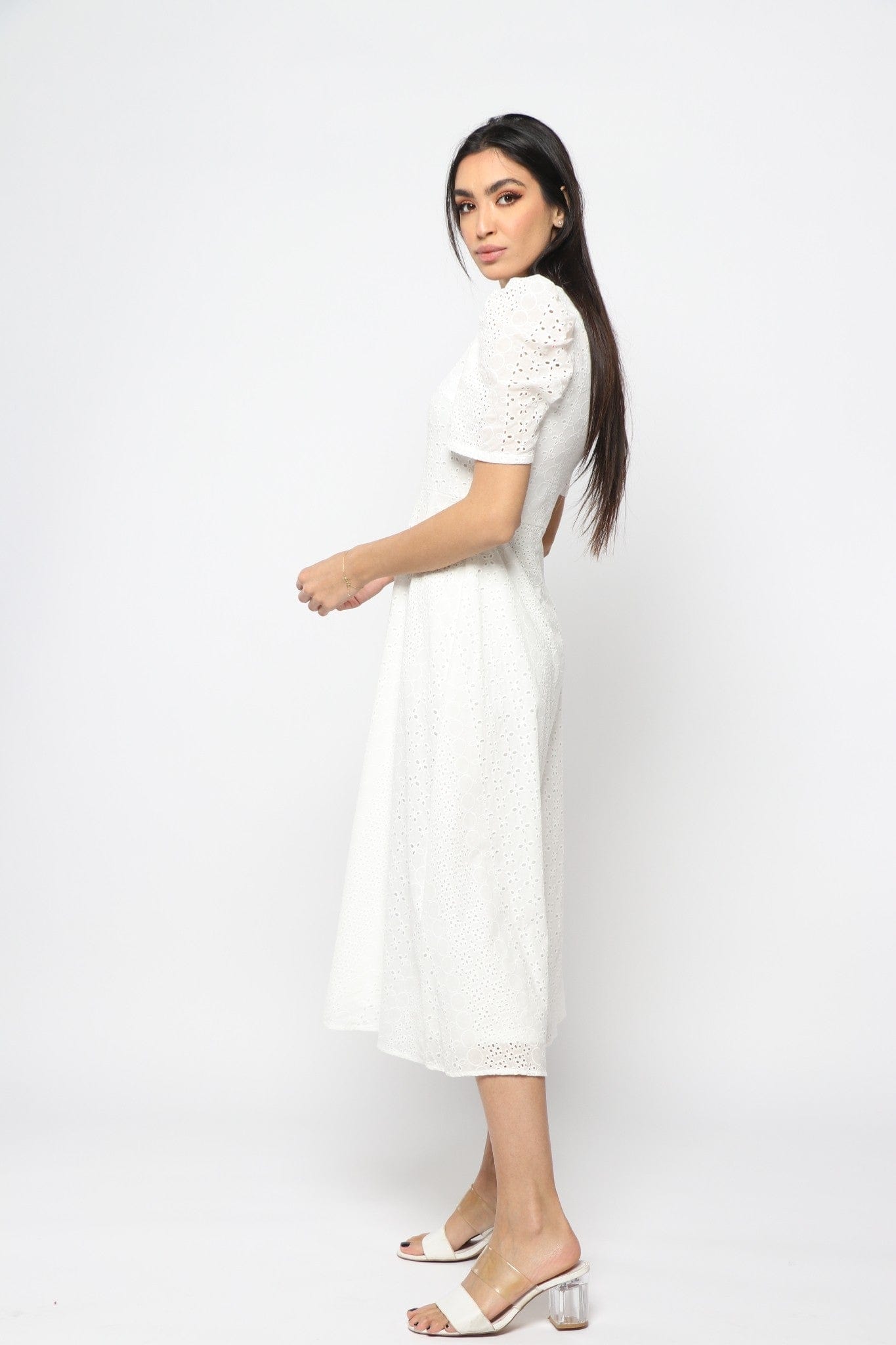 فستان ميدي بأكمام قصيرة من الدانتيل الشفاف