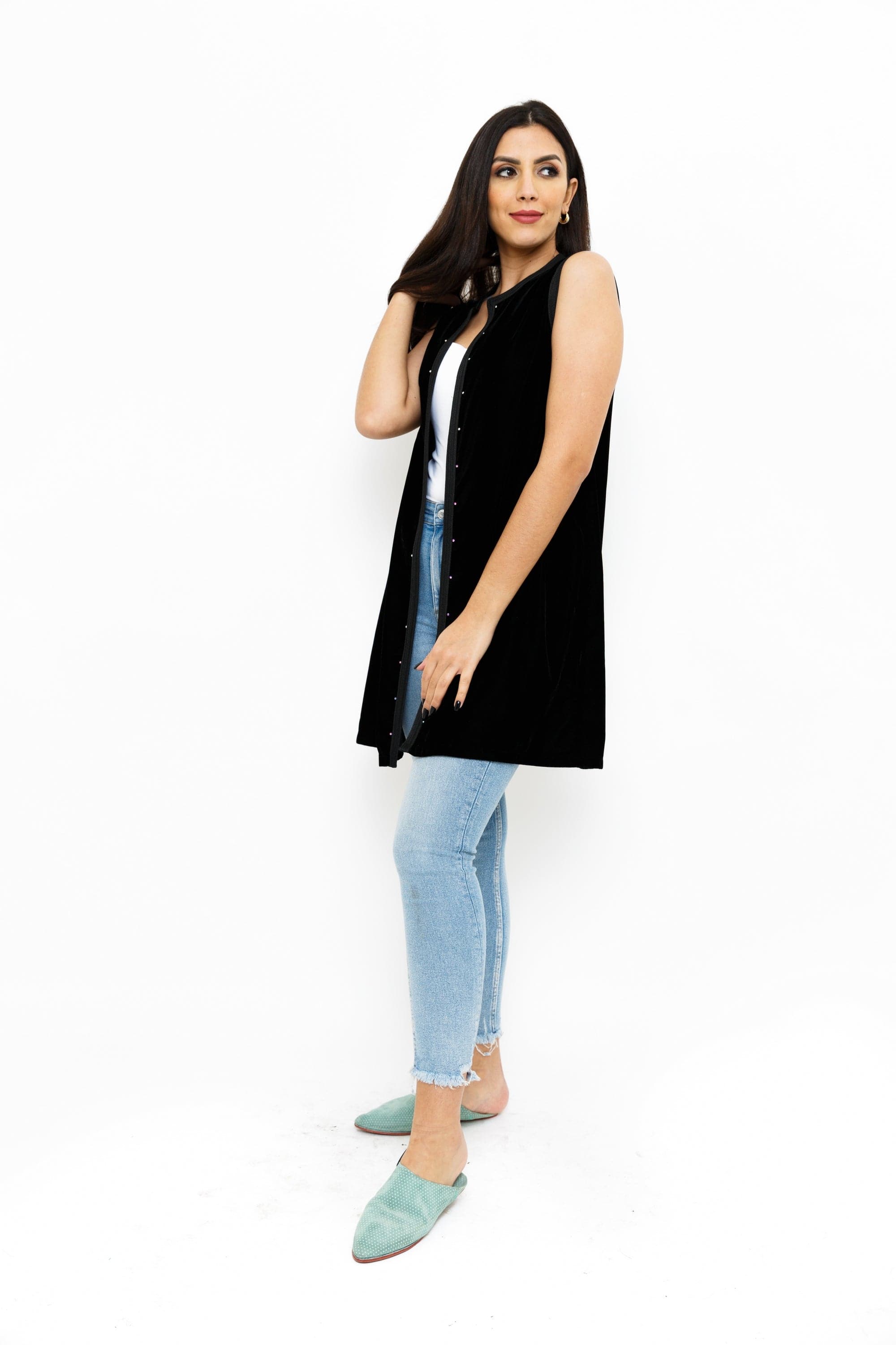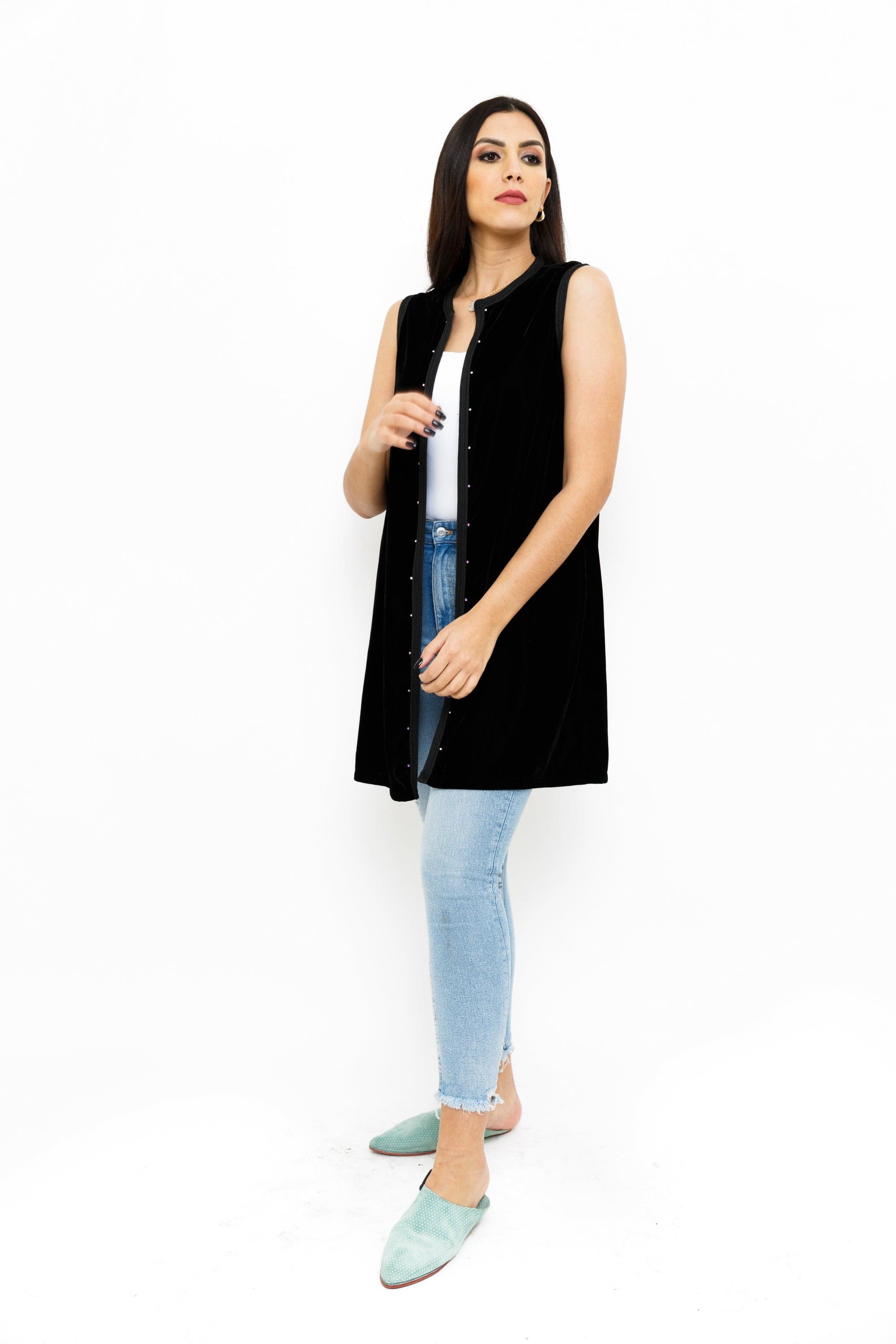 استعدي للتألق بفيست حريمي طويل من المخمل الناعم بلا أكمام من ديامانتين. تتوفر هذه القطعة الأنيقة بلون أسود ساحر، مما يضفي لمسة من الجاذبية على إطلالتك. صُممت هذه الفيست بأناقة فائقة وتفاصيلها الدقيقة تجعلها مثالية للمناسبات الرسمية والاحتفالات. تتميز بقصة طويلة توفر الأناقة والراحة في آن واحد، مما يجعلها الاختيار المثالي للحفلات والمناسبات الخاصة. يمكنك ارتداءها مع تنورة بيضاء أو بنطال جينز لإطلالة أنيقة ومتألقة. احصلي الآن على فيست حريمي طويل من المخمل الناعم بلا أكمام من ديامانتين واستعدي للتألق بأناقتك الفريدة. رقم المنتج: gl1wf3u