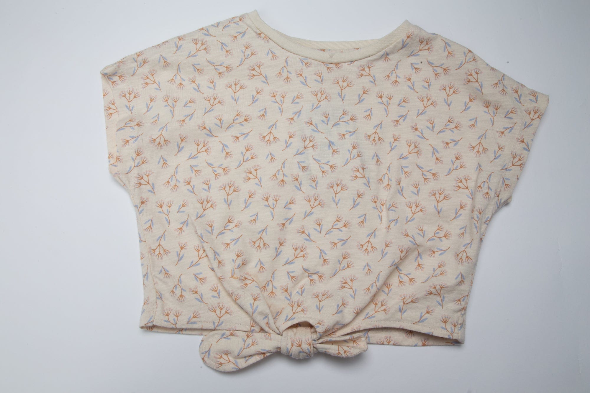 تي شيرت بنات قصير بربطة من الأسفل