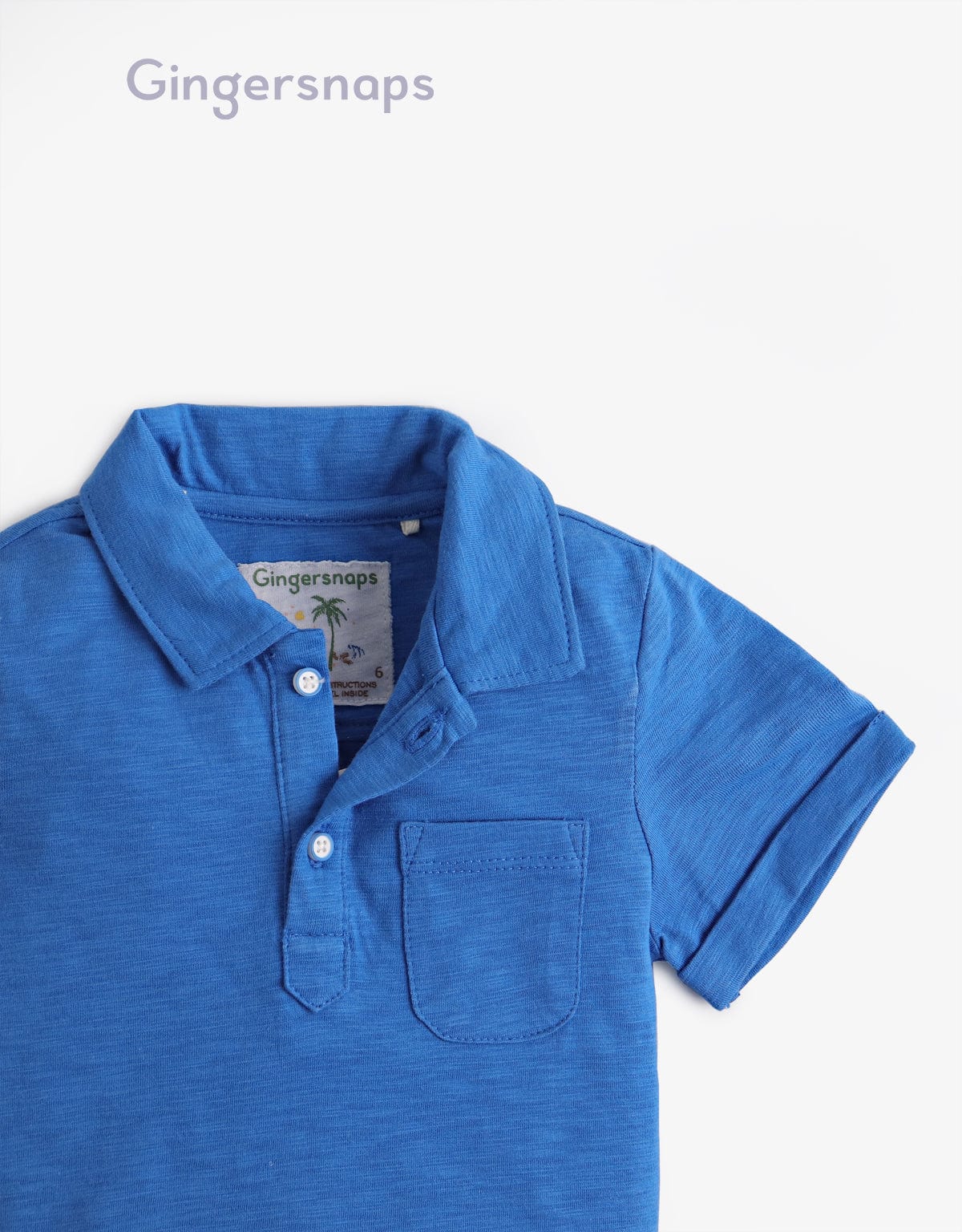 تيشيرت بولو أولادي نص كم مزين بجيب علي الصدر
