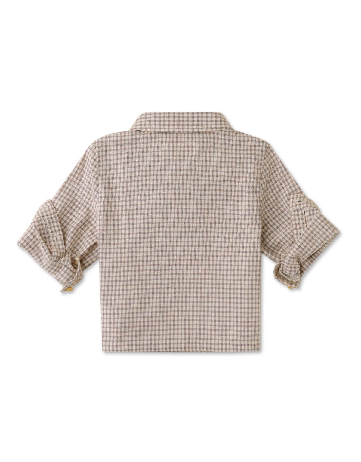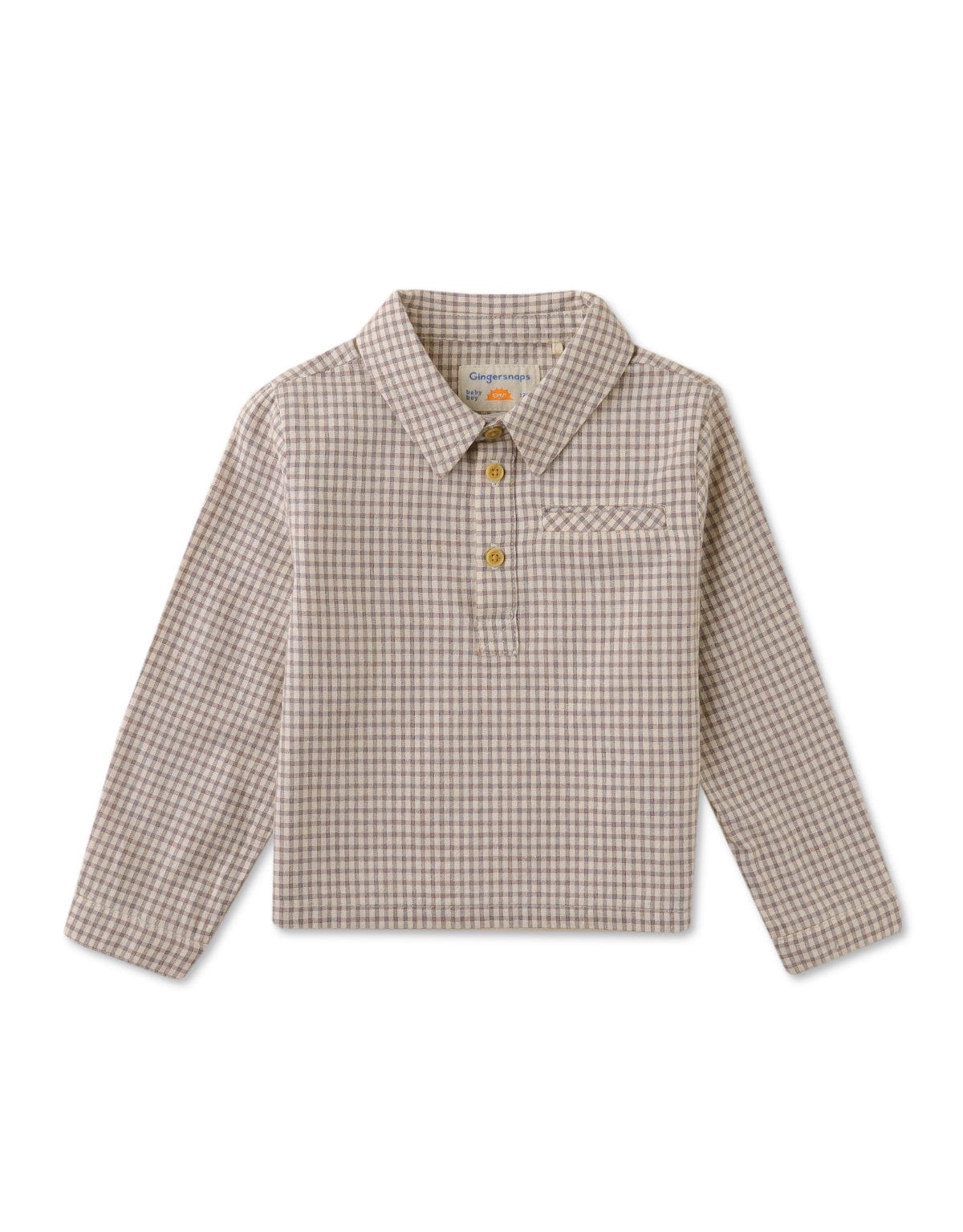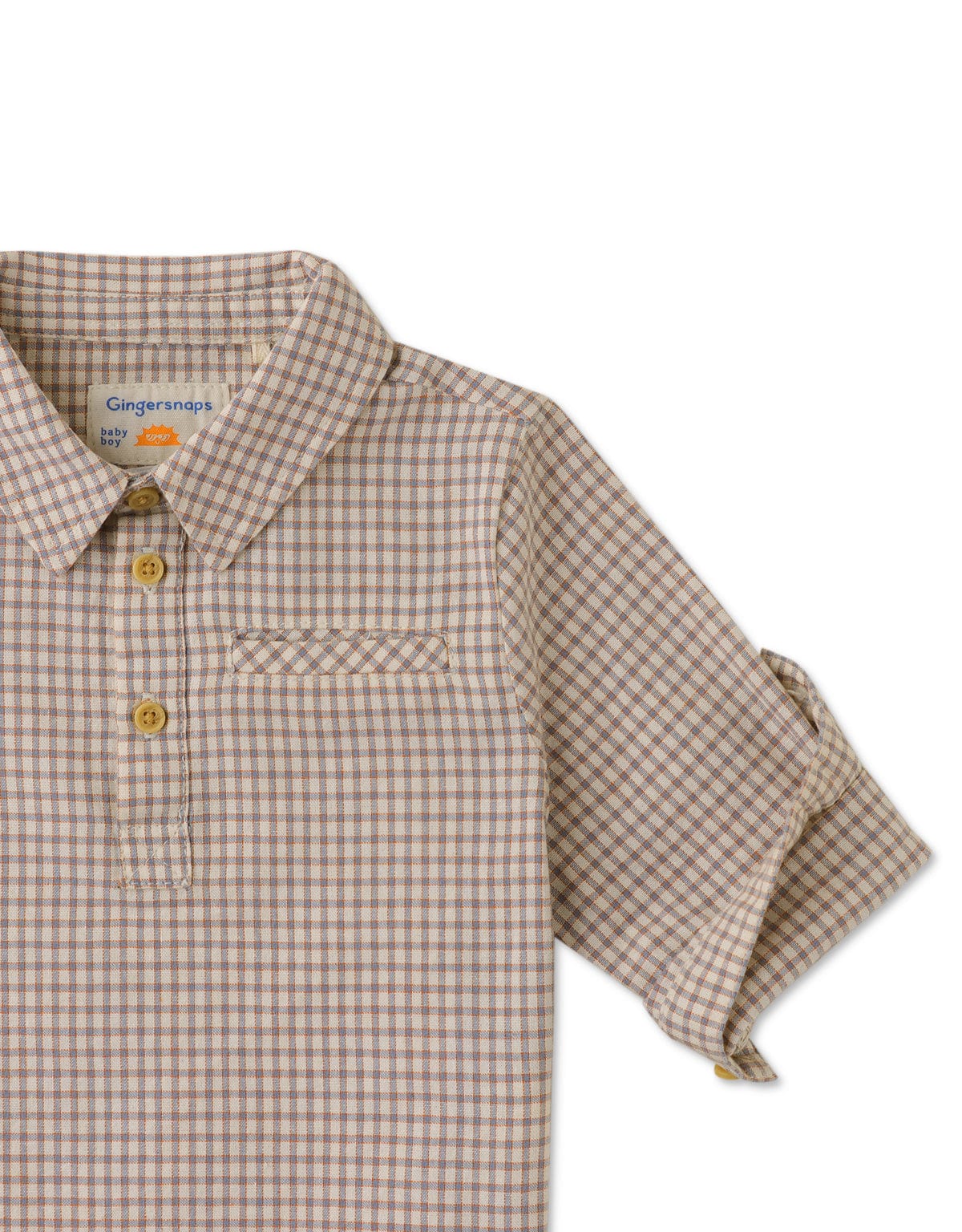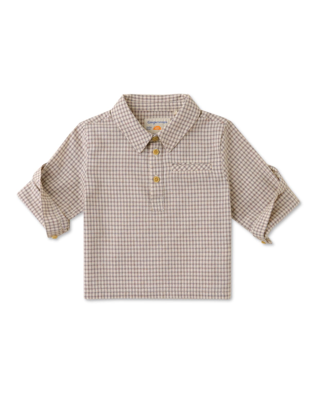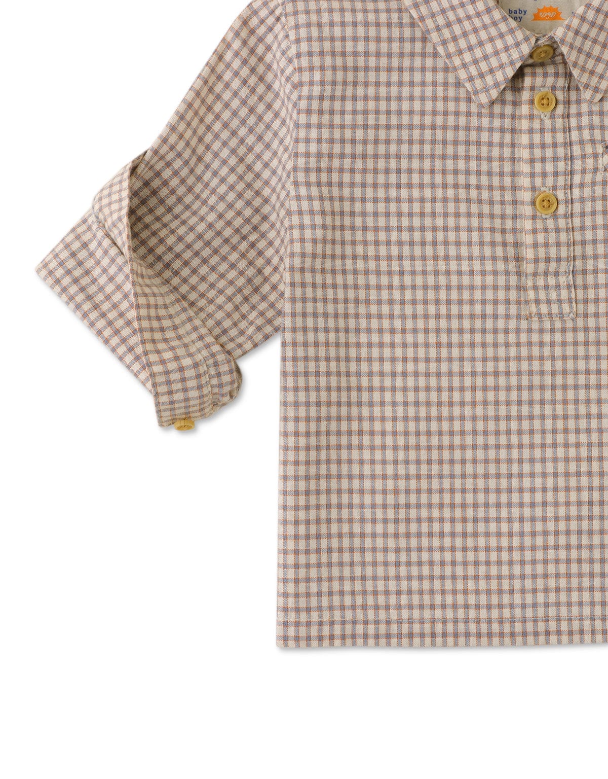 قميص بولو منسوج للأولاد حديثي الولادة مربعات بأزرار أمامية