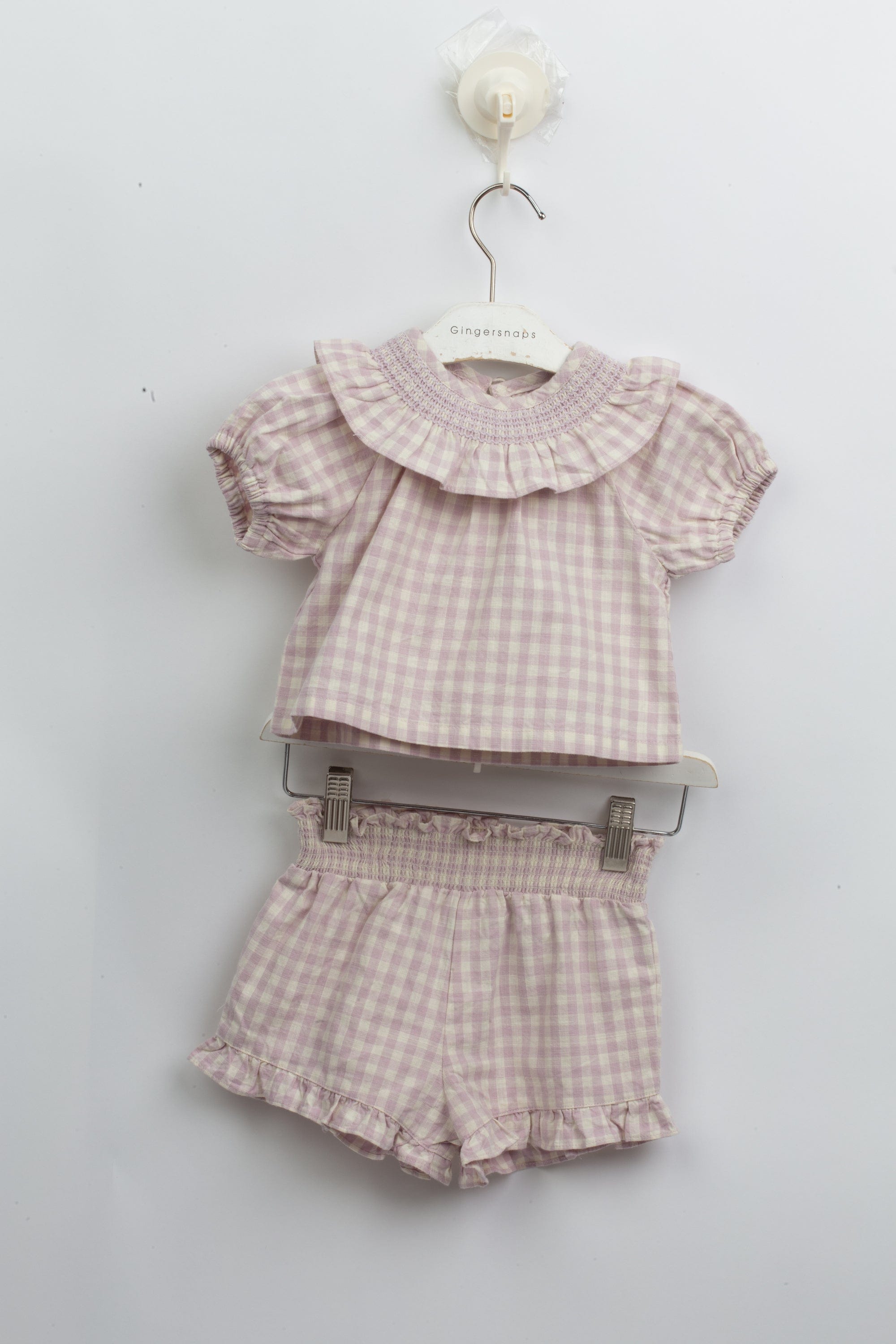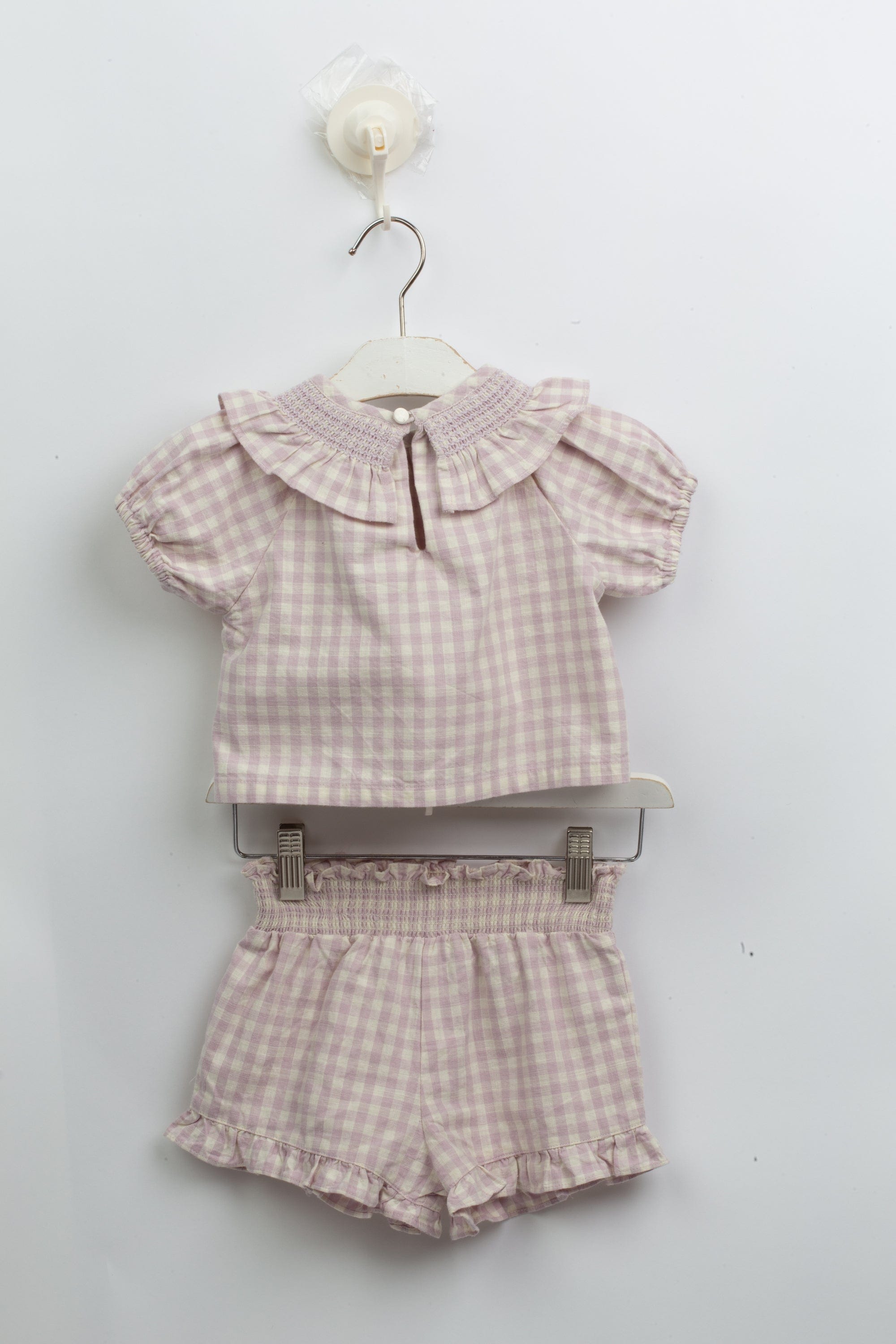 طقم بناتي شورت وبلوزة بنمط مربعات للرضع