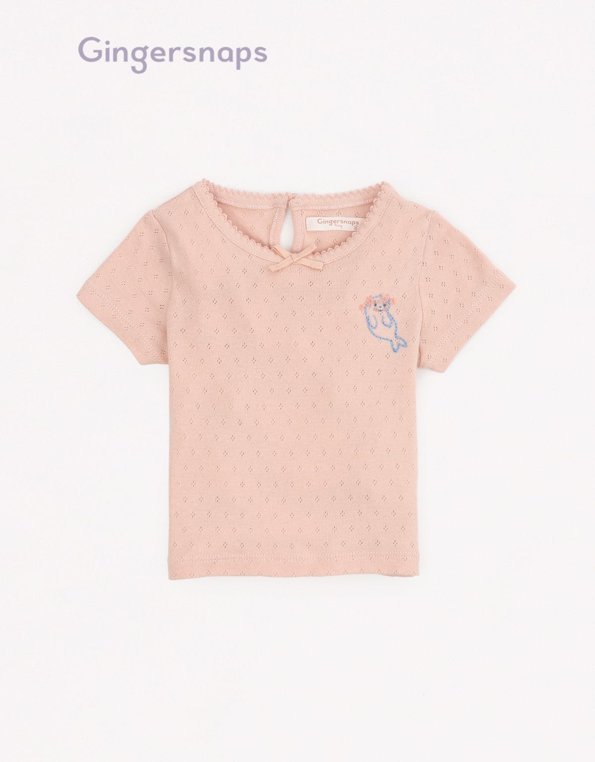 تي شيرت بيبي بنات منسوج بتطريز سمكة على الصدر