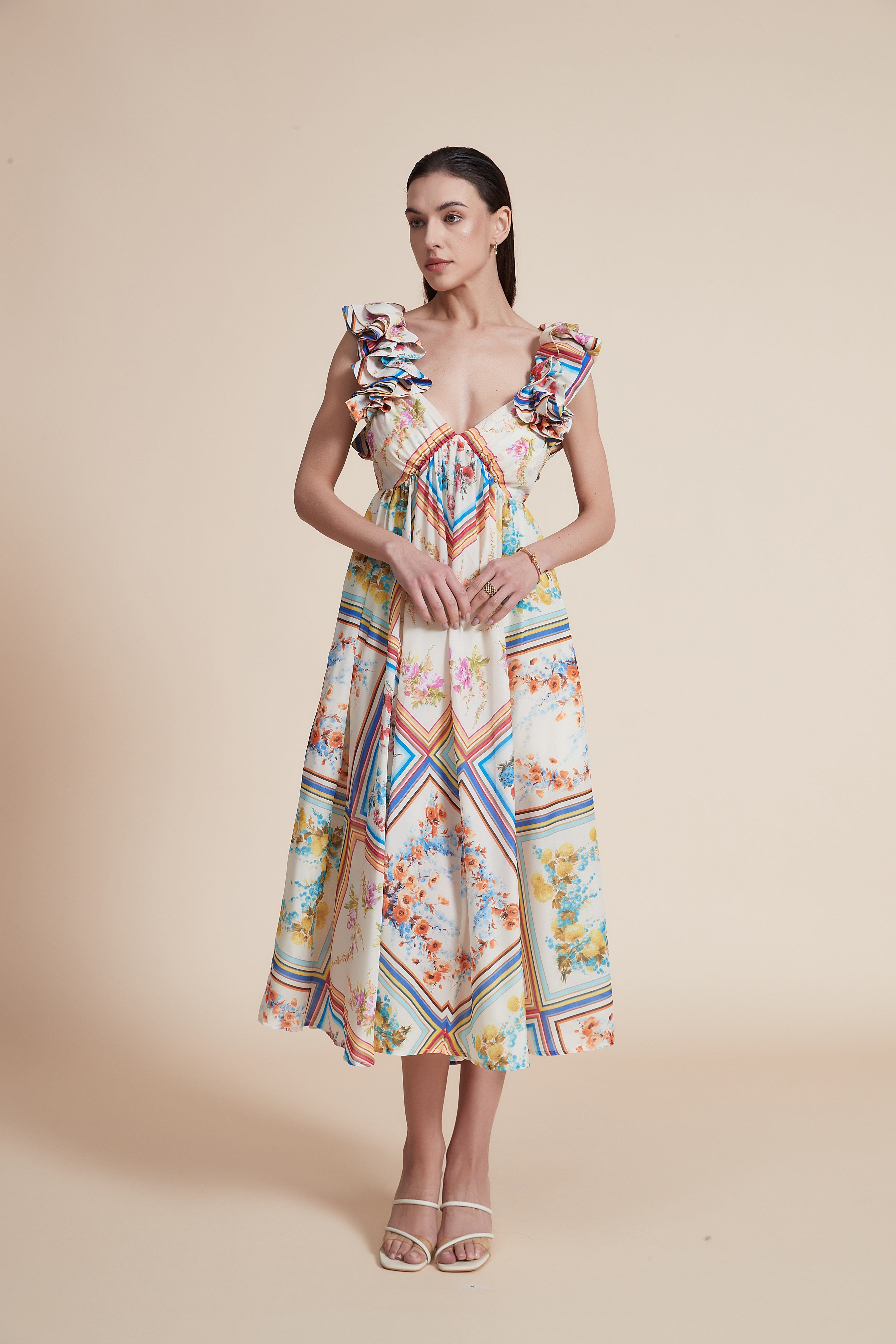 قد تودين فستانًا يوازن بين الأنوثة والراحة لصيف مشمس — هذا الفستان رائع لذلك. الخامة 100% بوليستر تمنحه خفة ومتوسط سماكة، يتحمّل الحركة ويجف بسرعة بعد الغسيل، وستحبين كيف يتحرك معك عند المشي. القصة A تضفي شكلًا نسقًا يبرز الخصر وتنورة ميدي تمنح توازنًا بين الاحتشام والراحة. ياقة V بلا أكمام تبرز الرقبة بشكل أنثوي، ونقشة الزهور متعددة الألوان تضفي حيوية للصورة العامة. الفستان مكشكش عند بعض التفاصيل لإضافة لمسة رقيقة، ويُغلق باستخدام حزام (الحزام غير مرفق)، بدون جيوب وبدون بطانة مما يجعله مناسبًا للأيام الحارة. مثالي للخروجات الرومانسية والنزهات الكاجوال ولخزانة صيفية مرنة. اعثري على مقاسك في فاشن السعودية وأضيفي هذه القطعة المتنوعة إلى خزانة ملابسك اليوم.