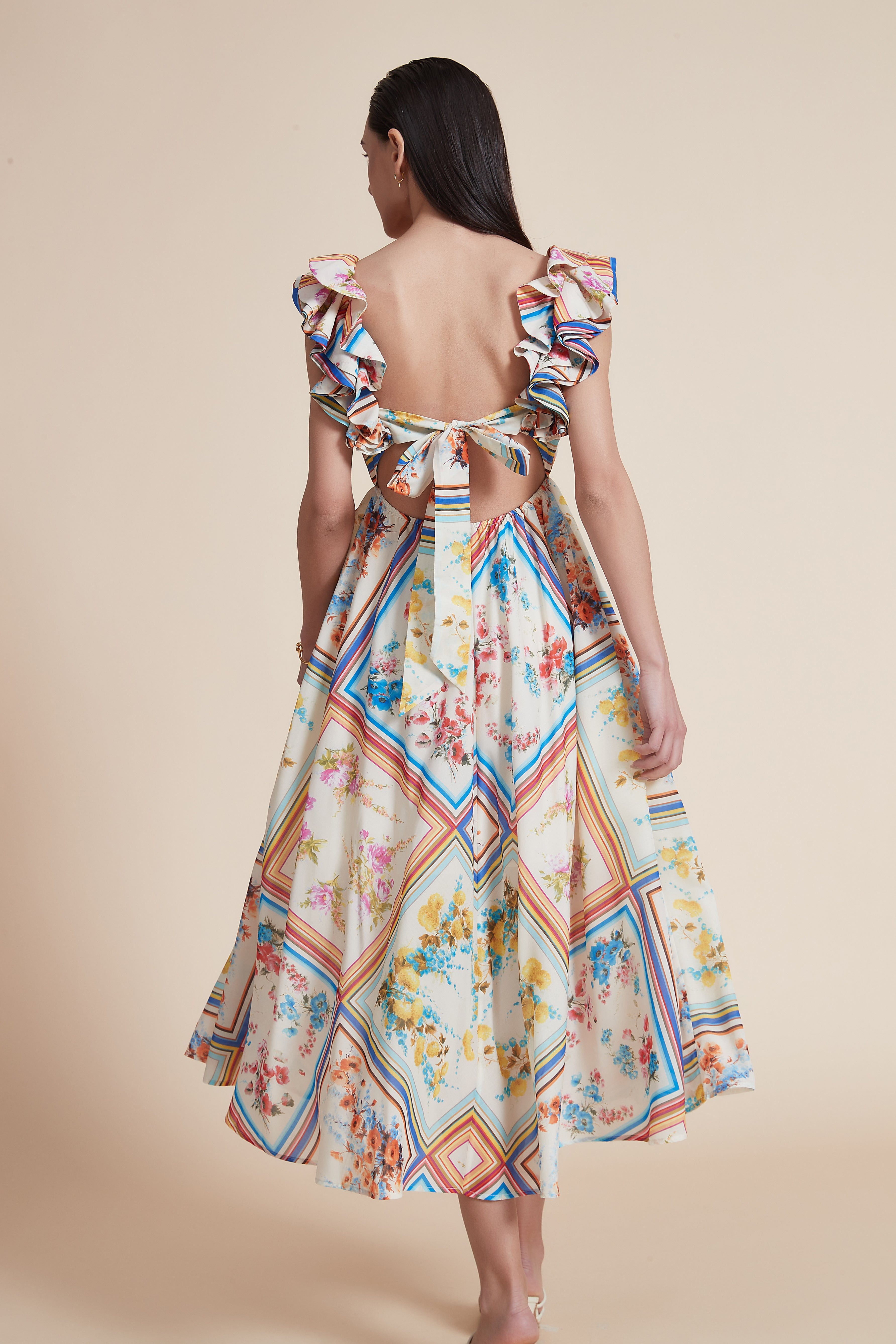 - التنسيق: نسقيه مع صنادل مسطحة وقبعة قش للنهار، ومع كعب متوسط وحقيبة صغيرة للمساء. أضيفي حزامًا جلديًا لإبراز الخصر (الحزام غير مرفق) وقلادة بسيطة لخروجات رومانسية أو نزهات كاجوال صيفية.
