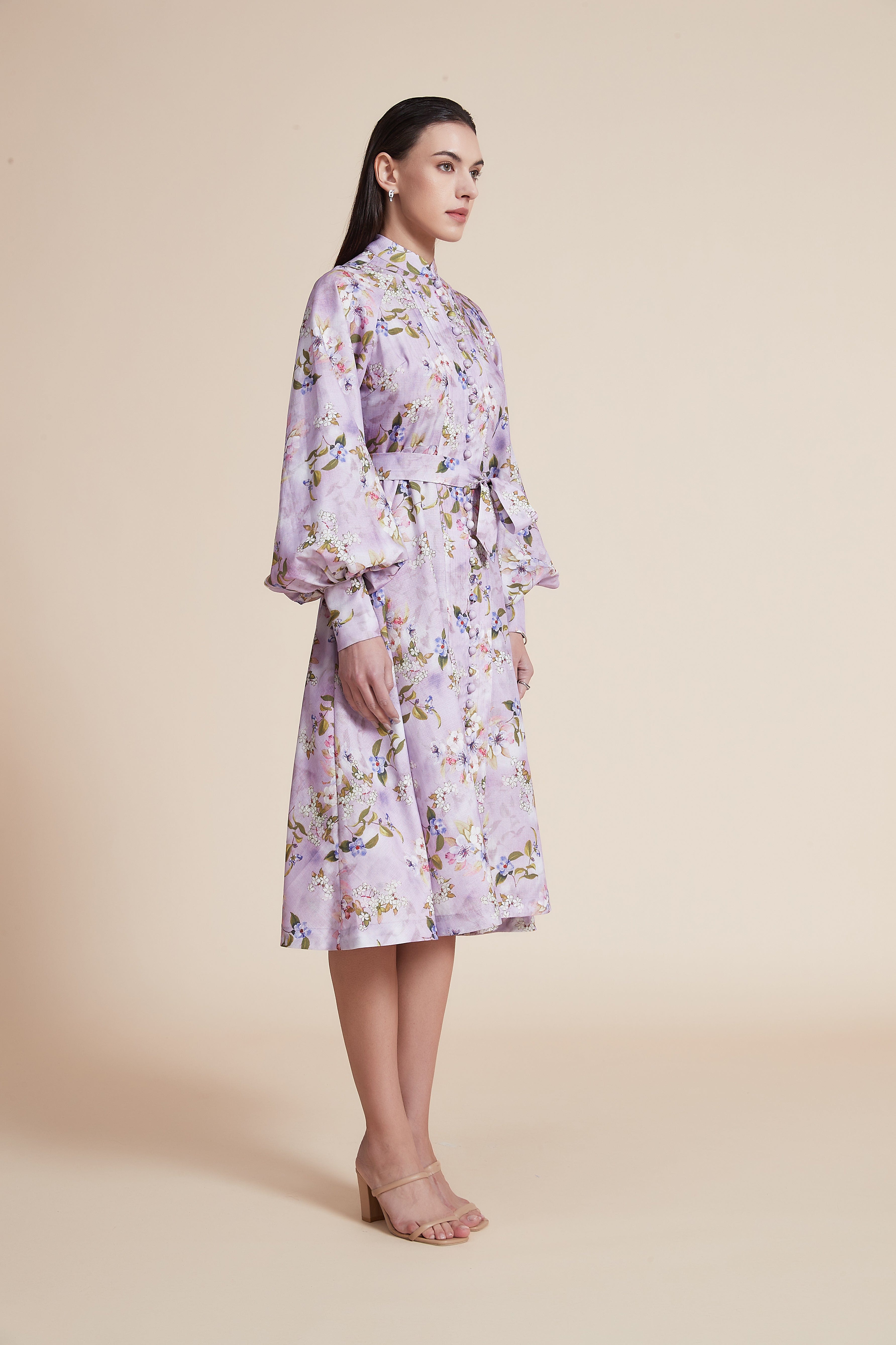 هل تبحثين عن فستان يضيف لمسة ناعمة لخزانتك؟ هذا الفستان رائع للنهار والمناسبات الكاجوال. مصنوع من 100% بوليستر، الخامة متينة وسهلة العناية وتحافظ على نقش الزهور، بسماكة متوسطة تمنحه دفء خفيف للربيع والخريف. تصميمه بقصة A مريح يبرز الخصر دون التقييد، وطوله ميدي يمنح توازنًا أنثويًا بين الطول والعملية. ياقة صينية أنيقة تُضفي لمسة شرقية، والأكمام المنفوخة الطويلة تضيف حركة ورومانسية لكل خطوة. الإغلاق بزر مع حزام مرفق لتركيز الخصر وشكل أكثر تنظيمًا. بدون بطانة وبدون جيوب، الفستان خفيف على الجسم ويُظهر النقش الليلكي بوضوح. مثالي للخروجات الرومانسية، القهوة مع الصديقات، أو للمشاوير اليومية؛ ستحبين كيف يتحرك معك ويعطي طلة أنثوية طبيعية. اعثري على مقاسك في فاشن السعودية وأضيفي هذه القطعة المتنوعة إلى خزانة ملابسك اليوم.