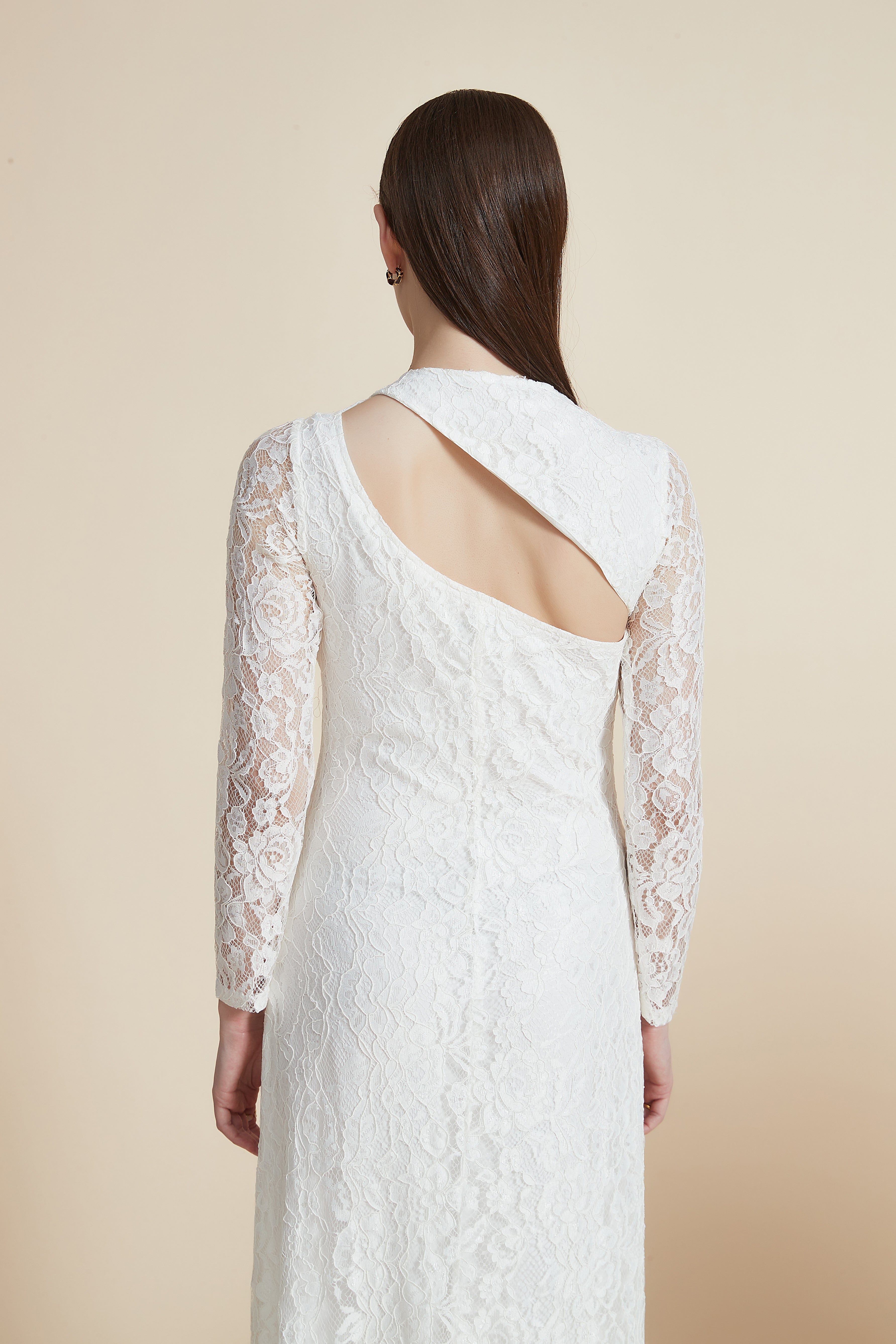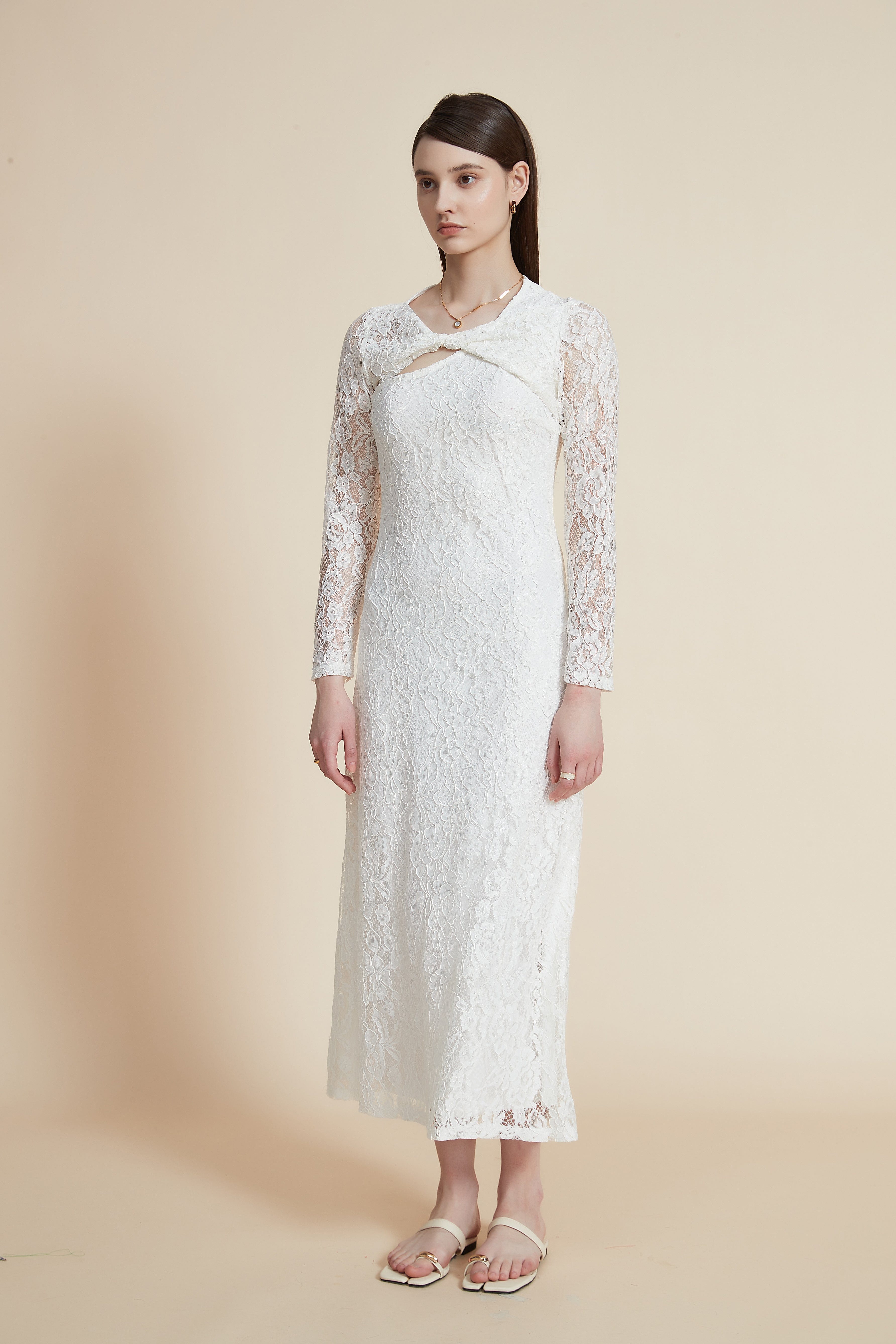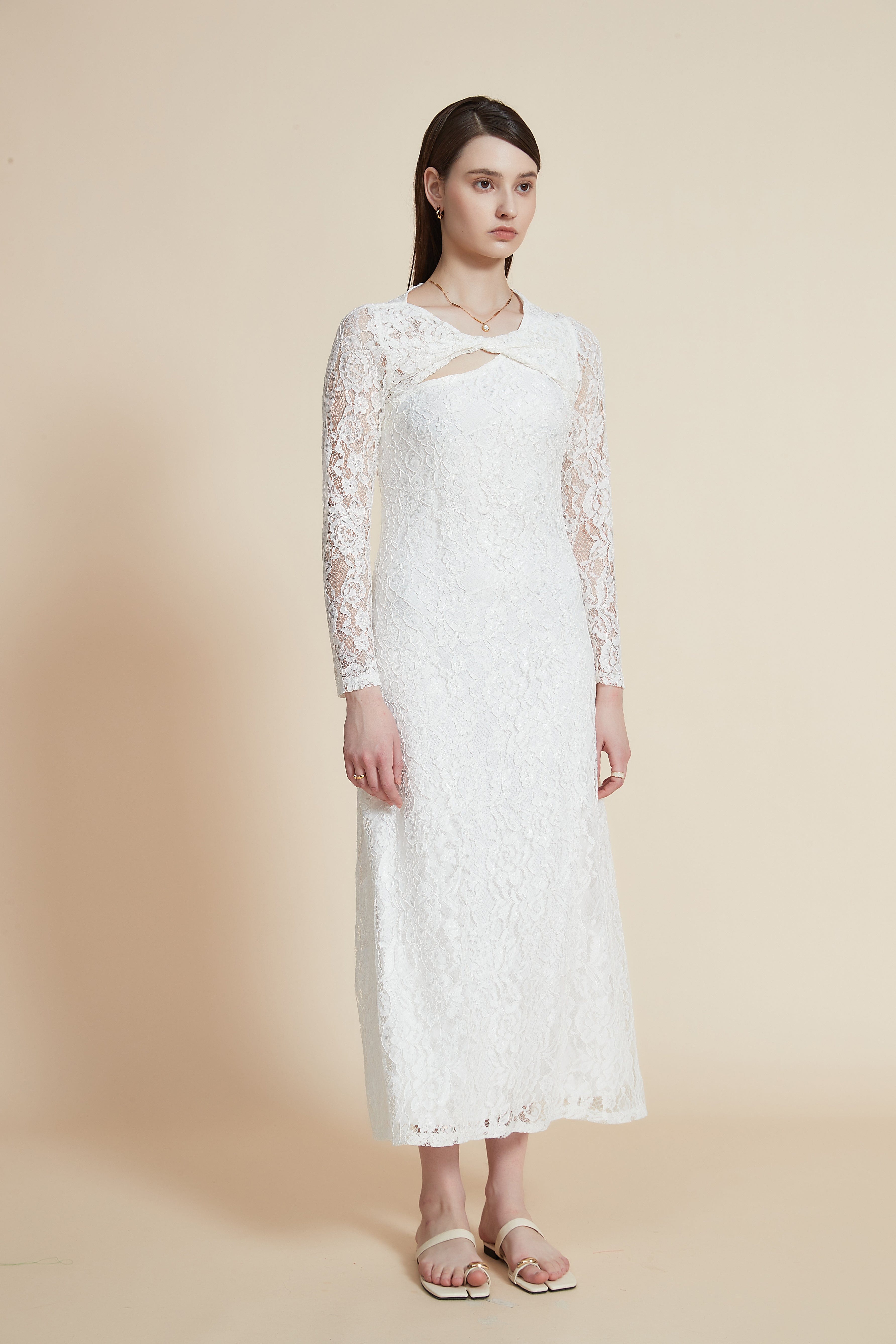 فستان ميدي بكم طويل مع تفاصيل دانتيل