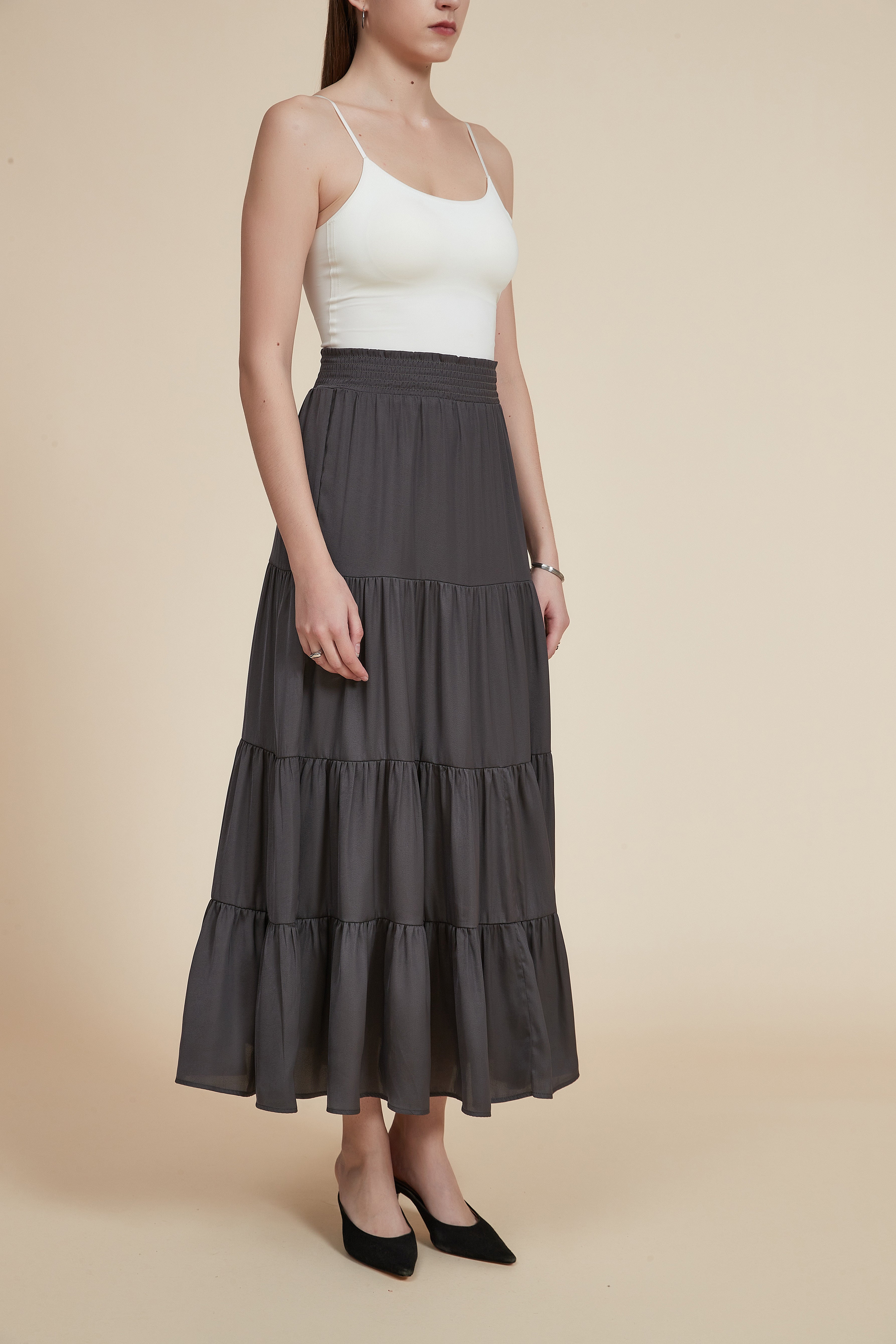 تنورة طويلة مكشكشة سادة