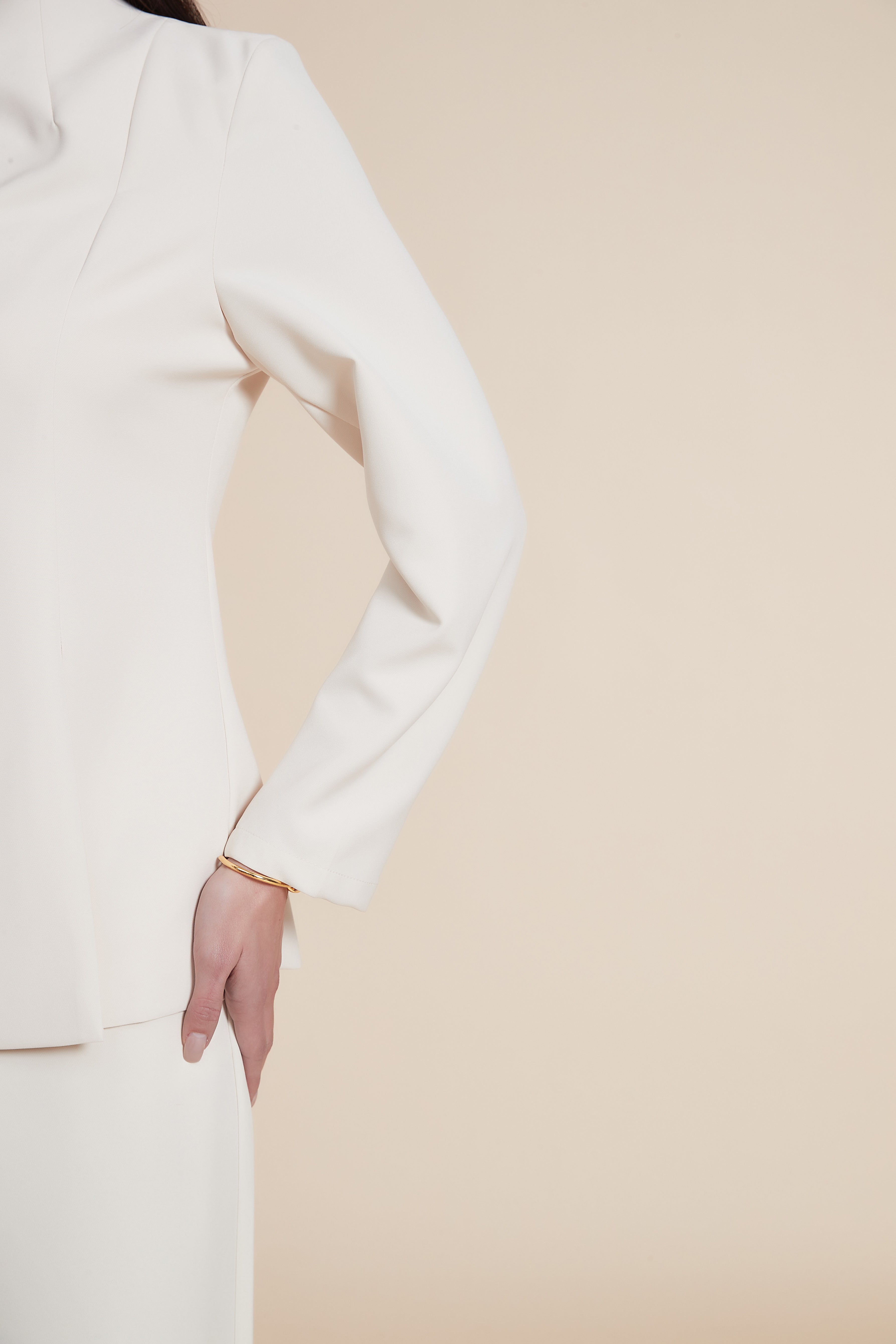 بلوزة نسائية سادة بكم طويل وياقة مرتفعة