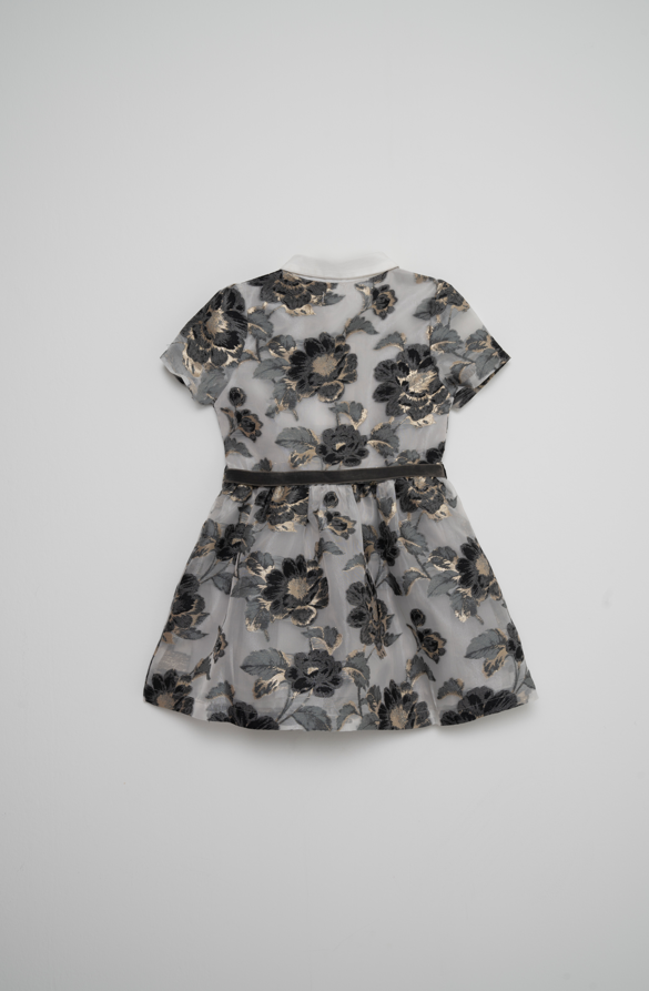 فستان بناتي كم قصير بتطريز ورود وياقة قميص