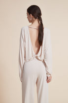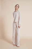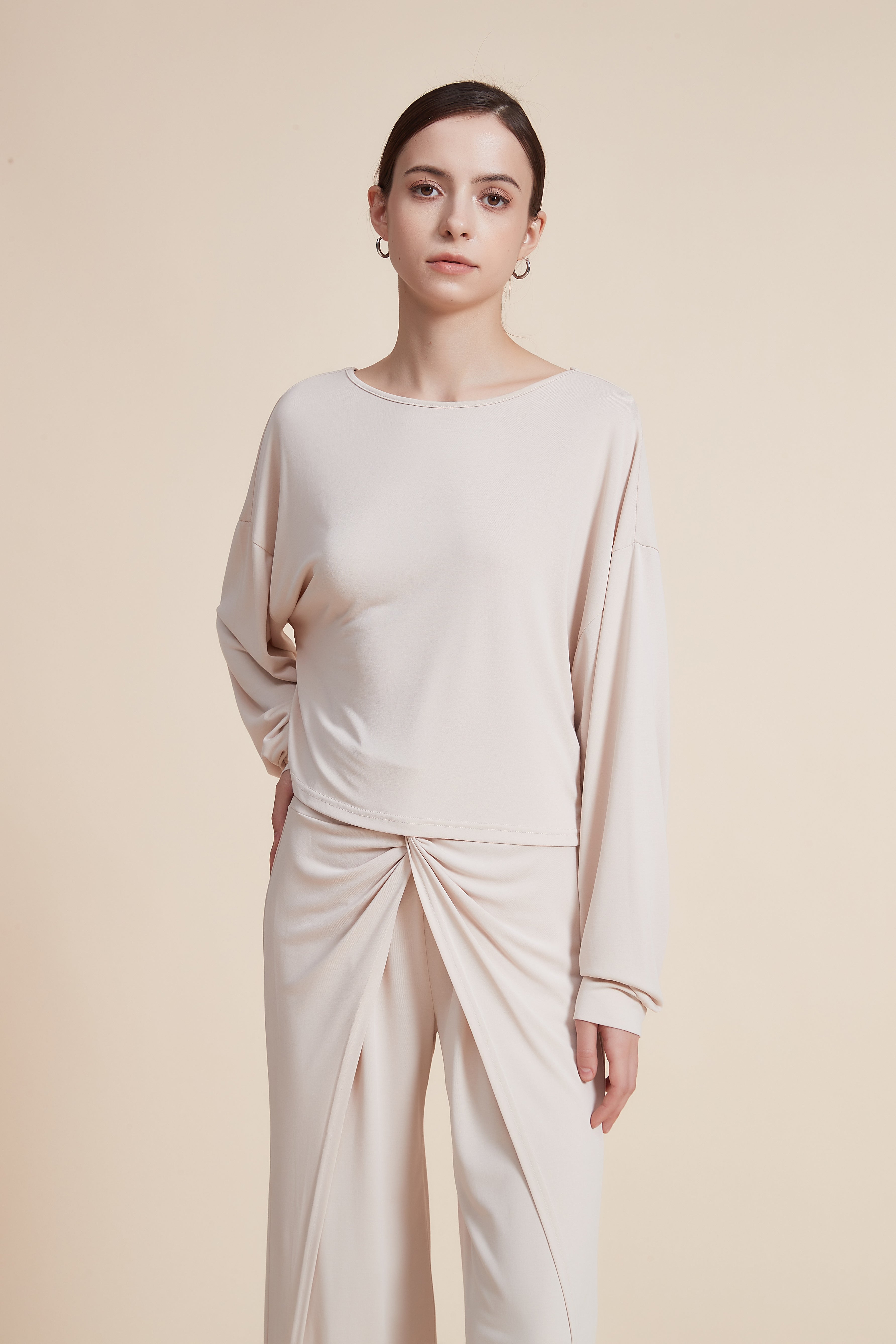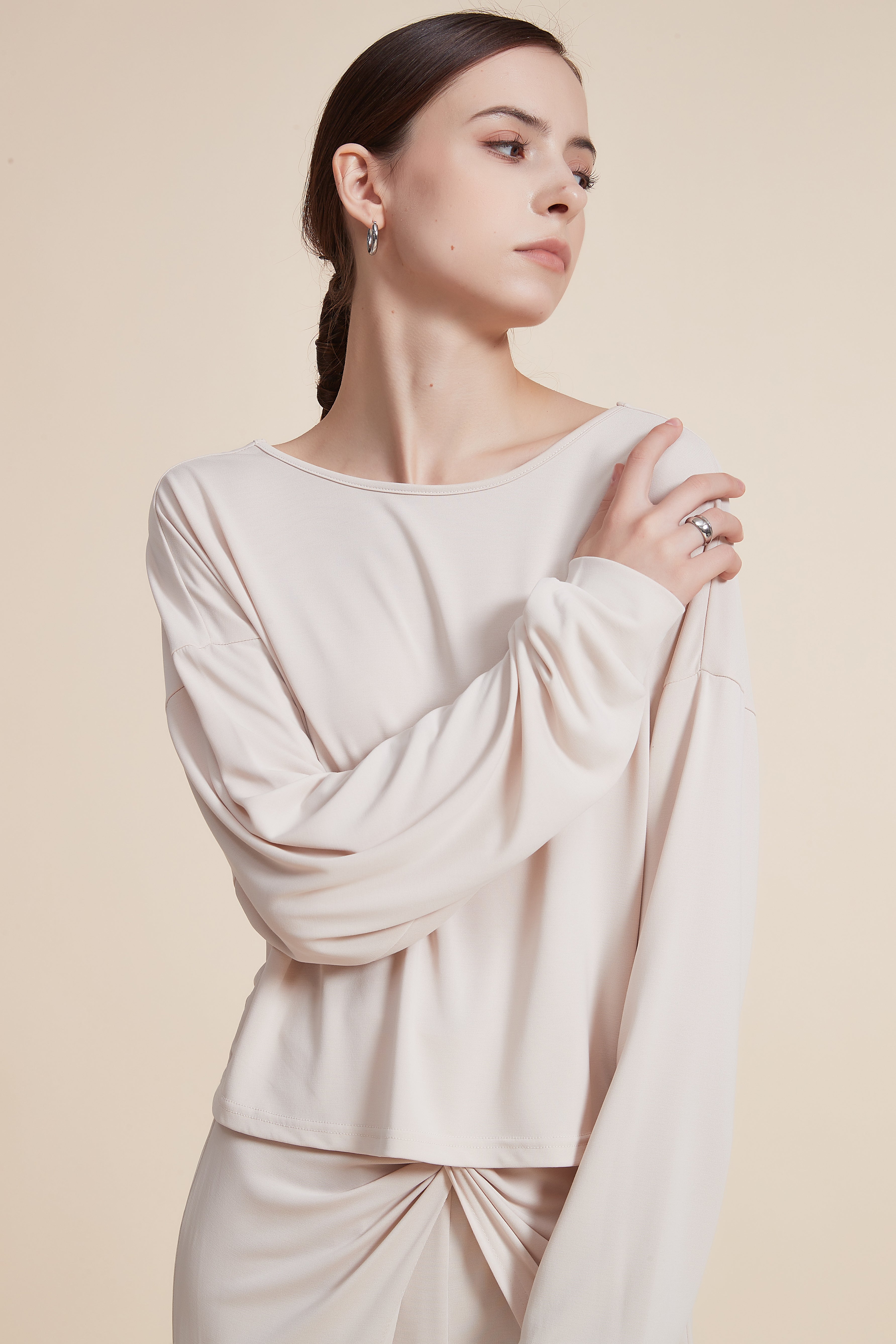 بلوزة سادة بفتحة رقبة دائرية واسعة
