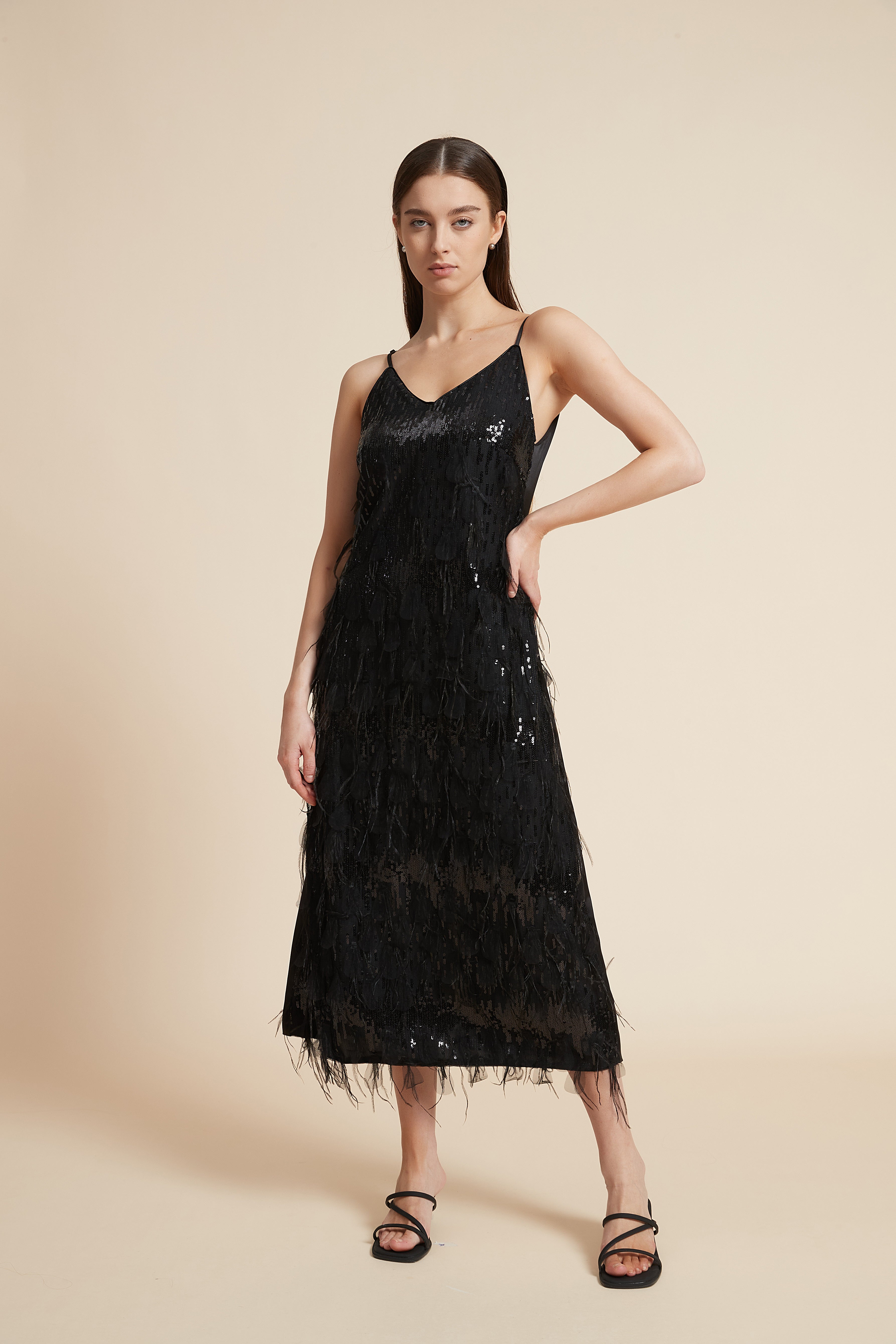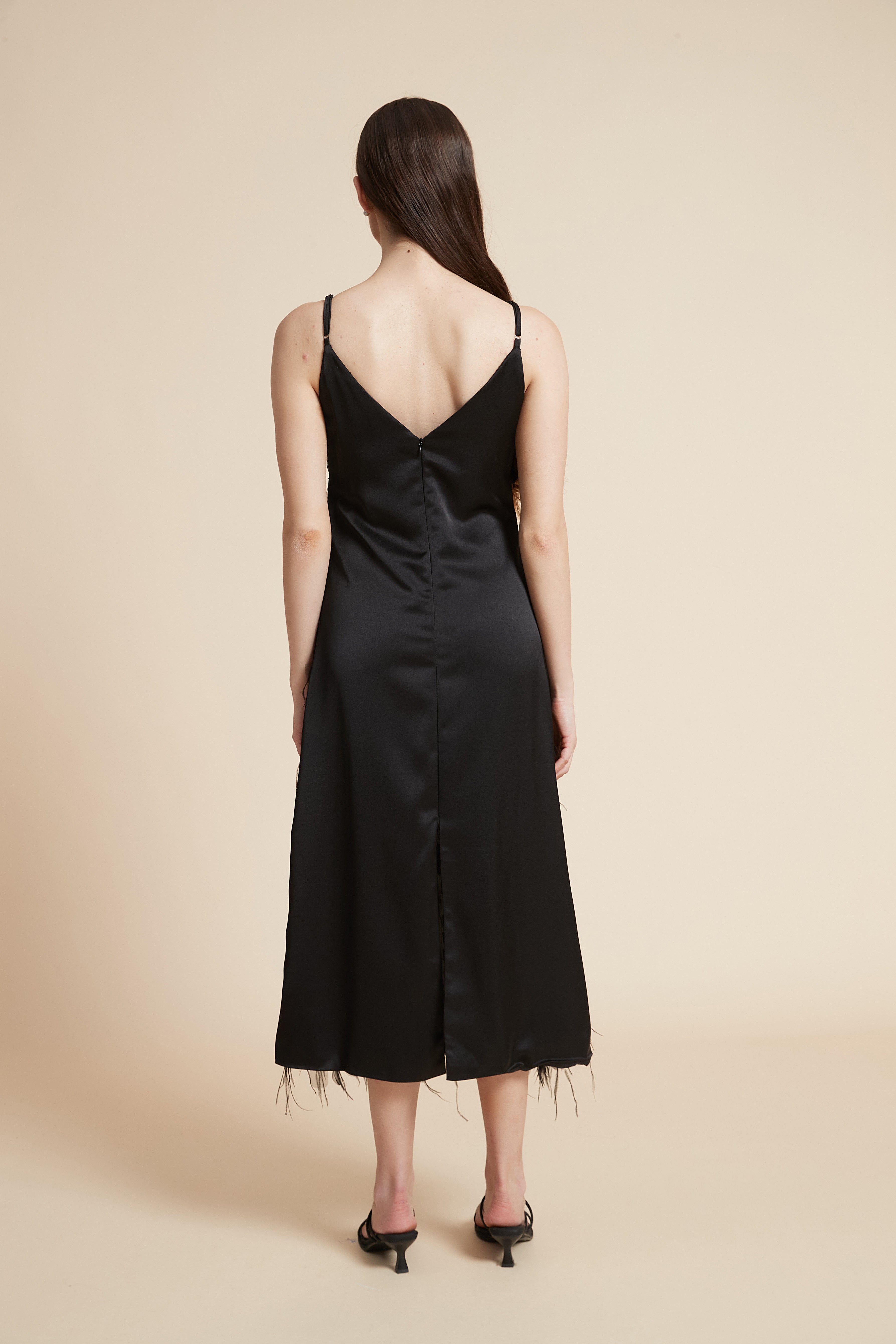 فستان ميدي حمالات سادة بفتحة رقبة على شكل V