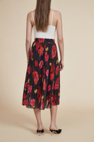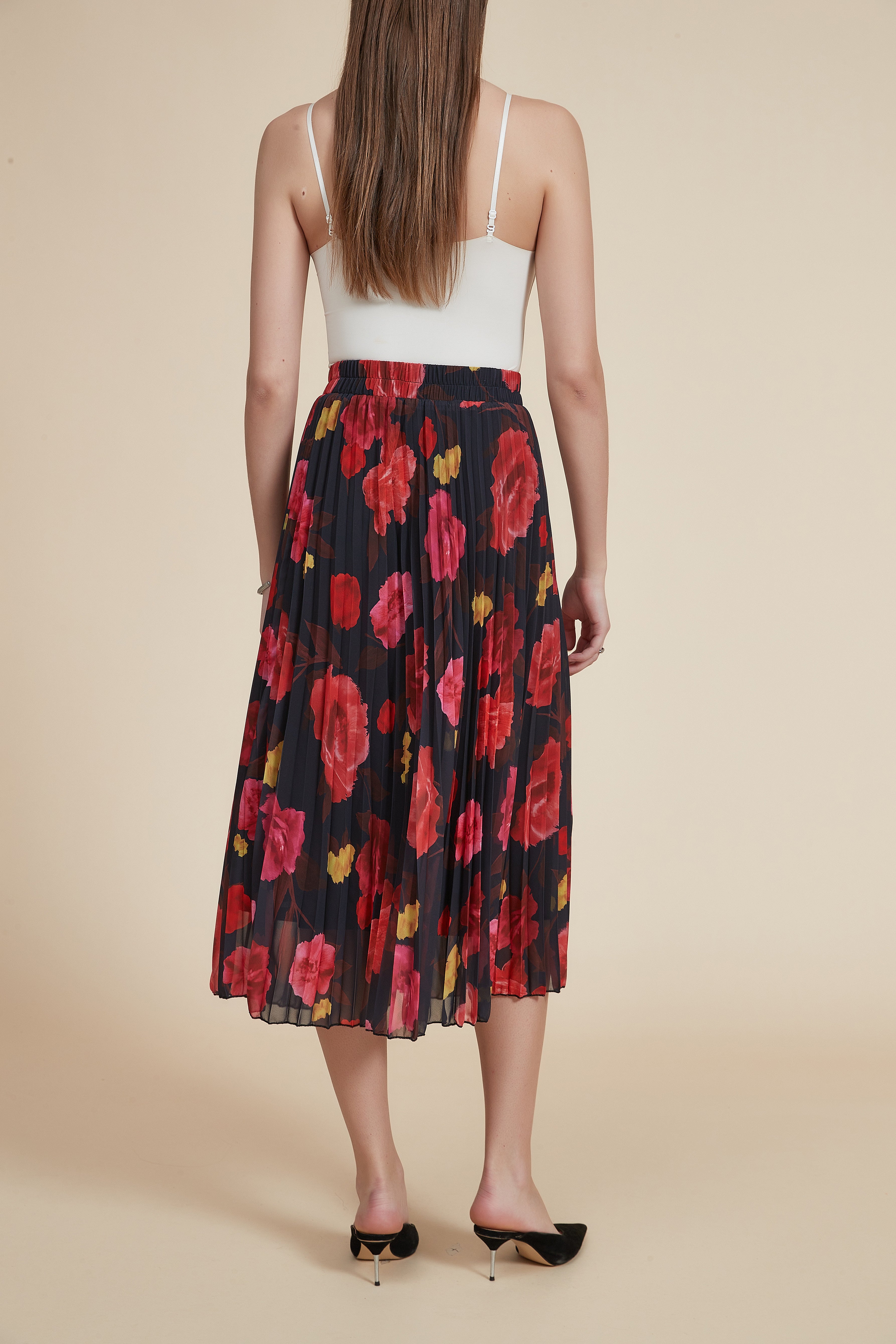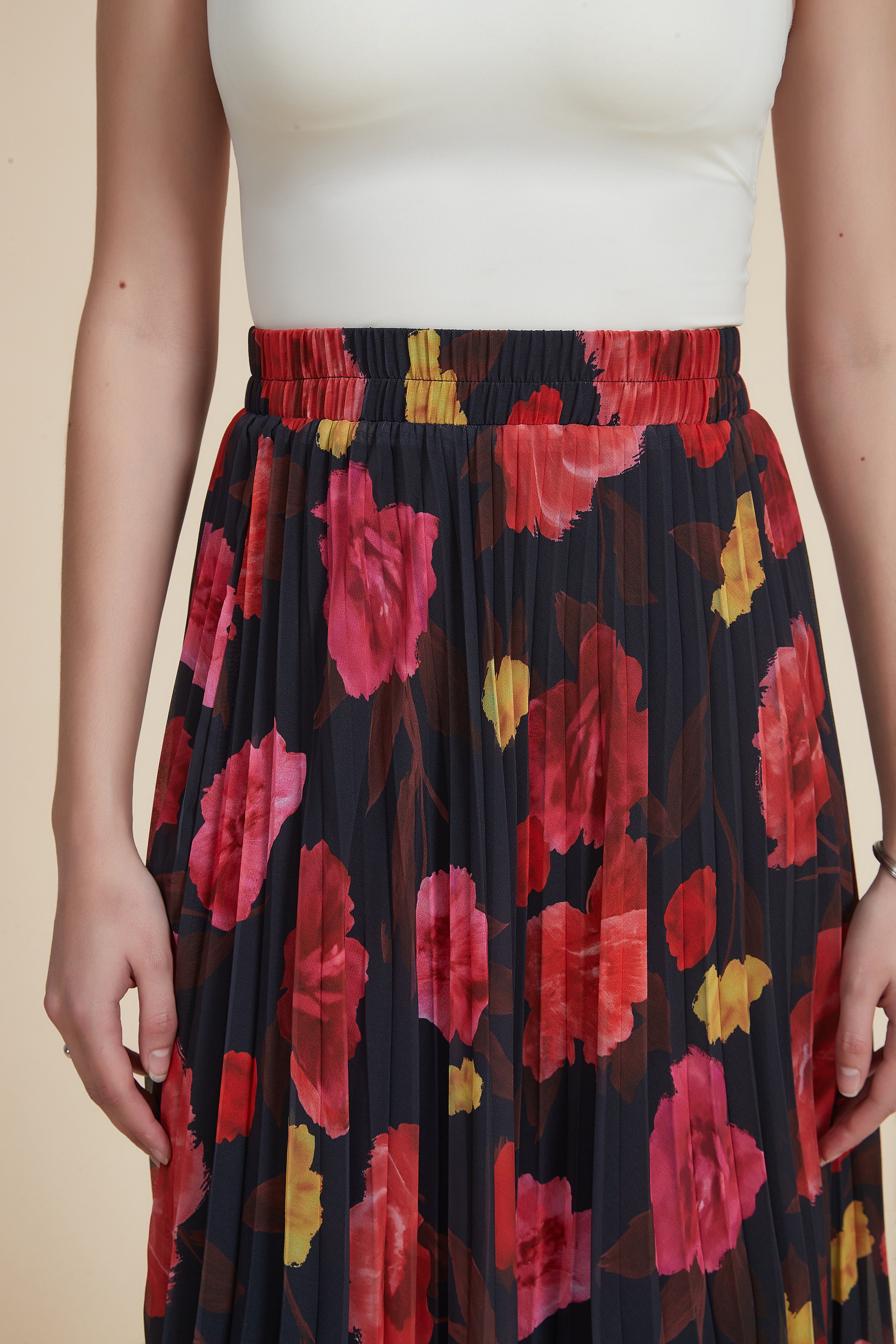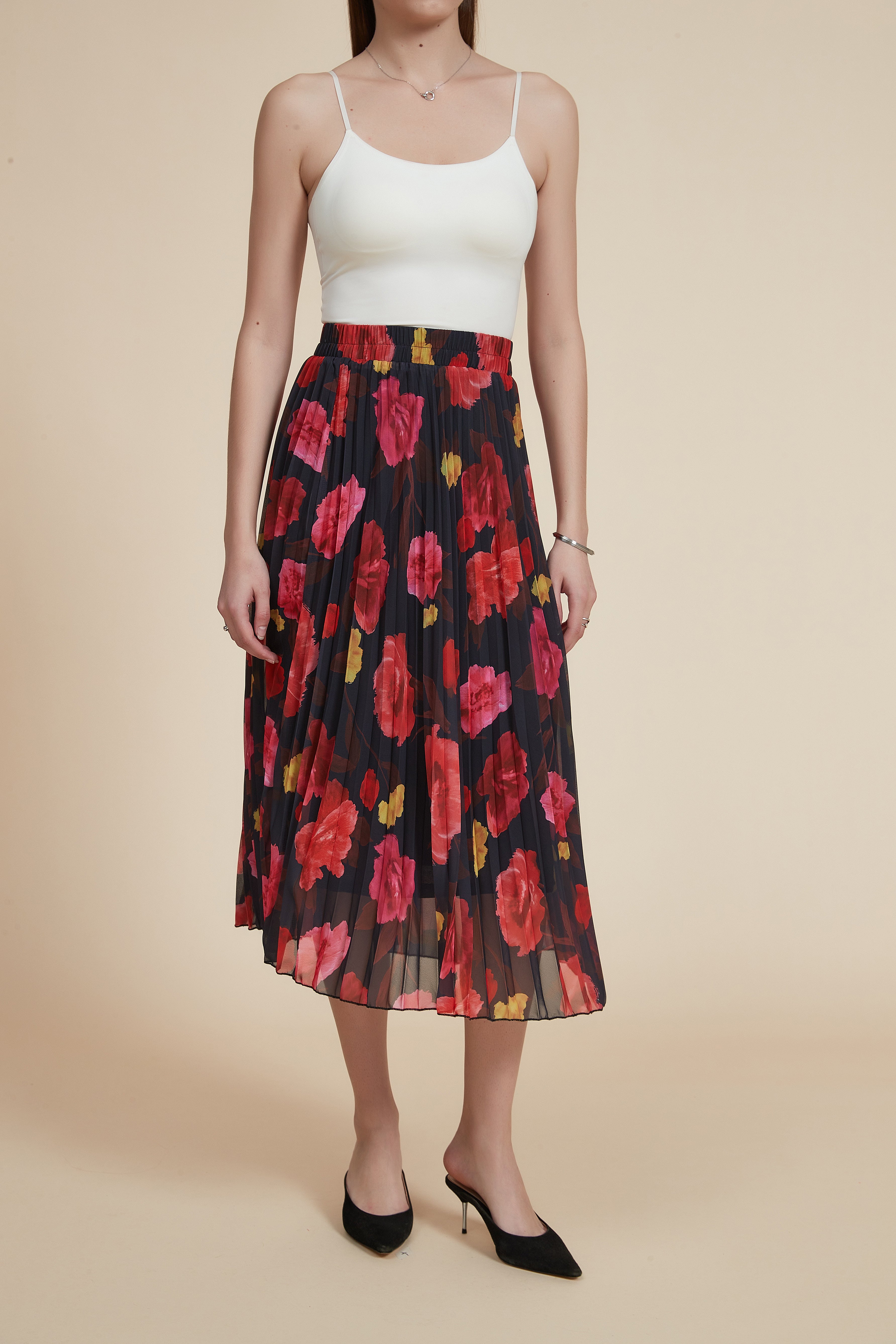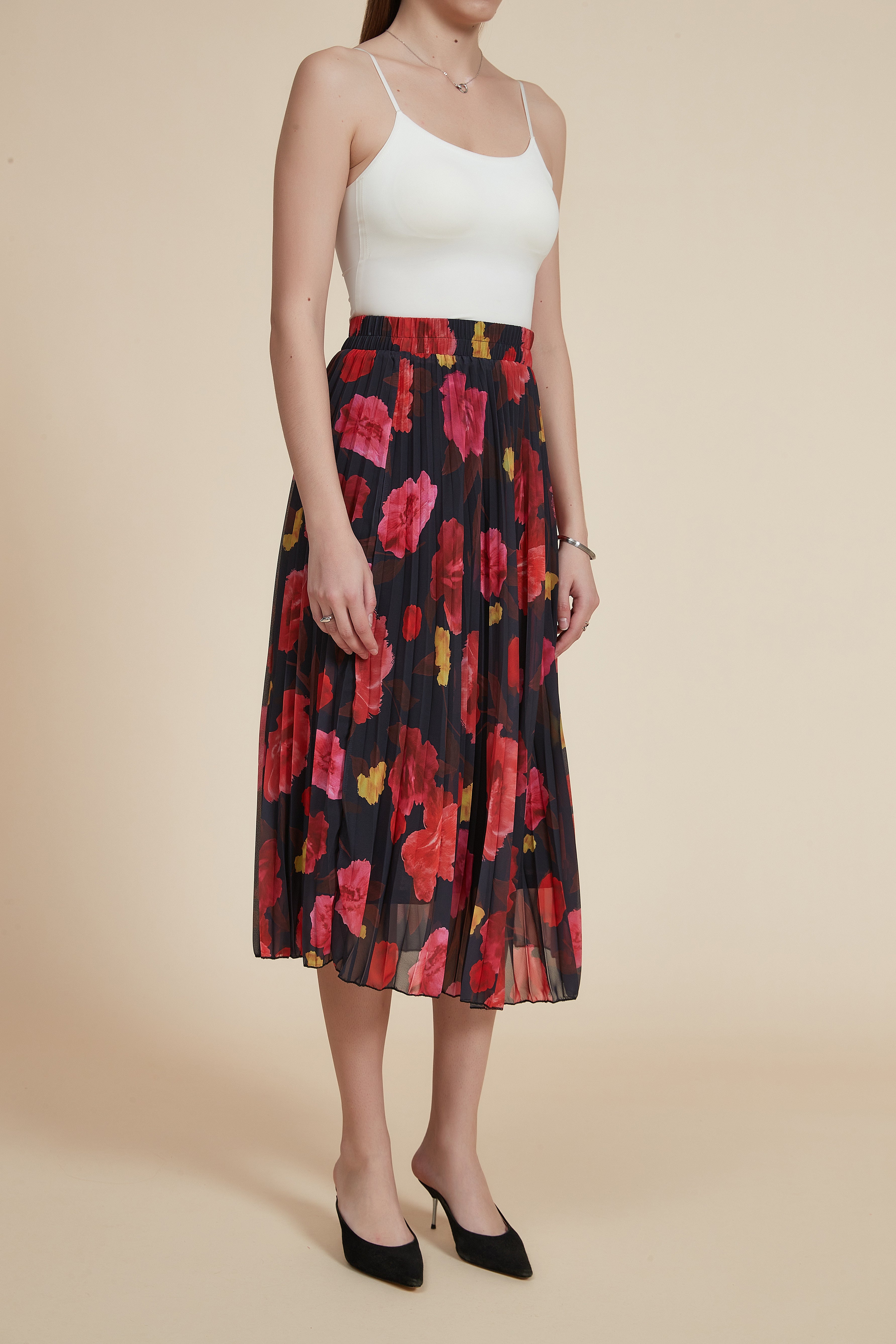تنورة ميدي بيلسية موردة خصر مرتفع