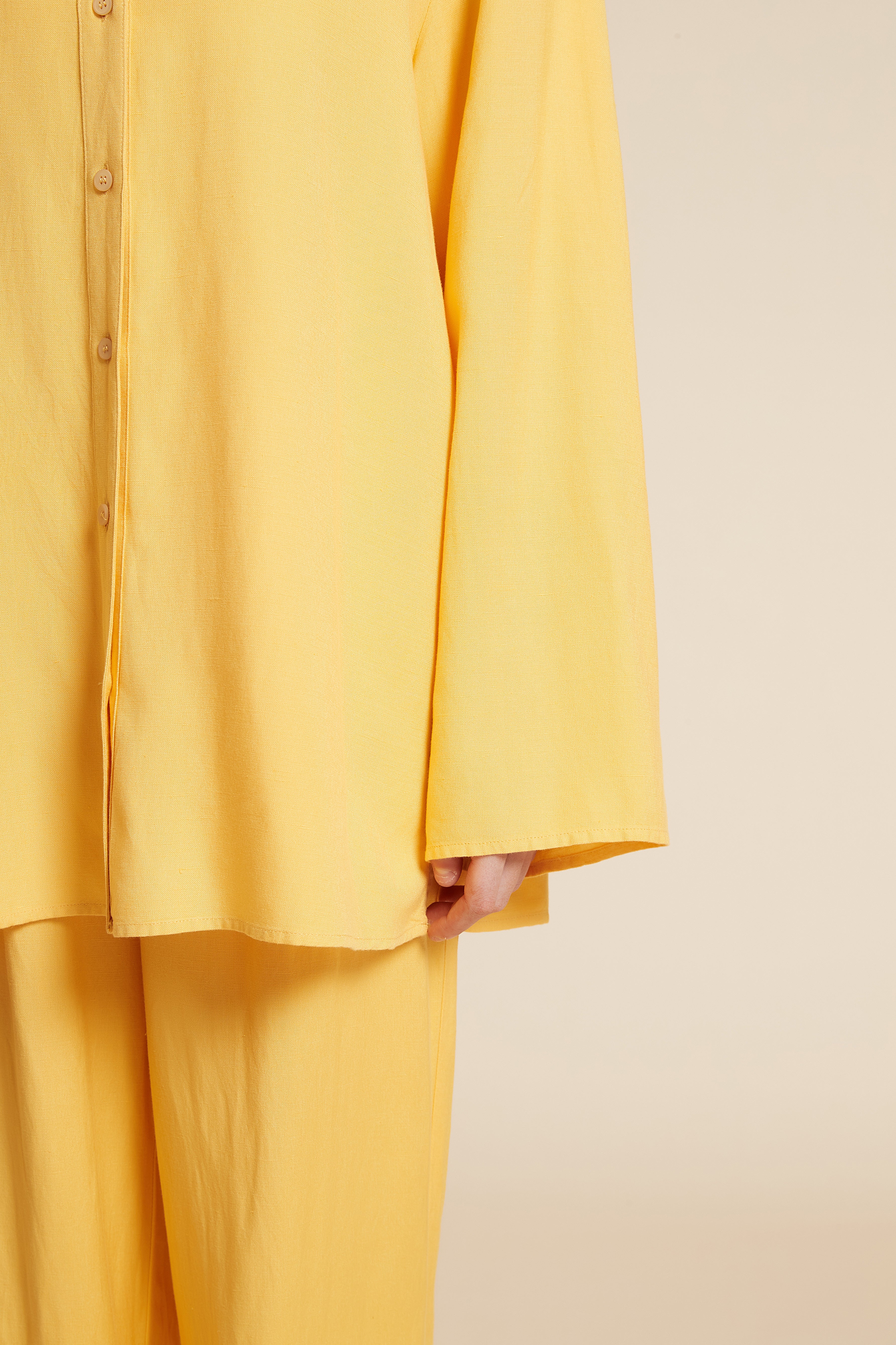 بلوزة سادة بكم طويل واسع وأزرار أمامية