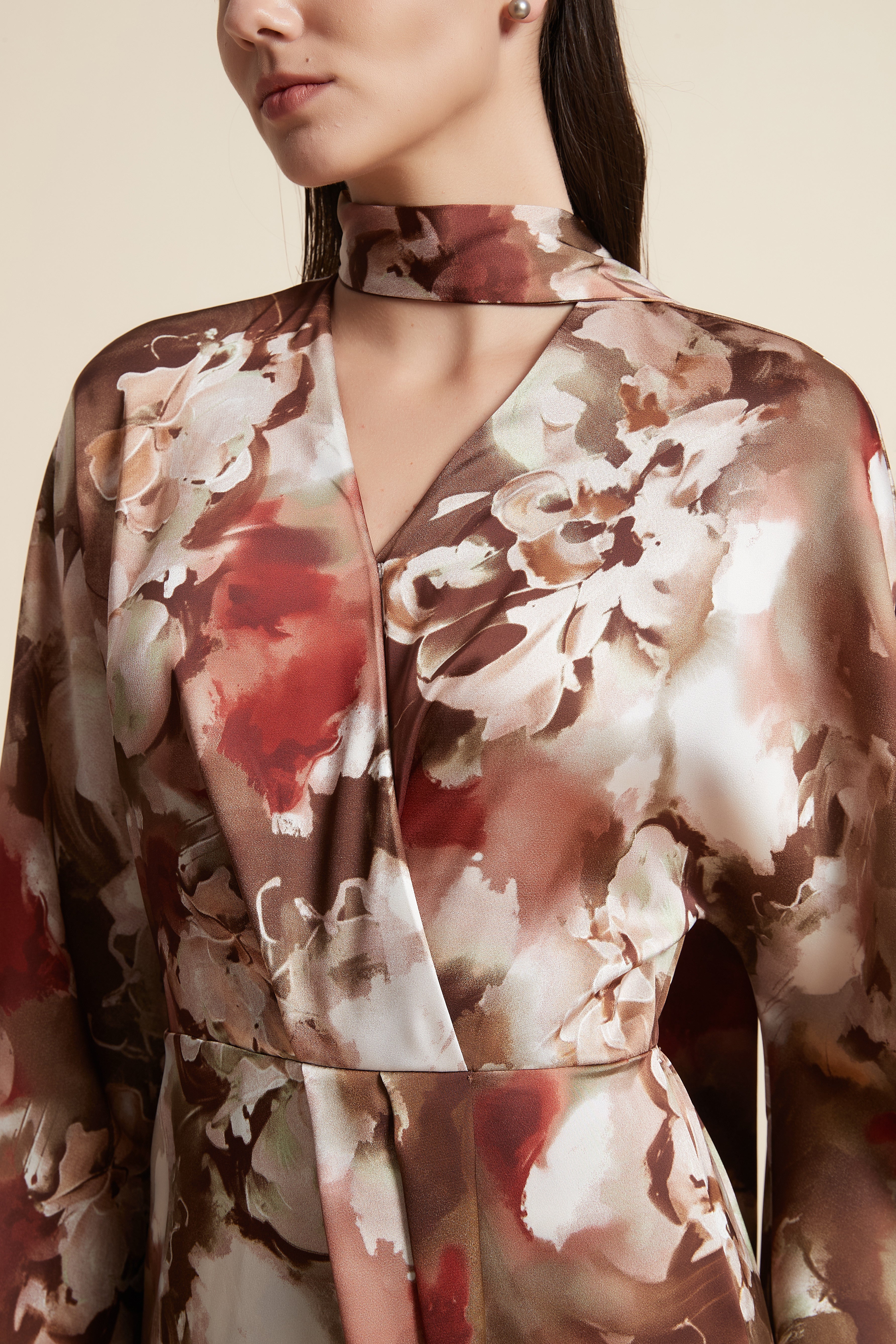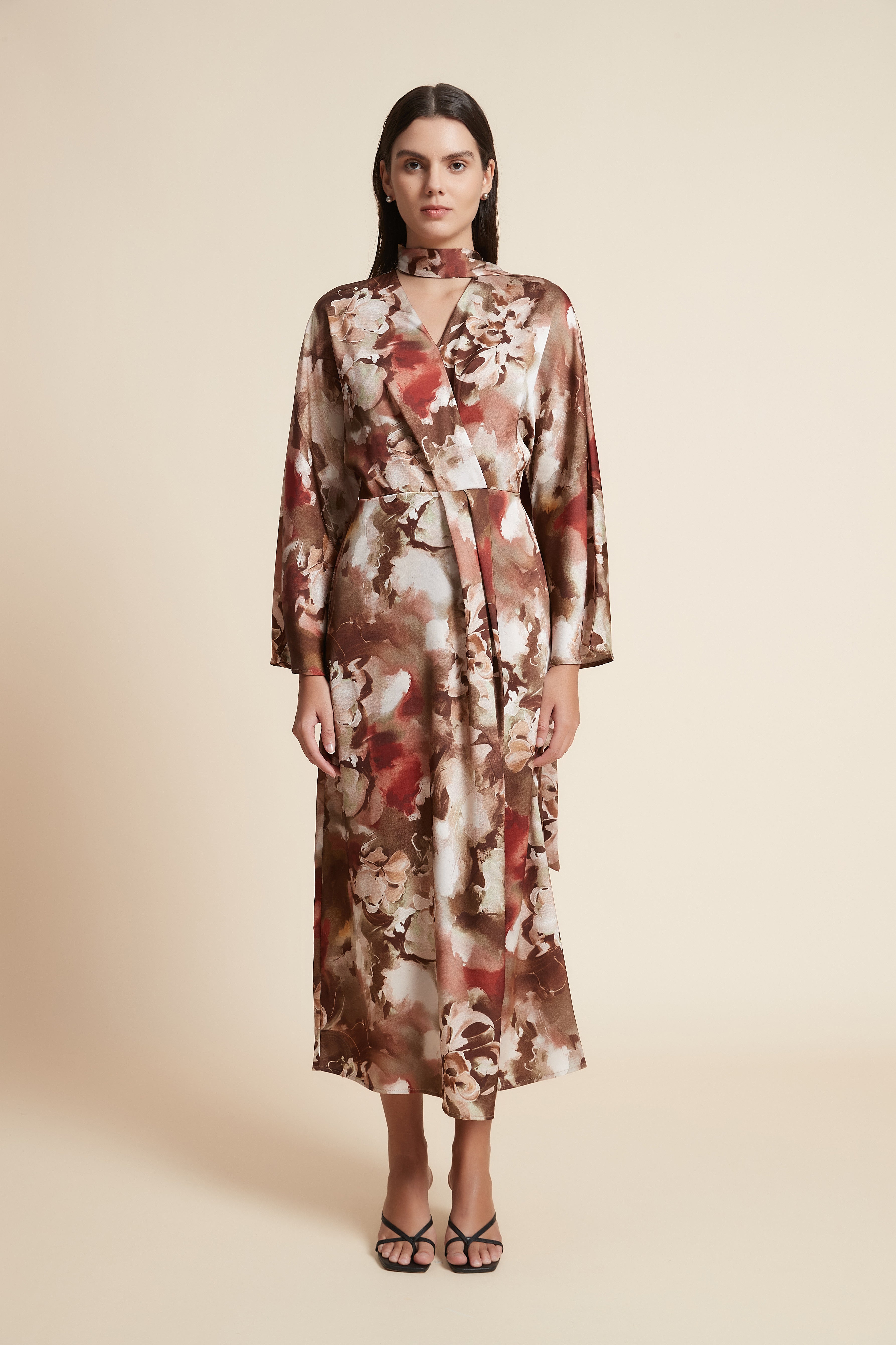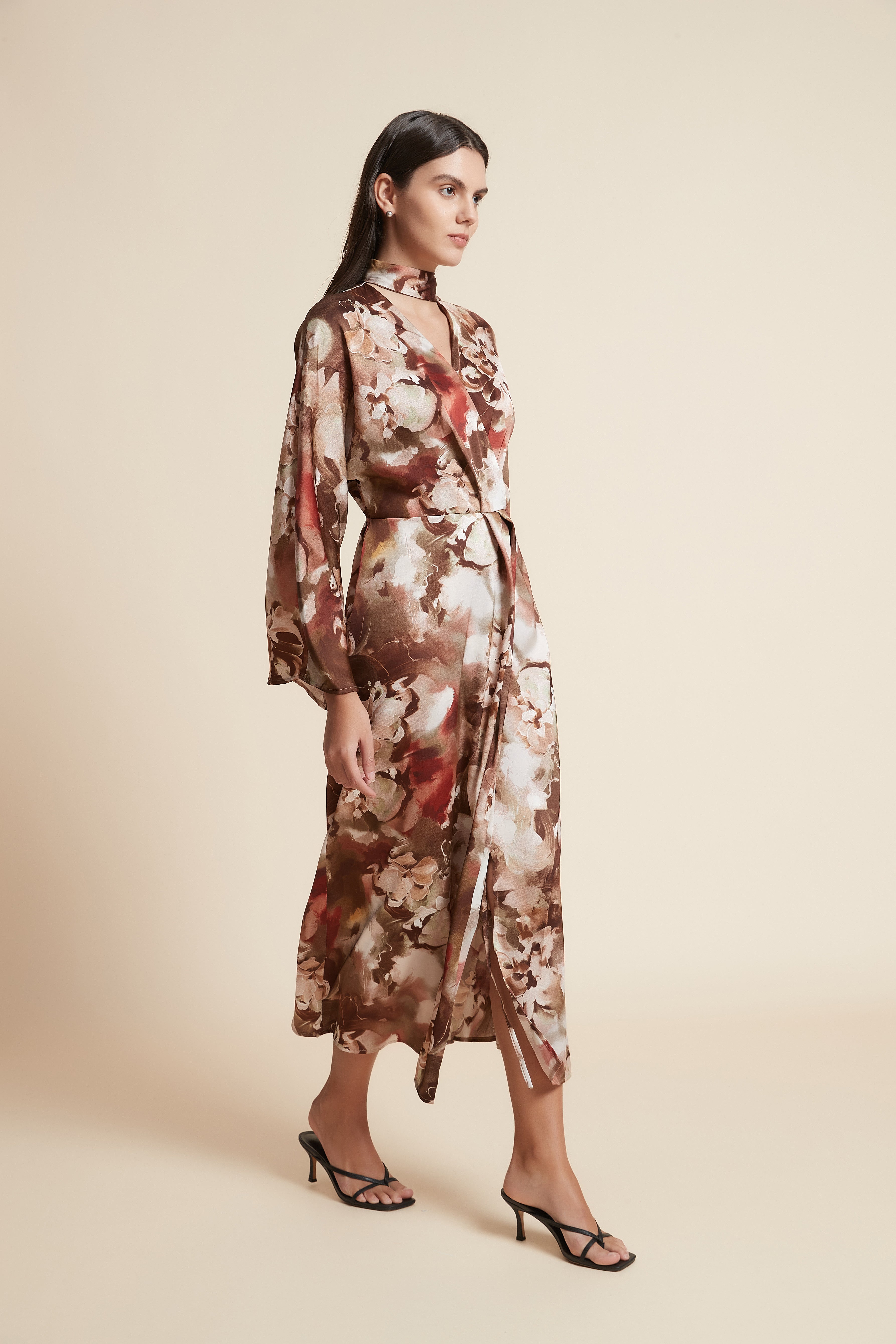 لمن تبحثين عن قطعة تجمع بين الأناقة والراحة، هذا الفستان رائع للخروجات والمناسبات الأنيقة. خامته من بوليستر 100% عملية وسهلة العناية، تحافظ على الألوان وتقاوم التجاعيد كما أنها خفيفة ومناسبة لكل المواسم. التصميم بقصة ملفوفة مع إغلاق ملفوف وحزام مرفق يعطيك خصر محدد ويمنح طلة مواكبة للموضة. ياقة هالتر تضيف لمسة عصرية، وطوله الميدي مع نقشة زهور مطبوعة رقمياً يضفي حيوية بألوان متعددة. الفستان بدون بطانة وبكم طويل وسماكة متوسطة بقصة عادية تناسب البالغات. لا يحتوي على جيوب، لكنه عملي وستحبين كيف يتحرك معك ويمنحك أناقة بسيطة في كل مناسبة أنيقة. يمكنك ارتداؤه مع جاكيت خفيف في الأيام الباردة أو مع صندل وحقيبة صغيرة للخروجات النهارية. اعثري على مقاسك في فاشن السعودية وأضيفي هذه القطعة المتنوعة إلى خزانة ملابسك اليوم.