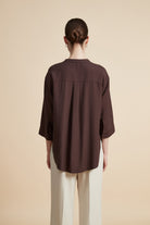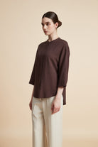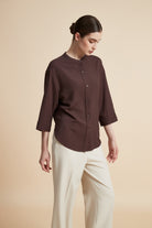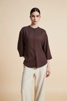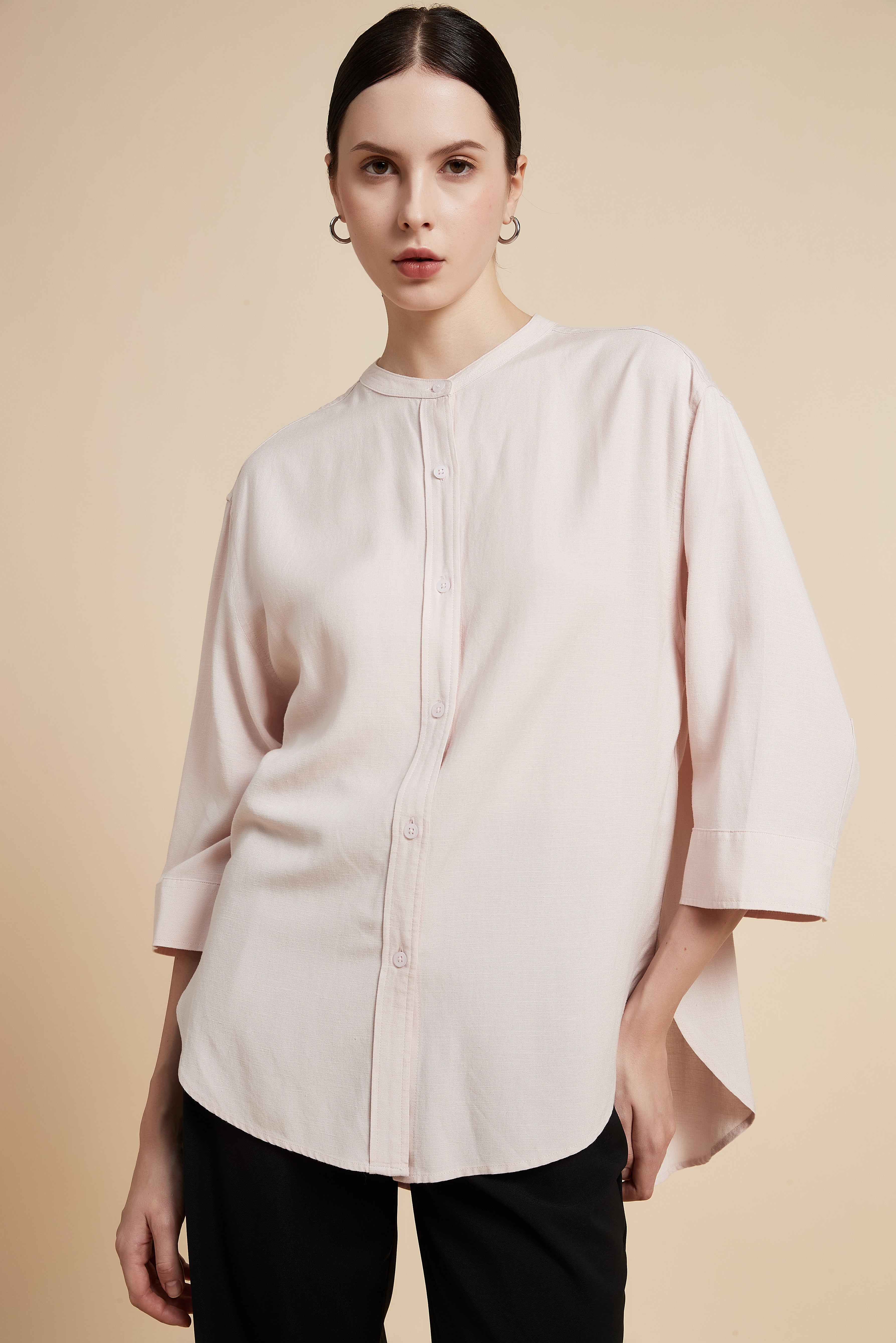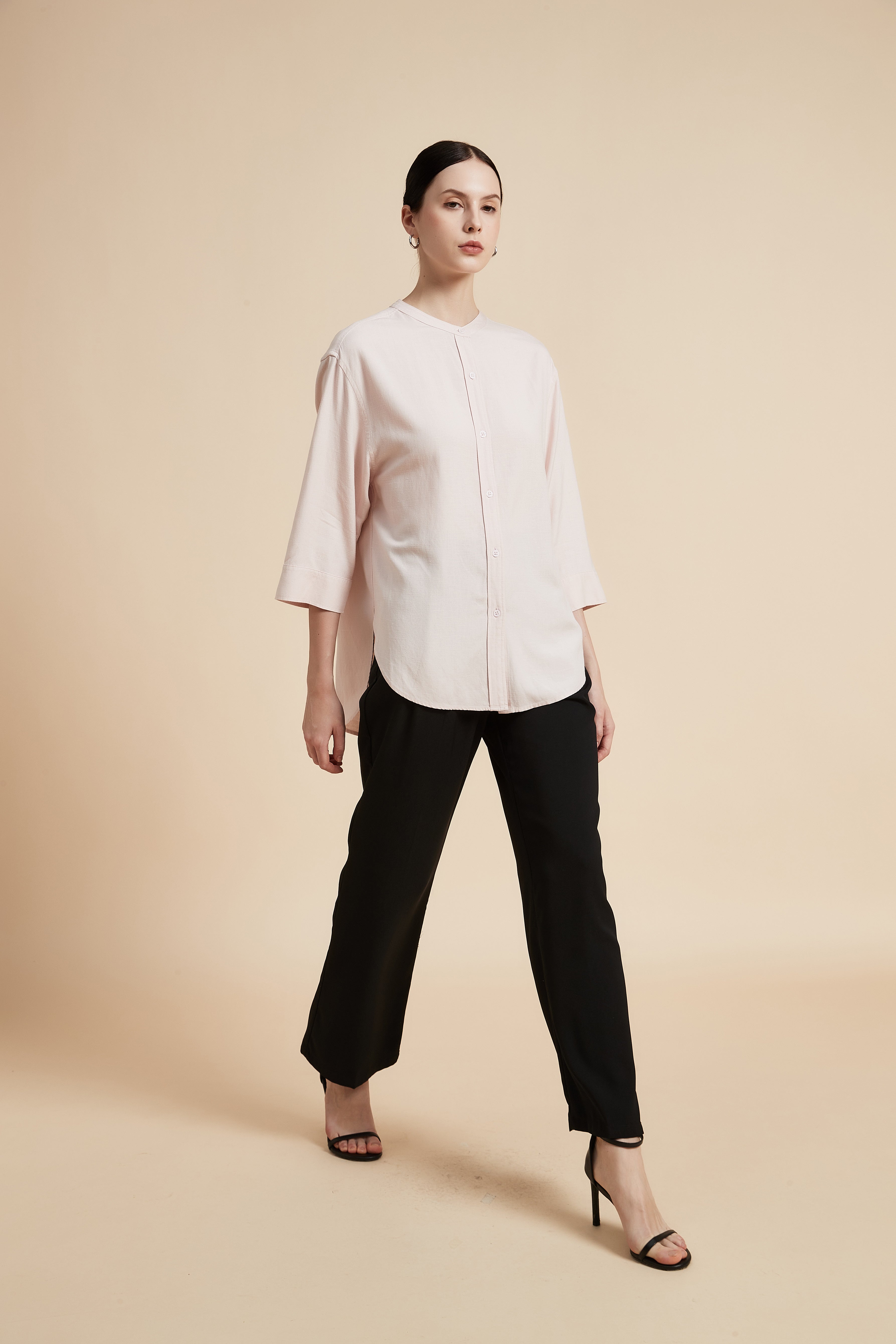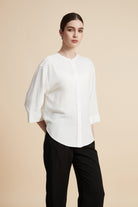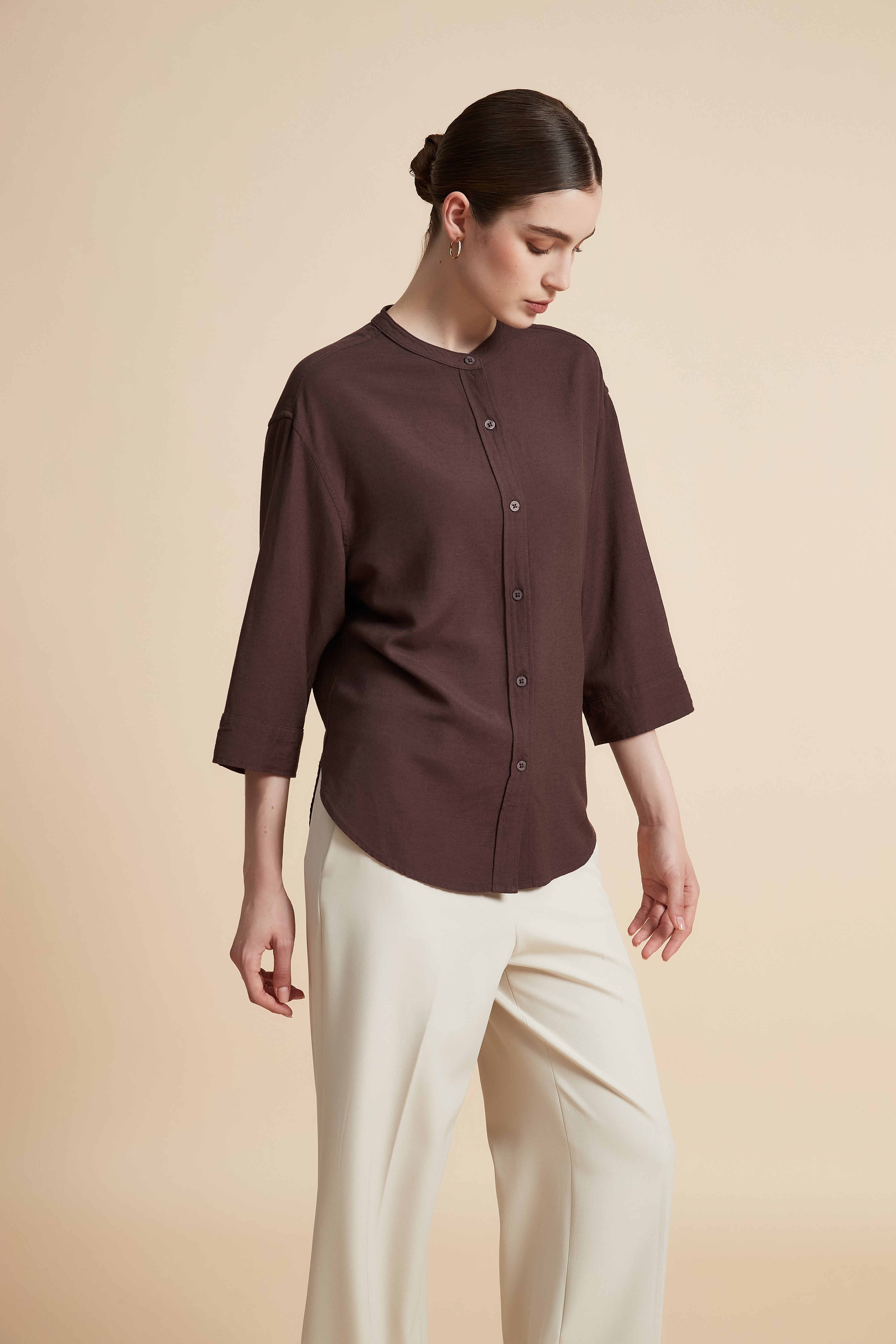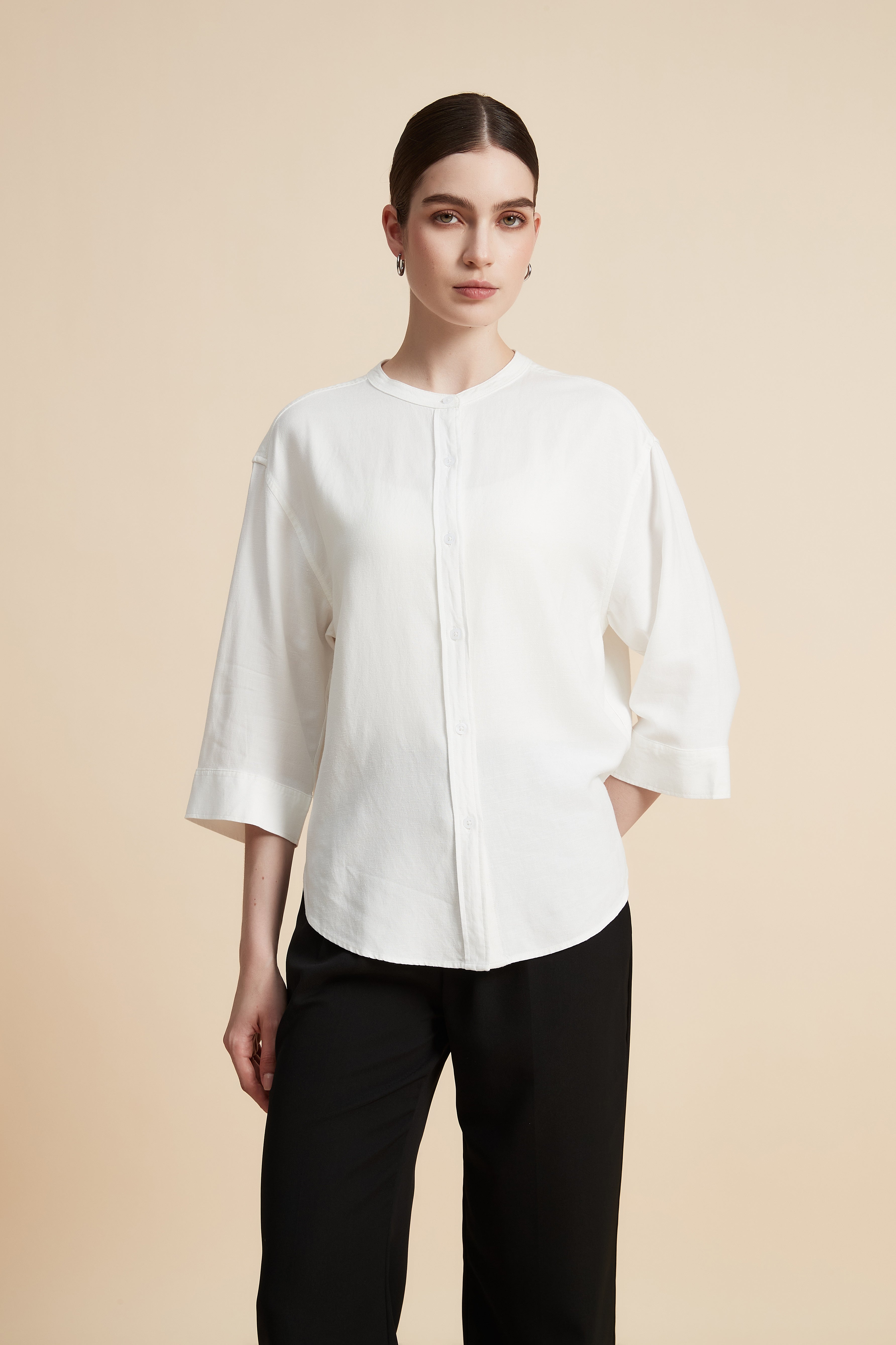 بلوزة 3/4 كم سادة بأزرار أمامية