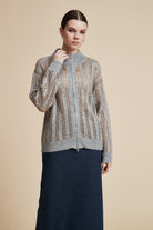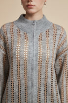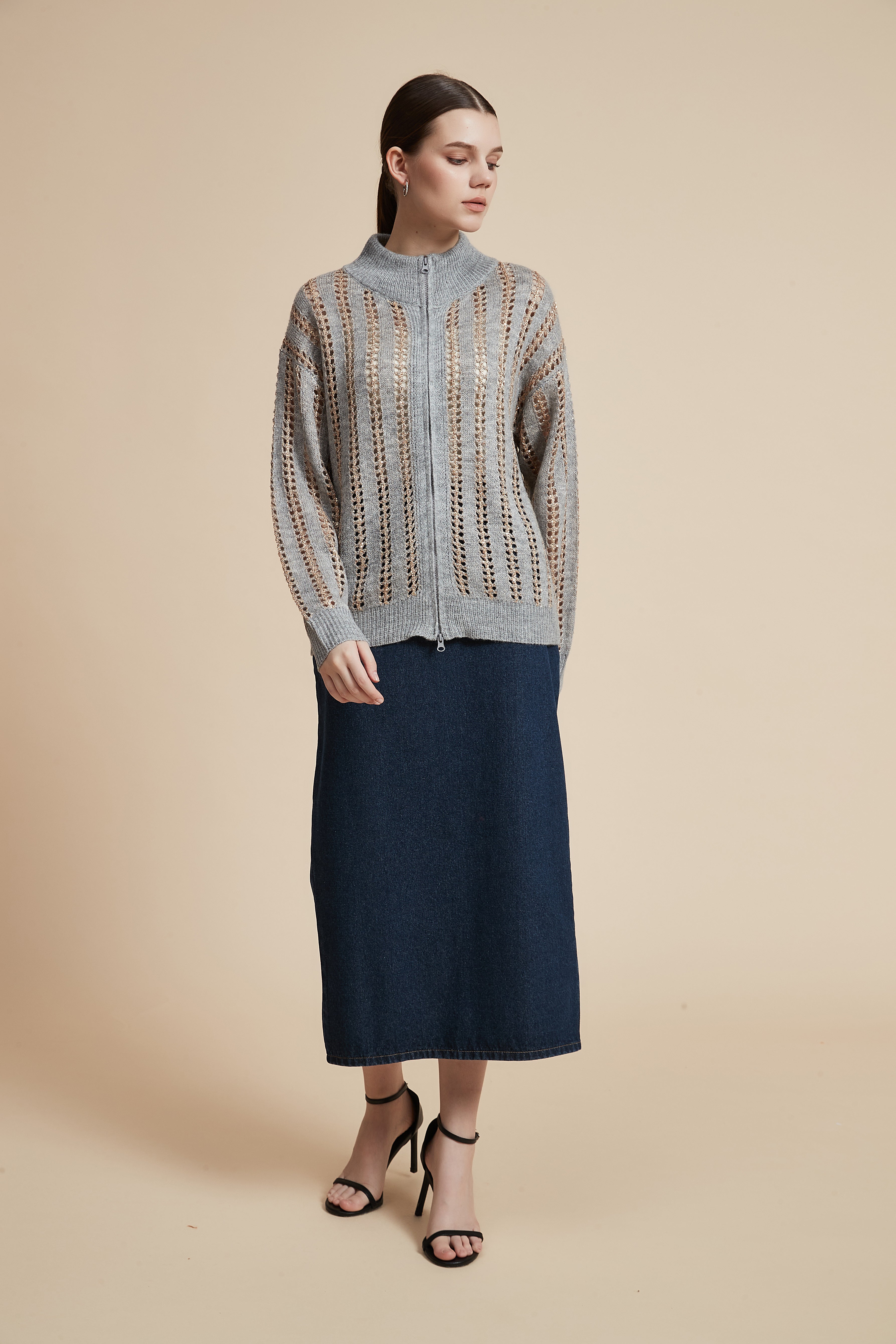 جاكيت بكم طويل مخرم بسحاب أمامي