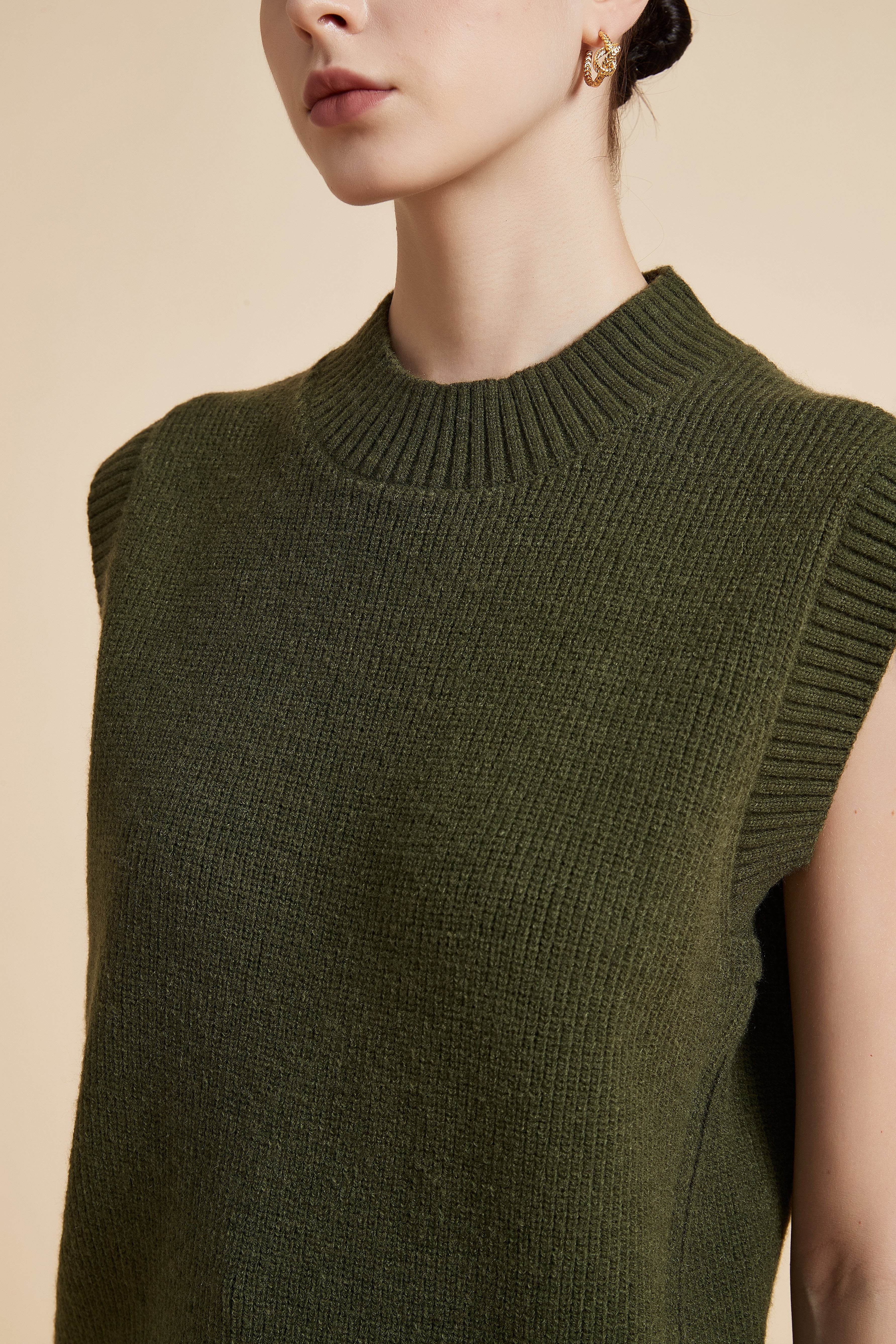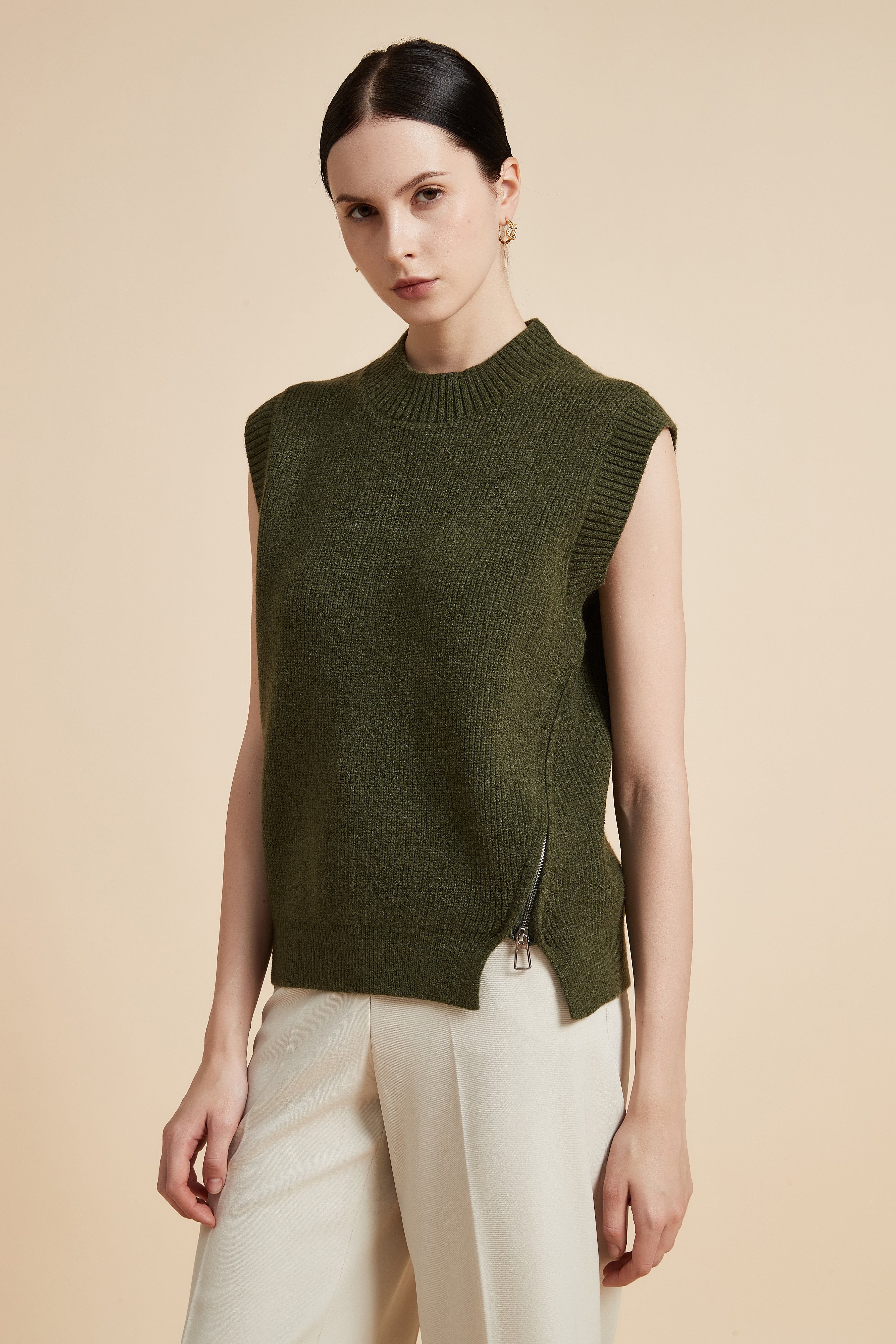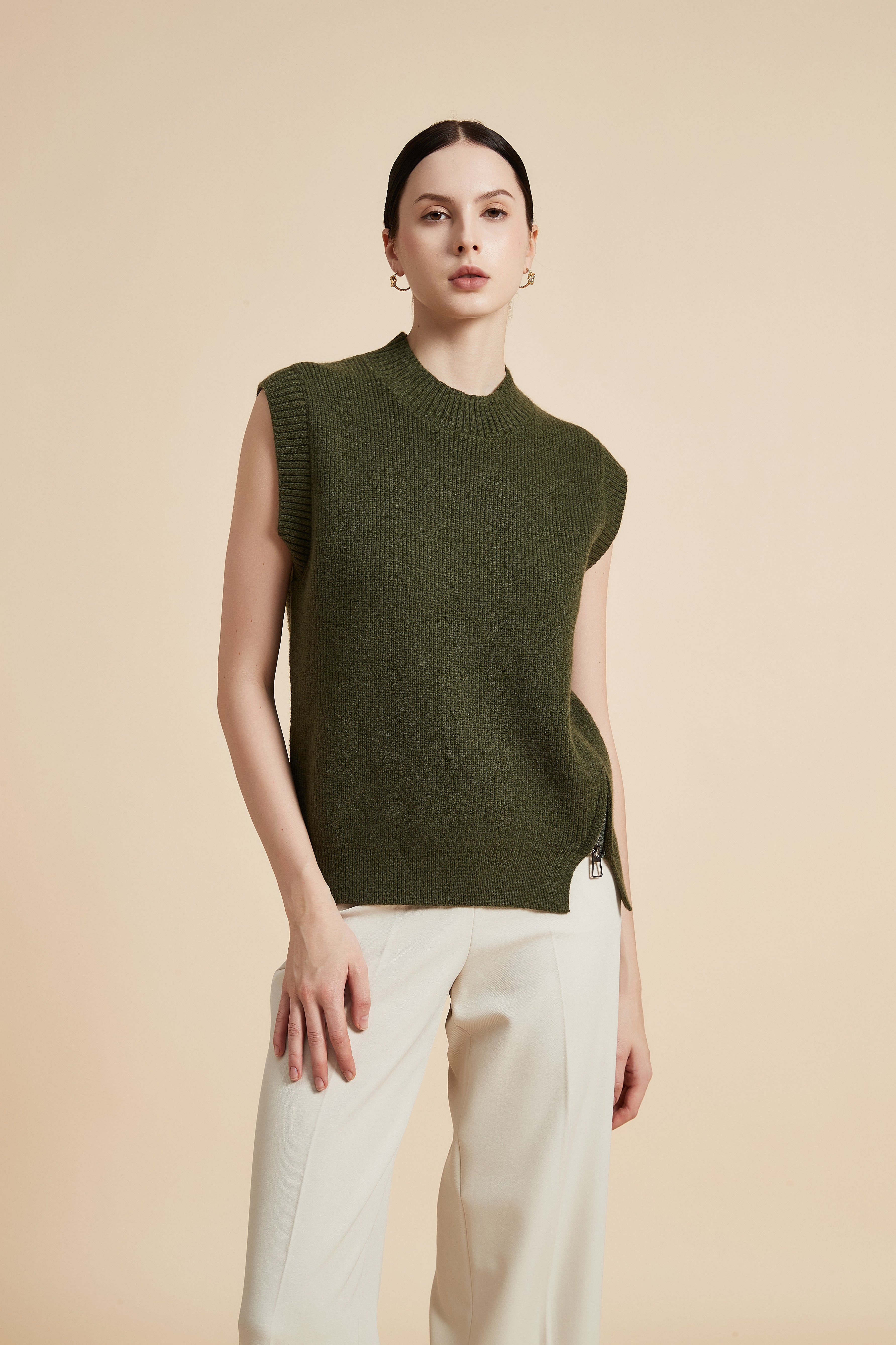 بلوفر بدون أكمام سادة بسحاب من الجنب